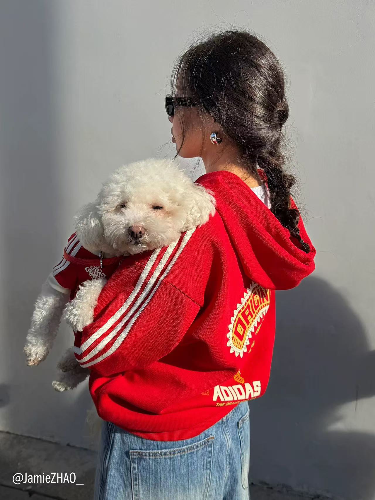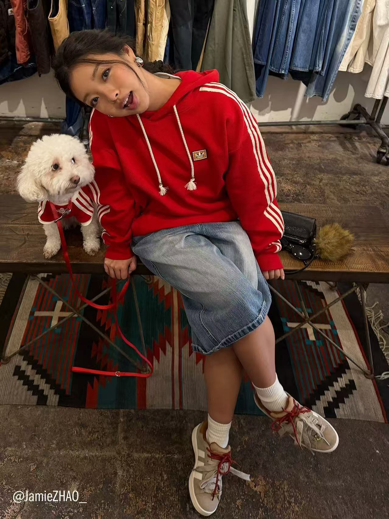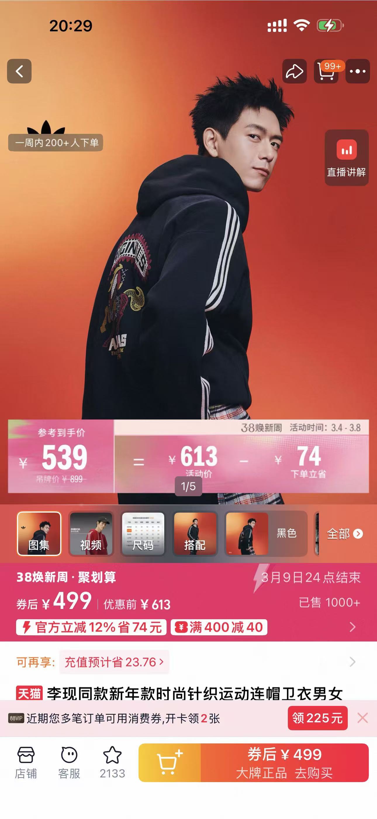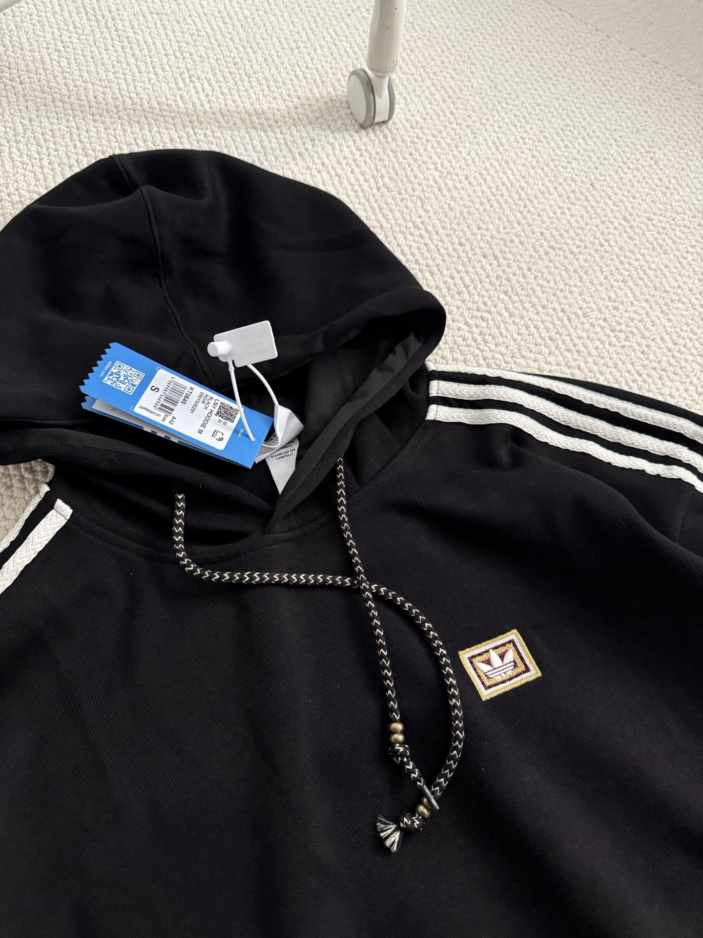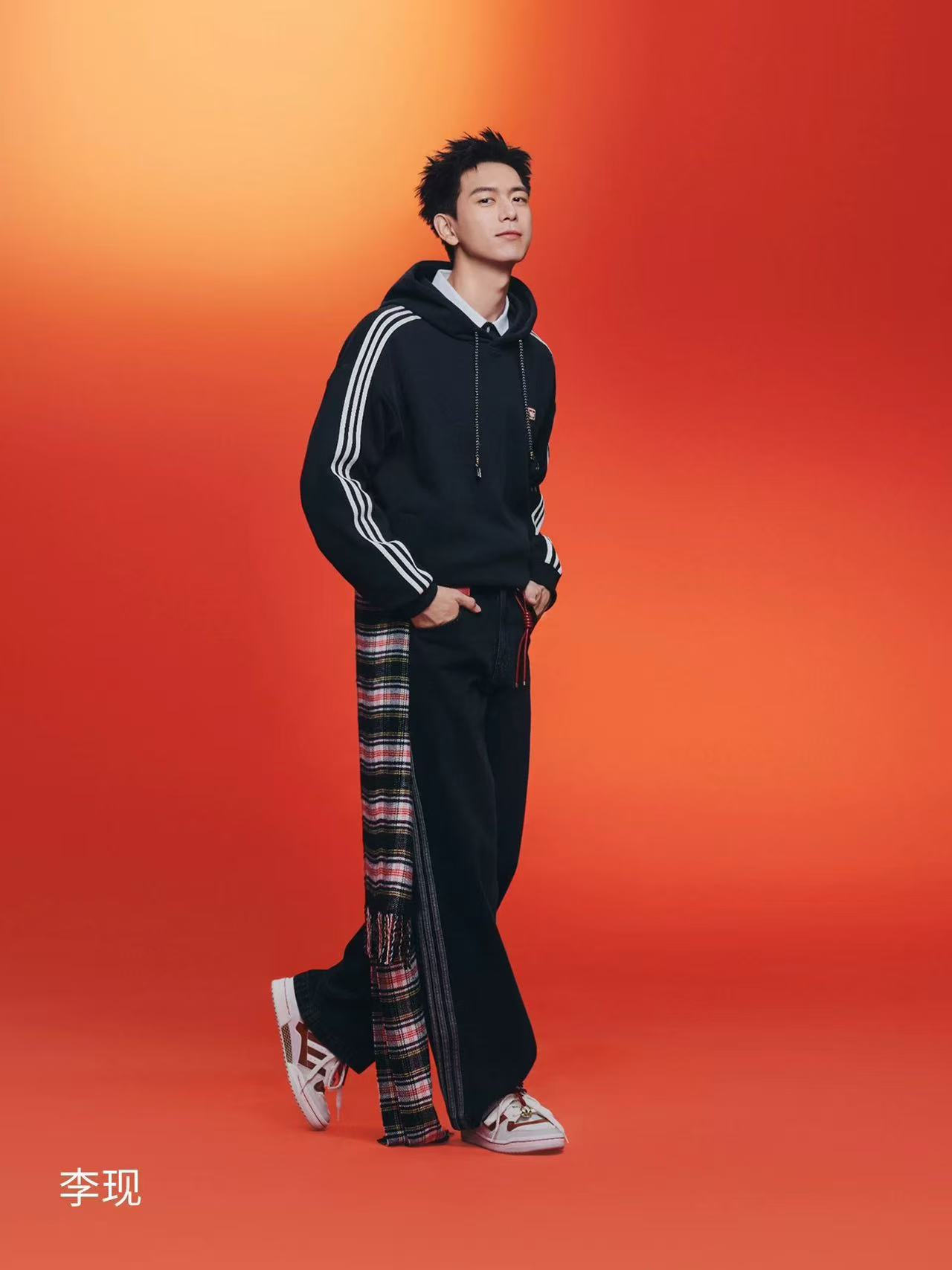 李现同款,adidas/阿迪达斯 三叶草 时尚复古连帽针织绣花卫衣。