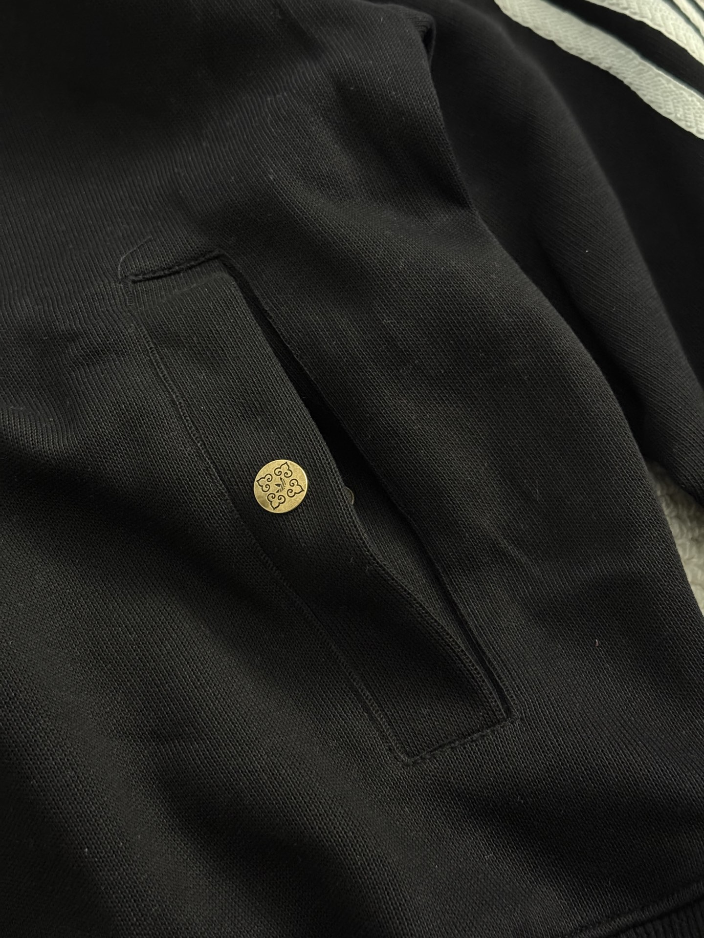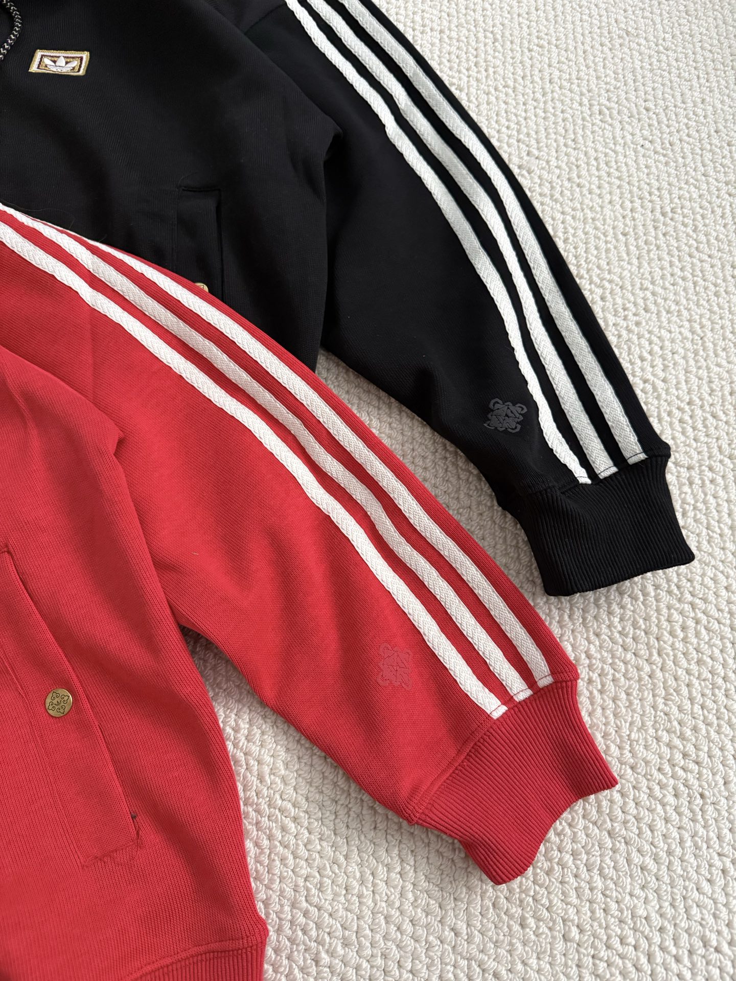 胸前具有标志性的经典三叶草刺绣logo。