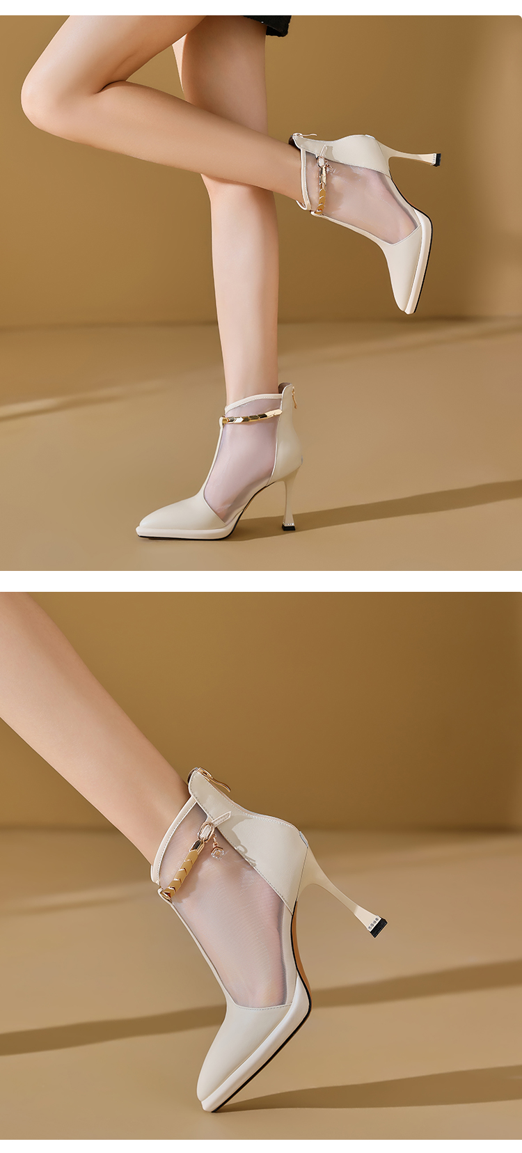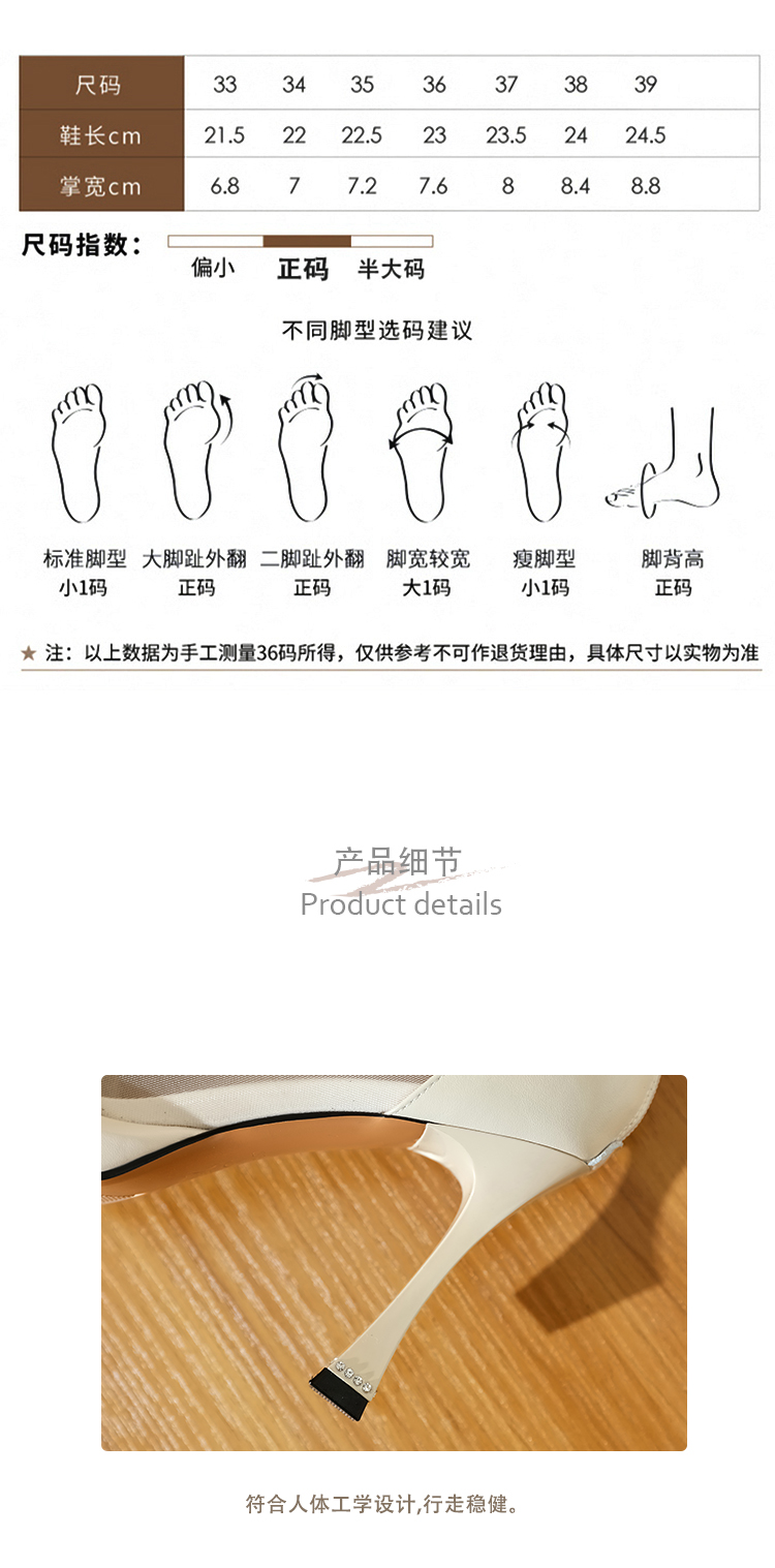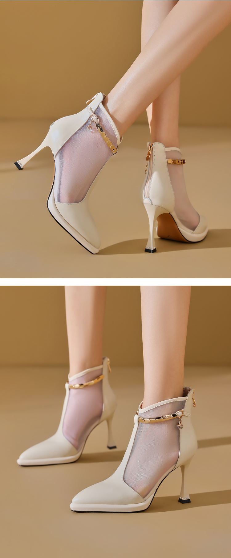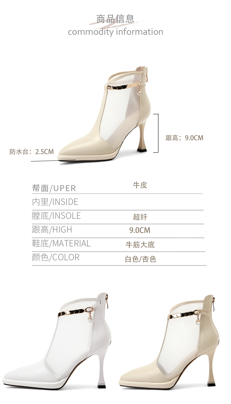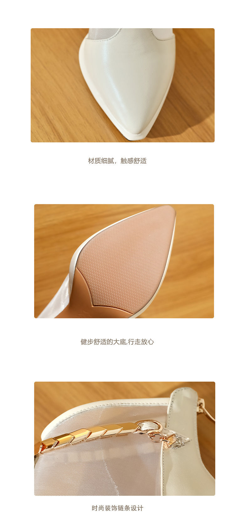【预售5天】春季新款,性感尖头真皮拼接网纱高跟女鞋JZX&60-81