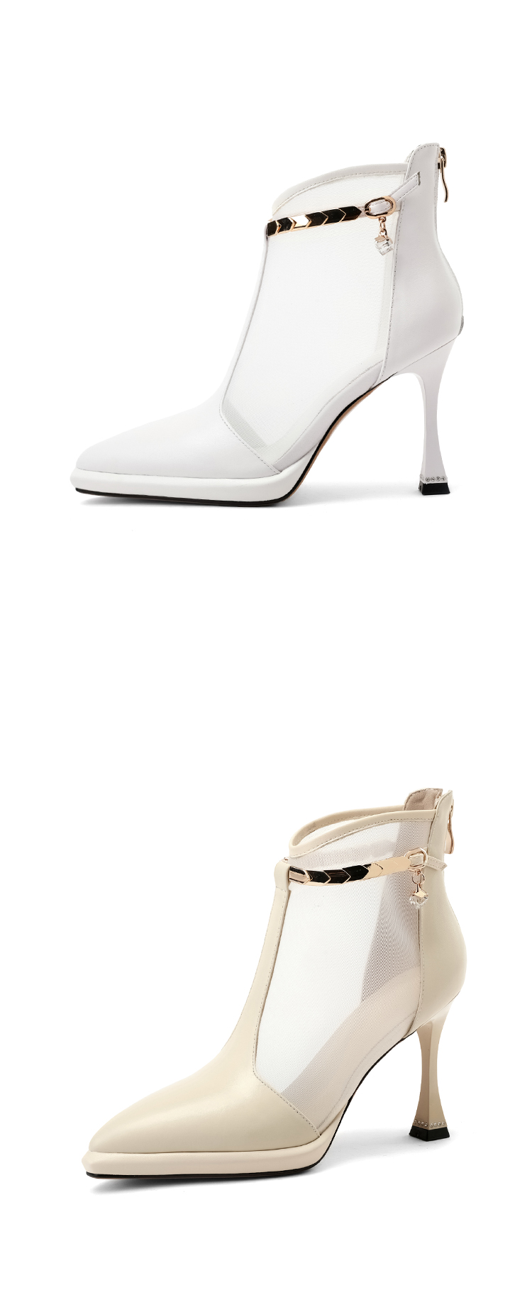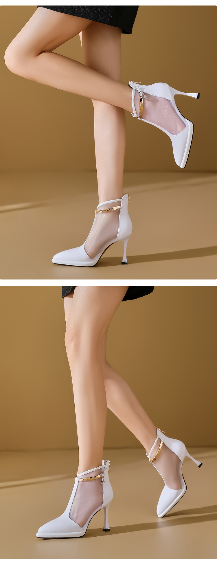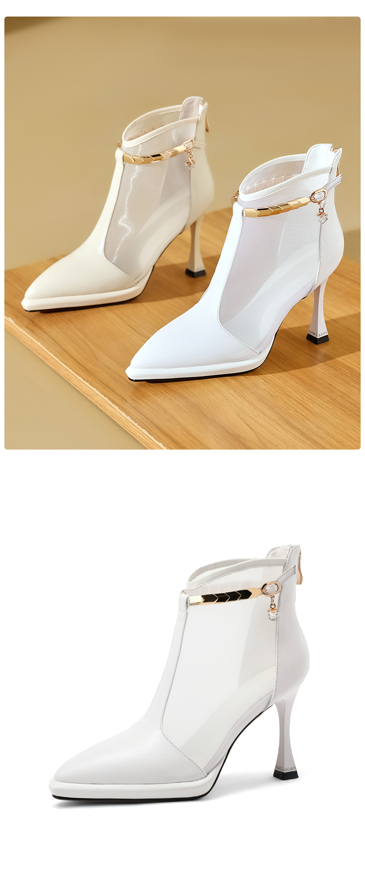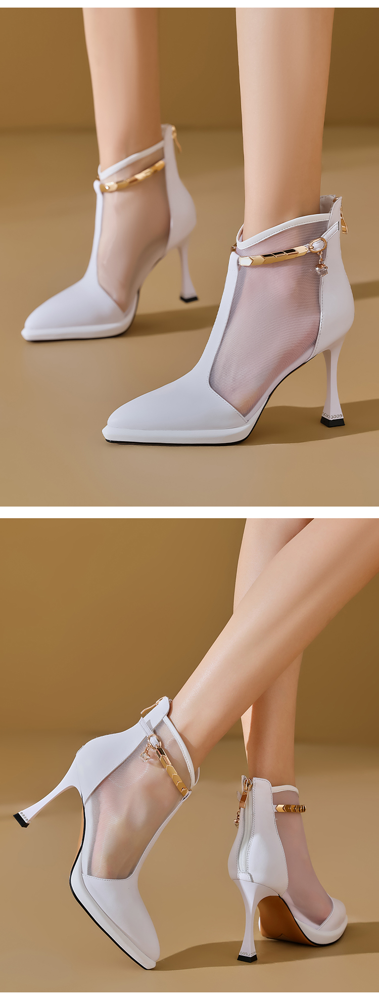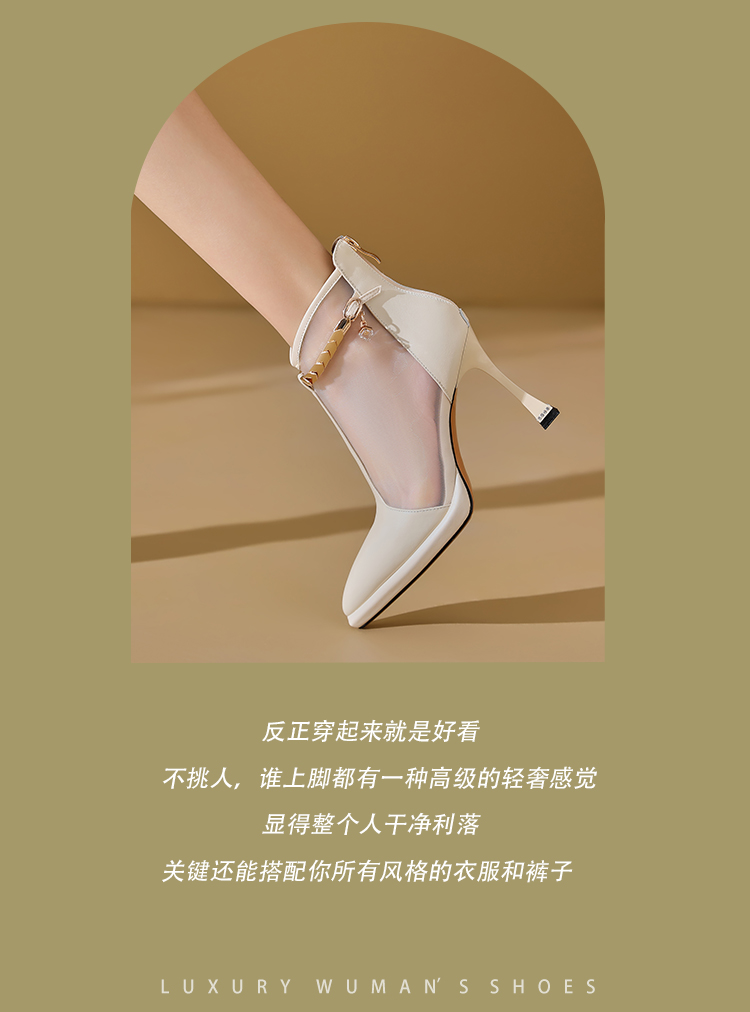 【预售5天】春季新款,性感尖头真皮拼接网纱高跟女鞋JZX&60-81
