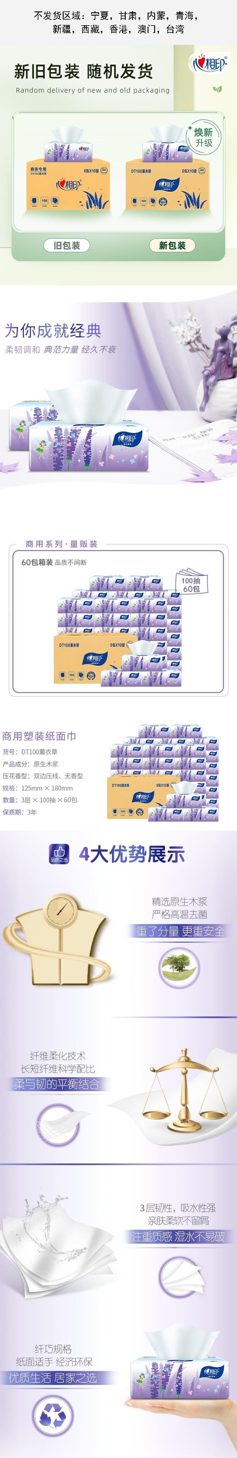 心相印 商用(薰衣草)三层塑装纸面巾(60包) ADB15182