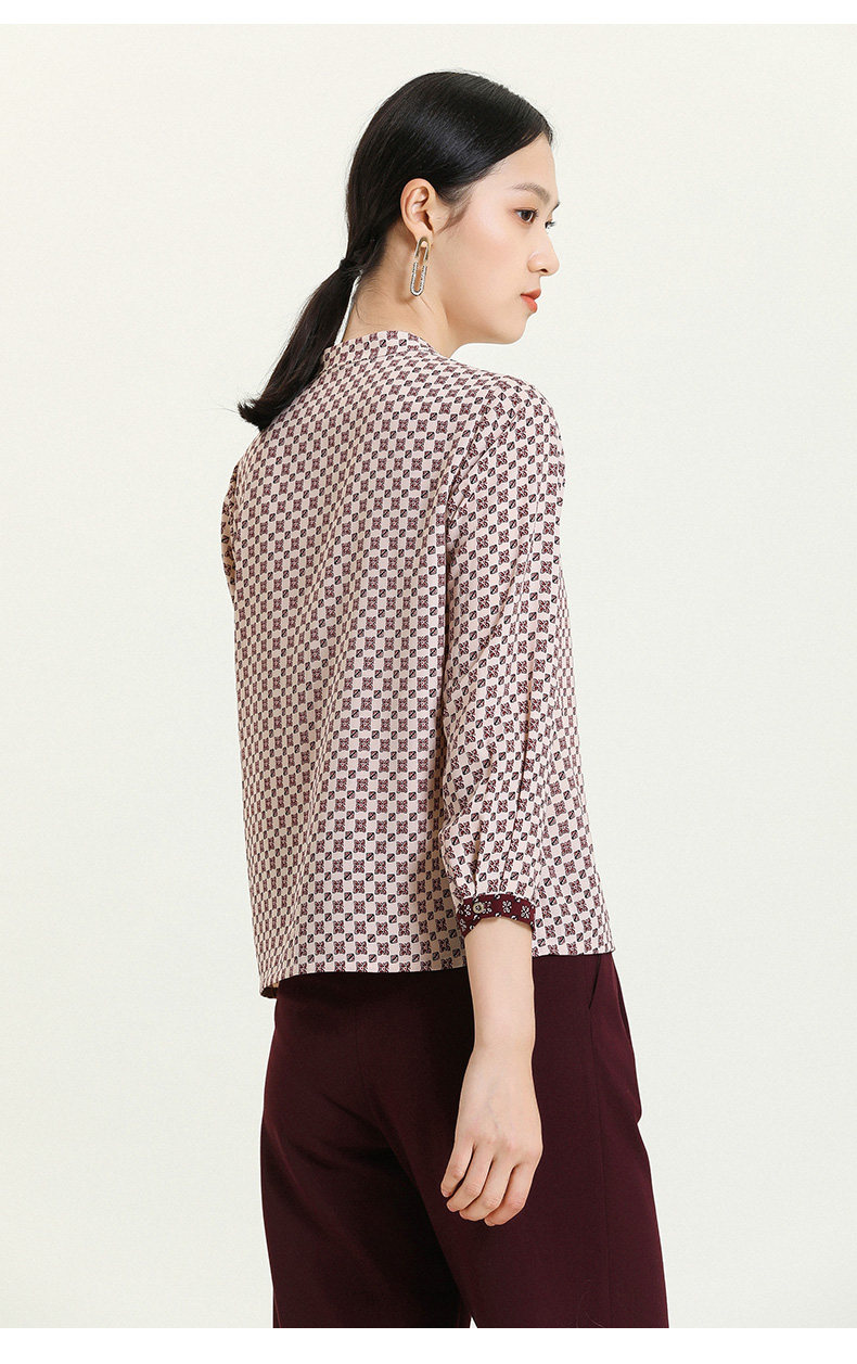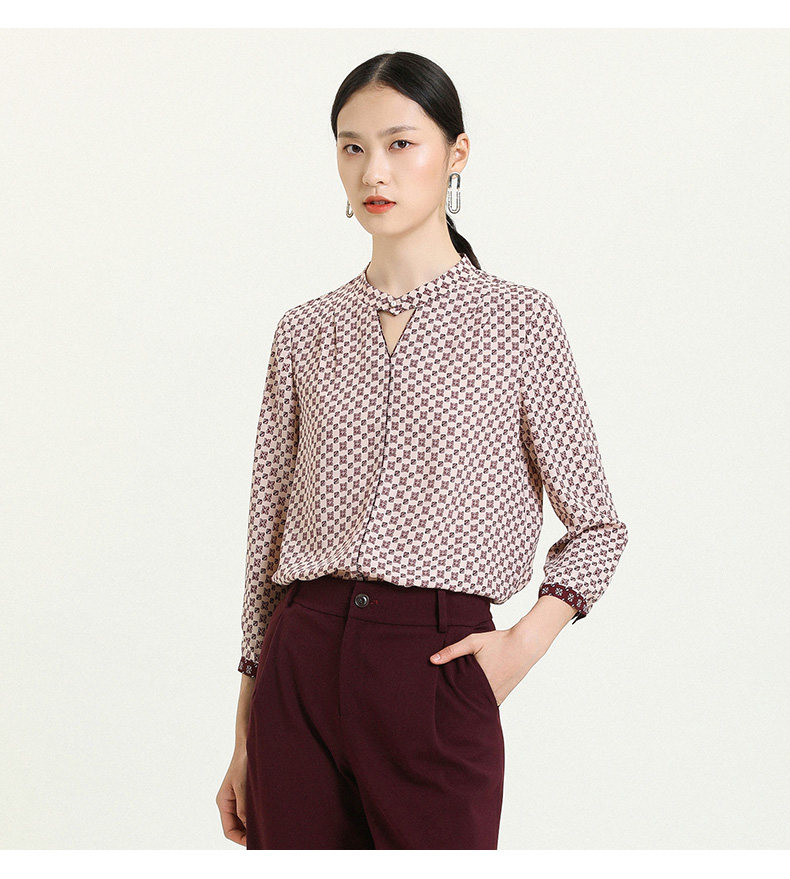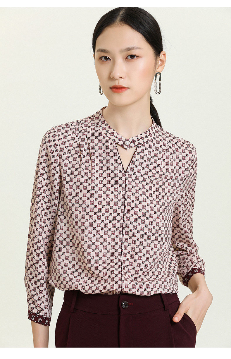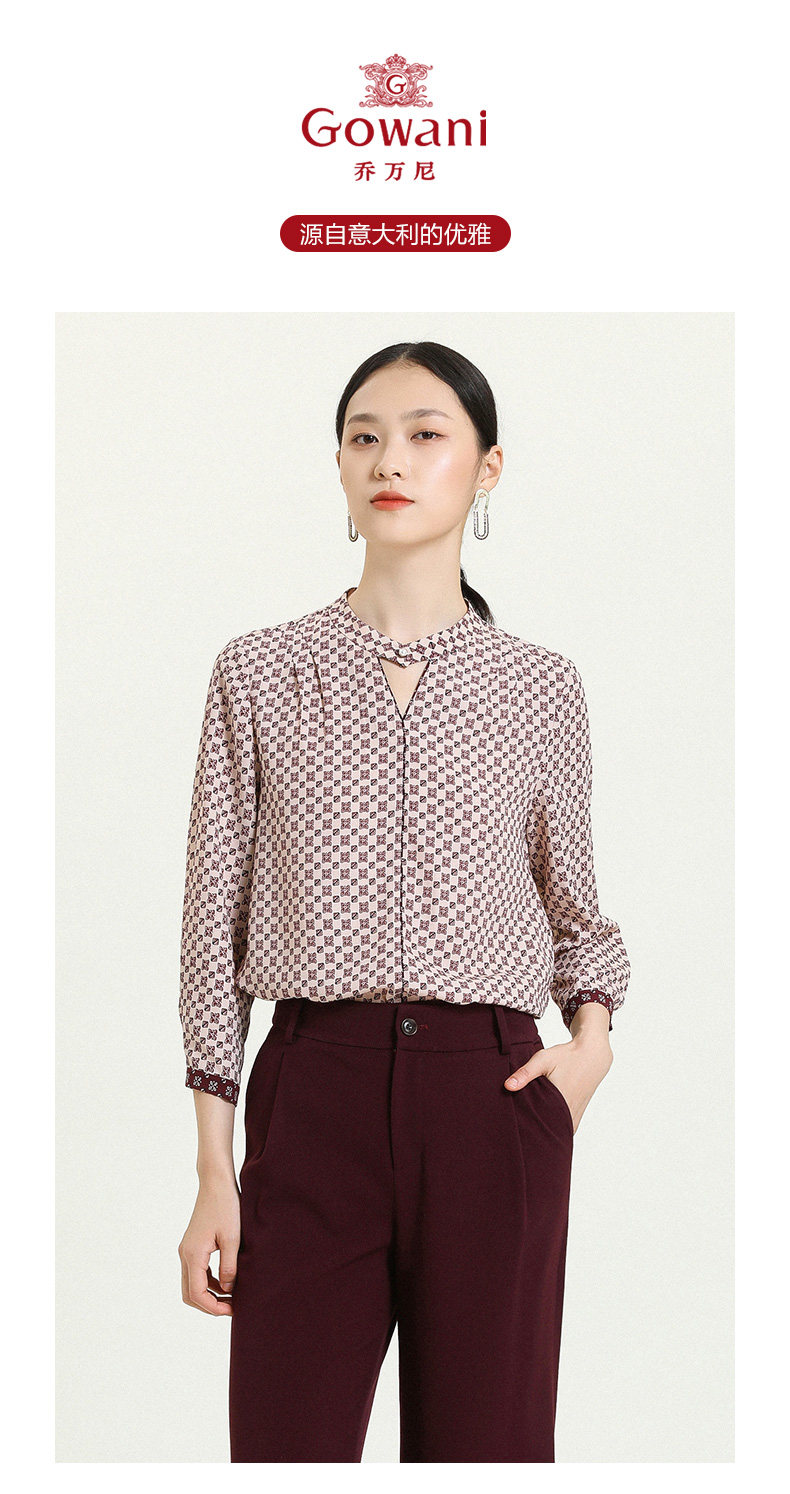 乔万尼早秋新款V领衬衫设计感长袖通勤OL风洋气宽松显瘦上衣ES3C528