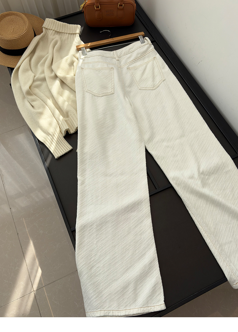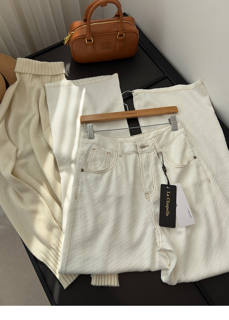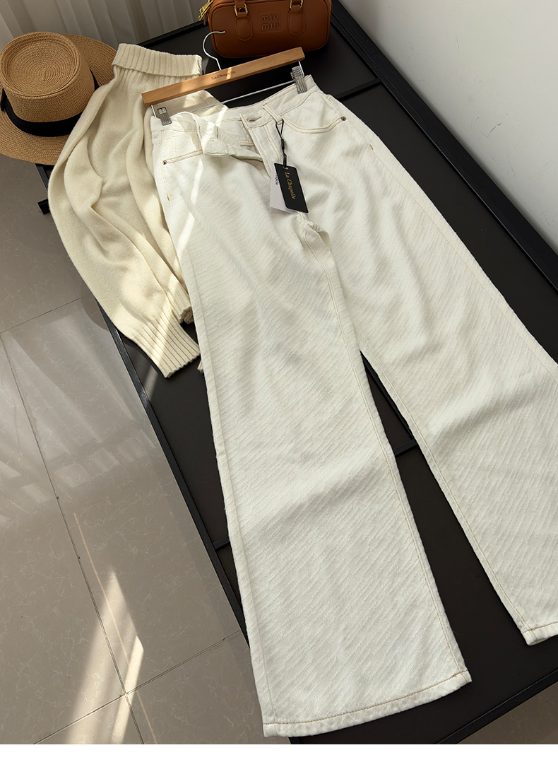 专柜实拍【70%莱赛尔天丝】拉夏贝尔/La Chapelle高品质肌理感宽松显瘦阔腿裤软糯舒适百搭直筒裤天丝牛仔裤