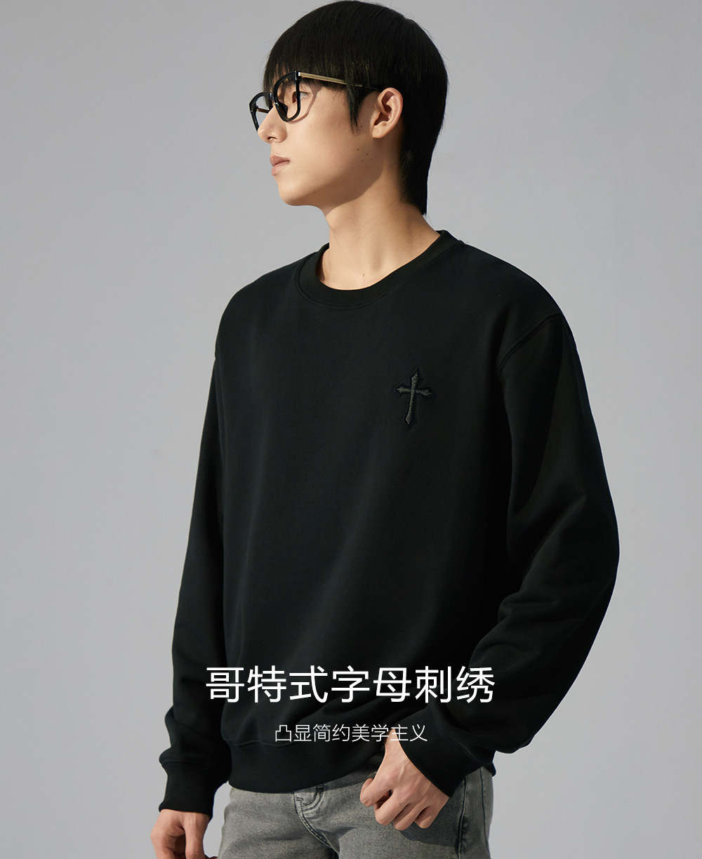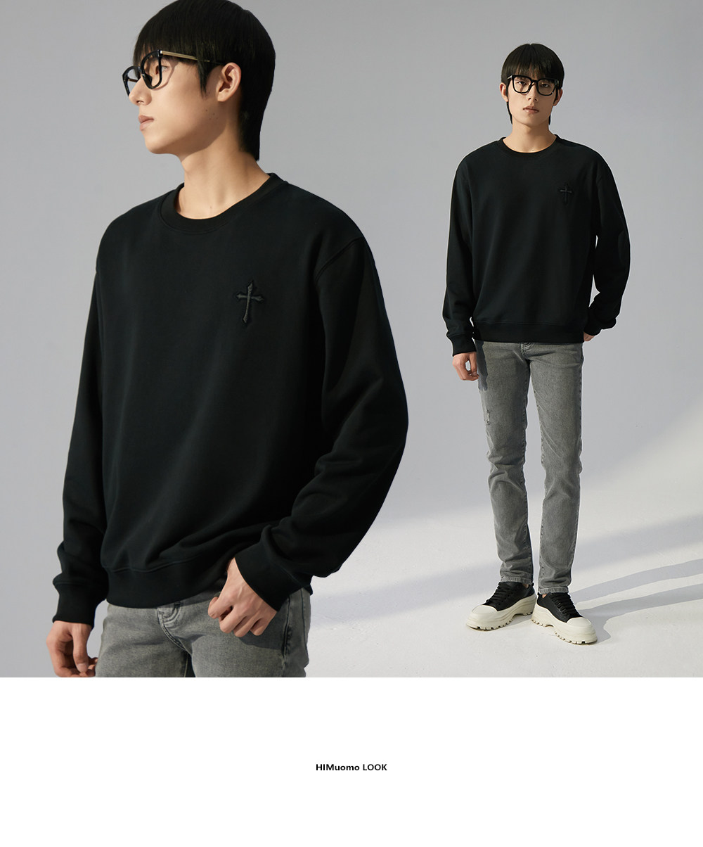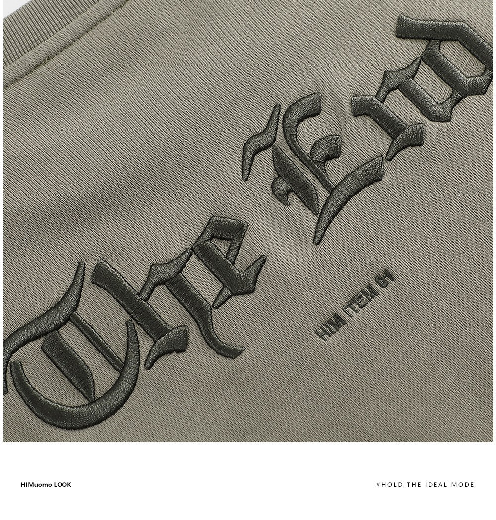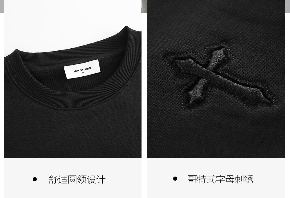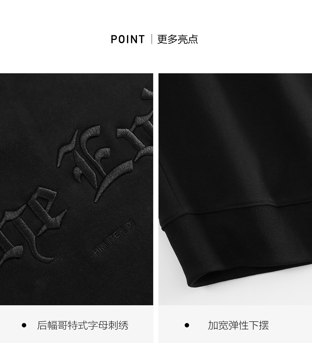 HIM漢崇 潮流立体绣花长袖卫衣男高级感休闲舒适圆领上衣2025秋季
