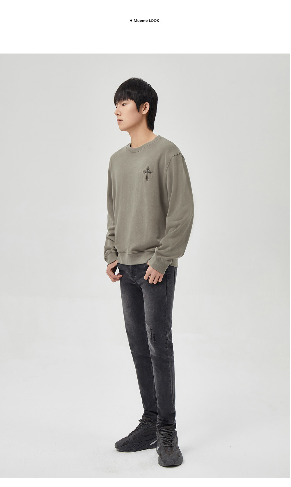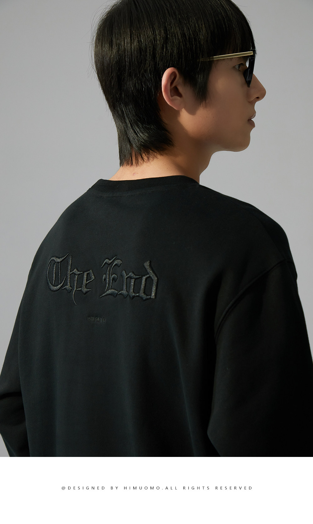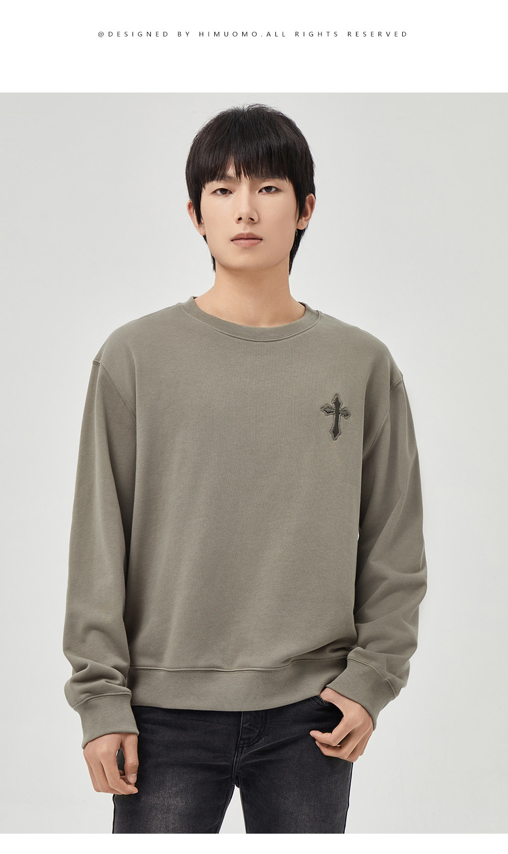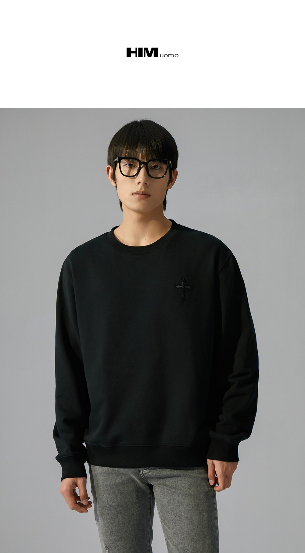 HIM漢崇 潮流立体绣花长袖卫衣男高级感休闲舒适圆领上衣2025秋季