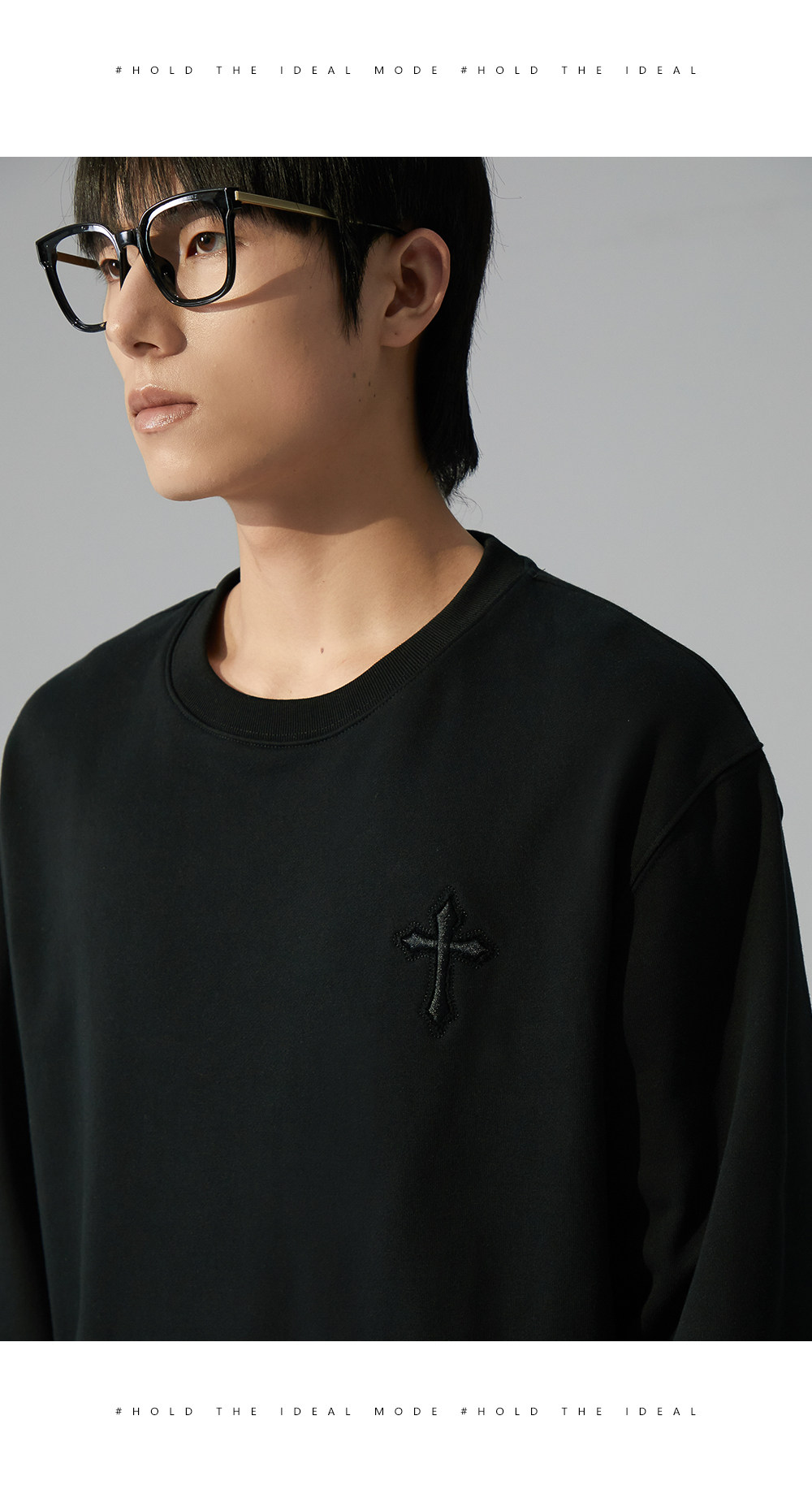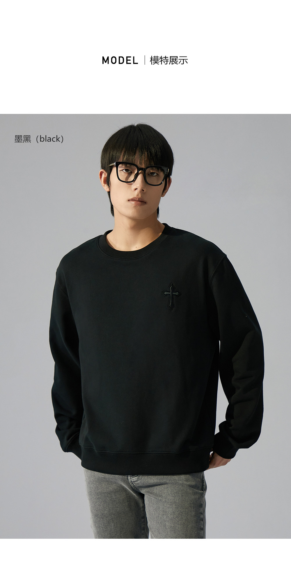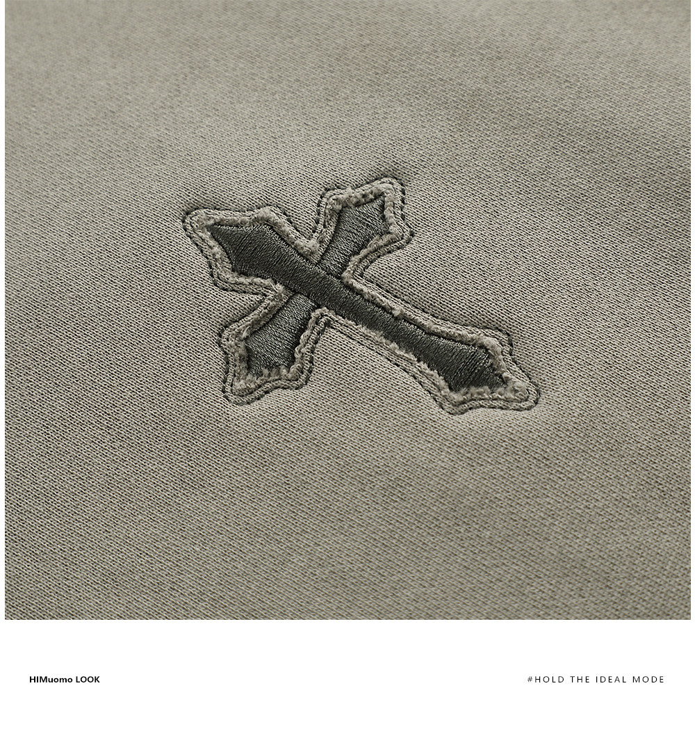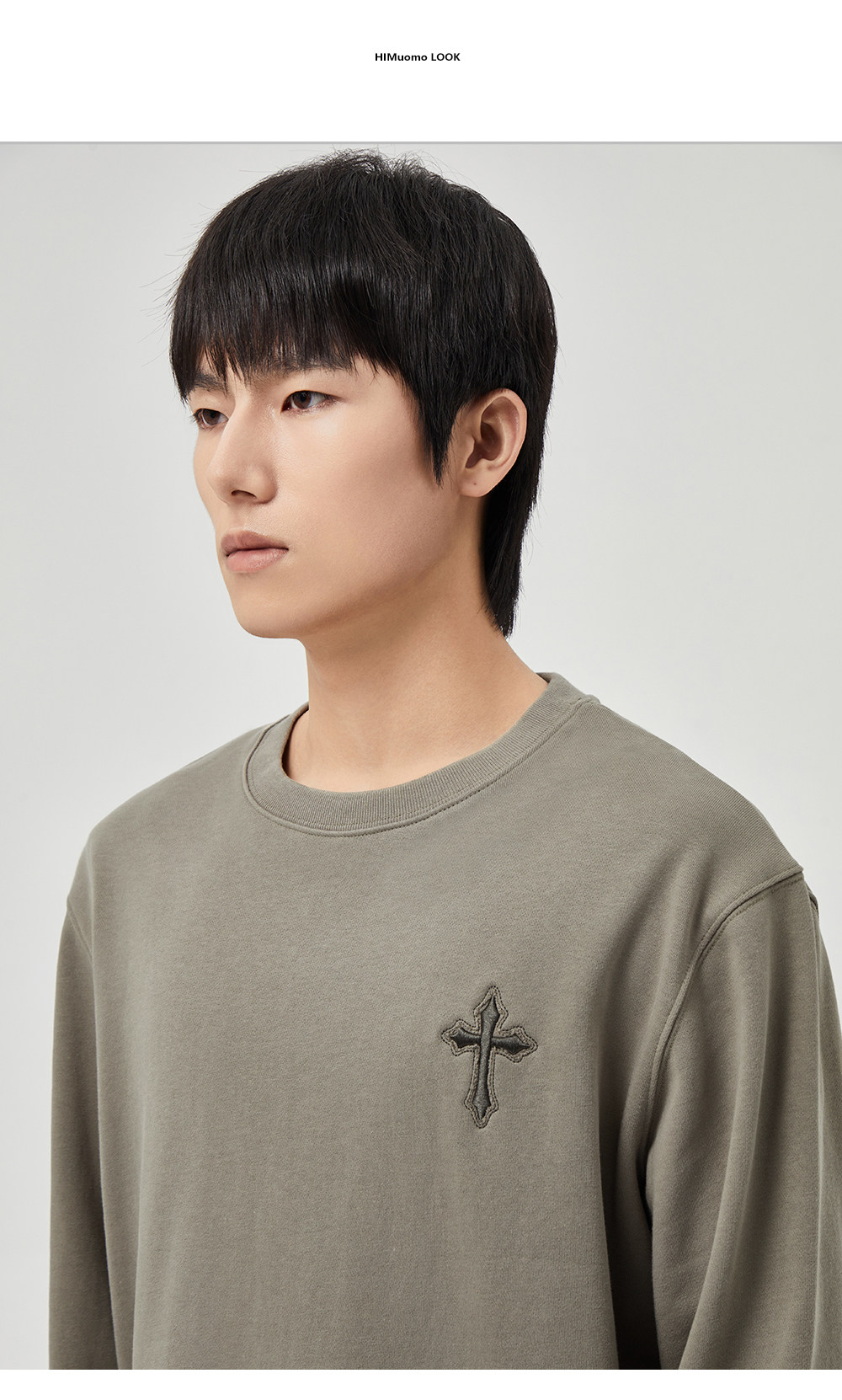 HIM漢崇 潮流立体绣花长袖卫衣男高级感休闲舒适圆领上衣2025秋季