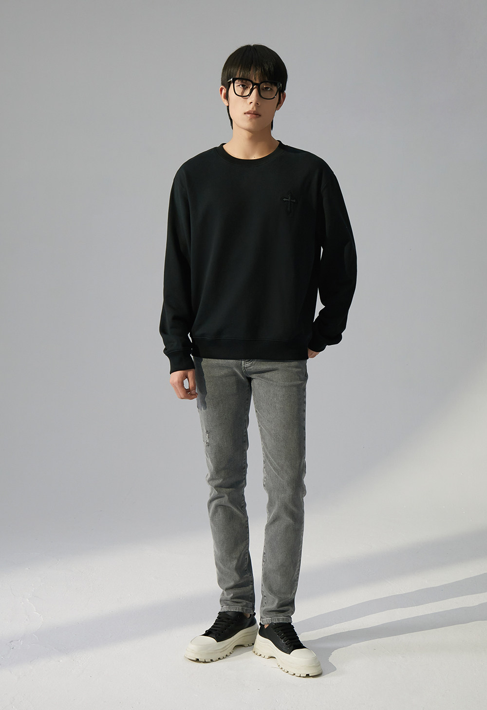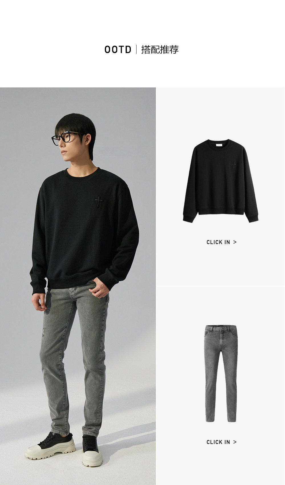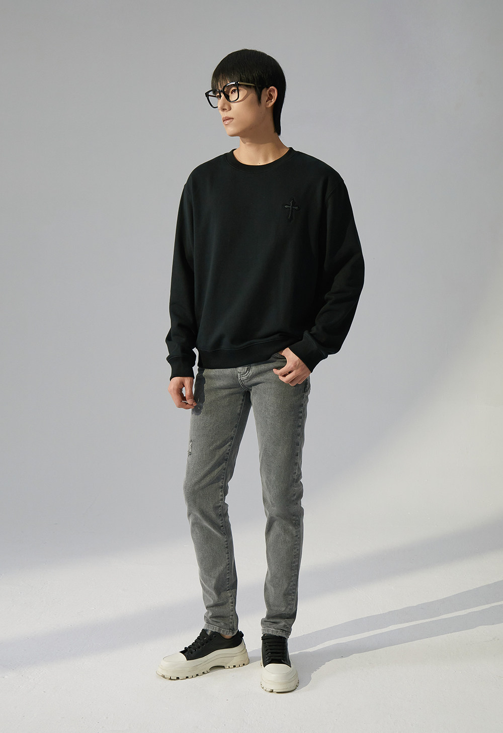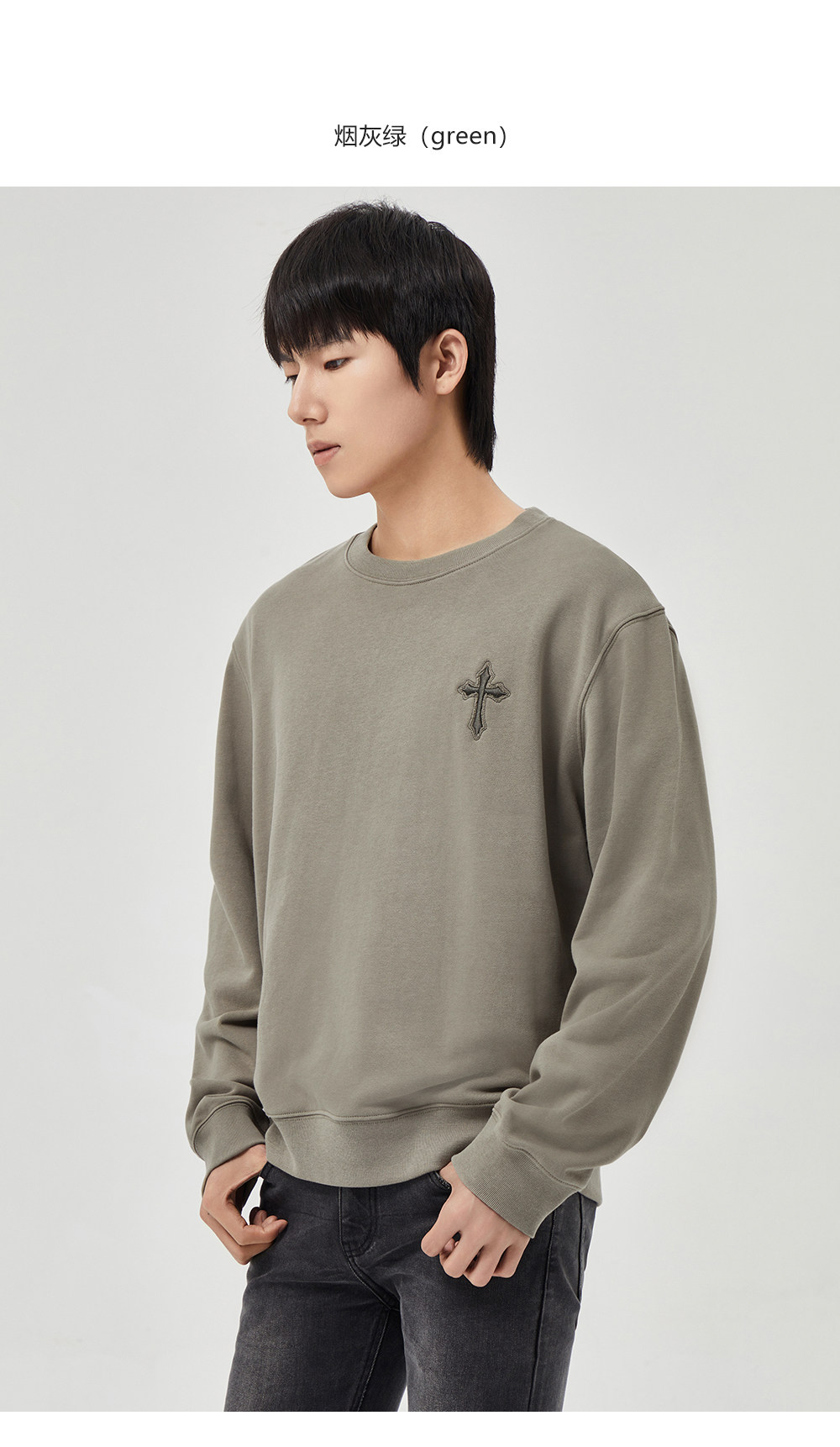 HIM漢崇 潮流立体绣花长袖卫衣男高级感休闲舒适圆领上衣2025秋季