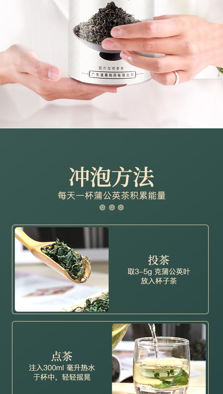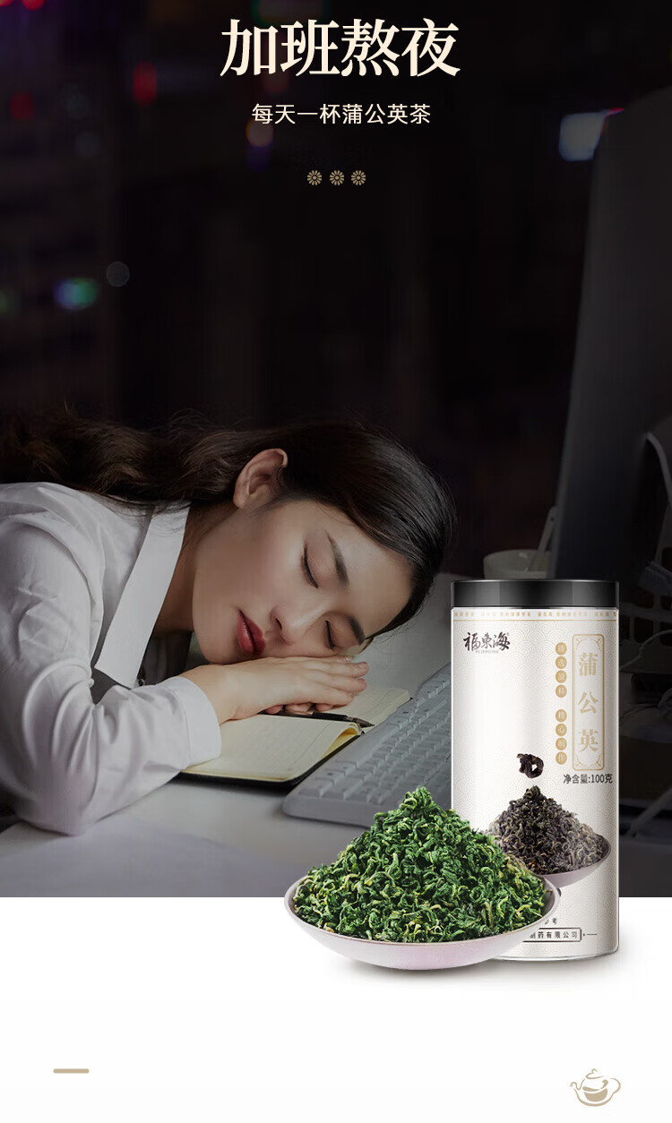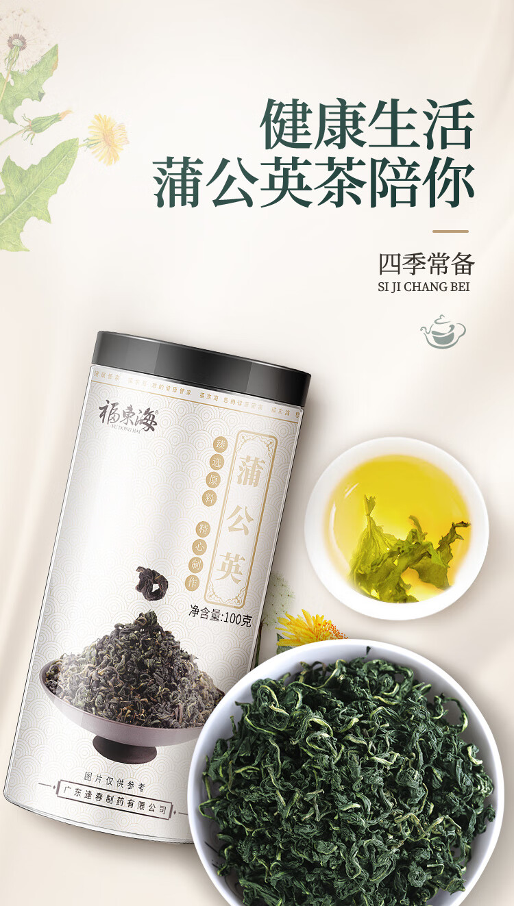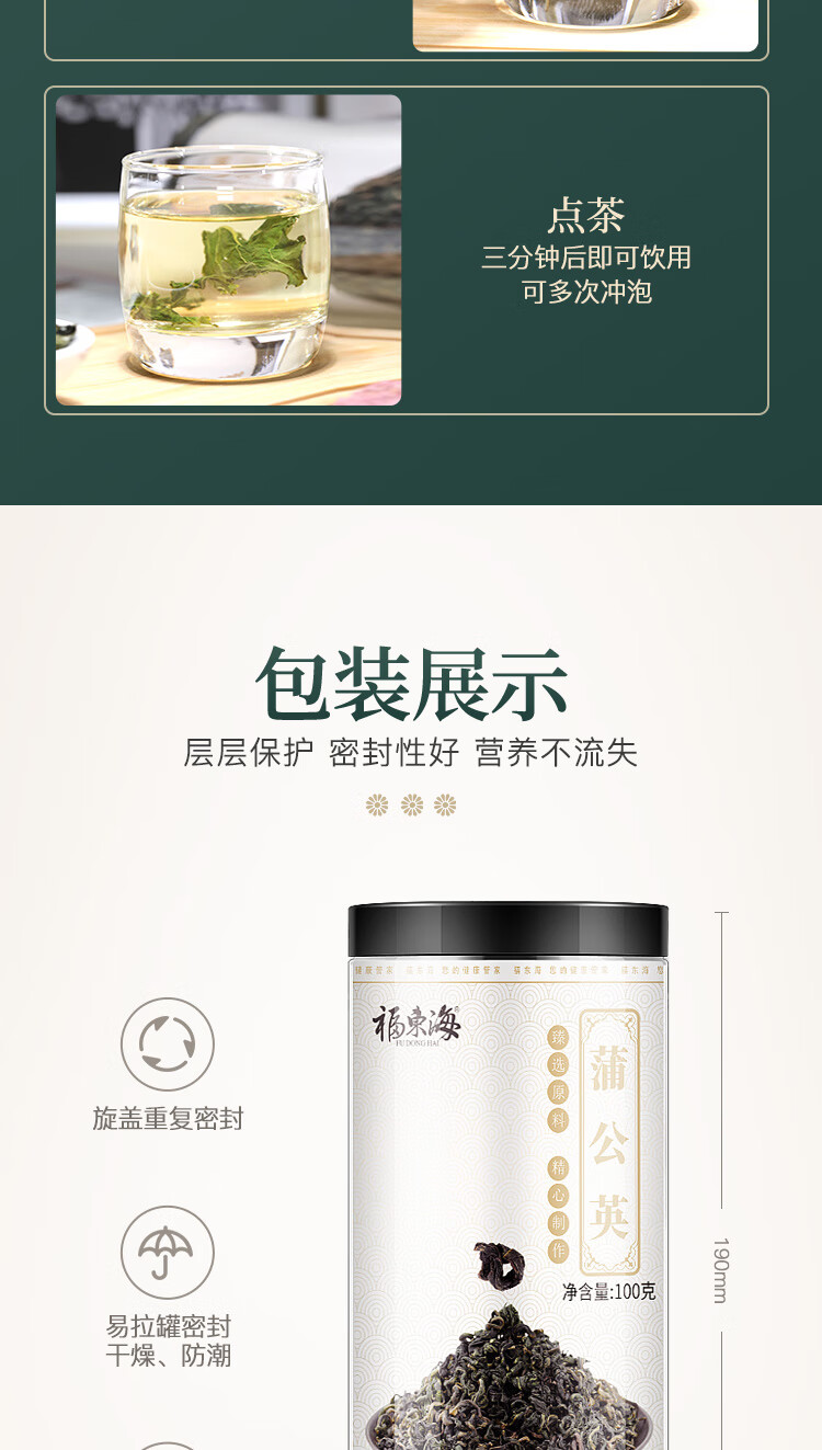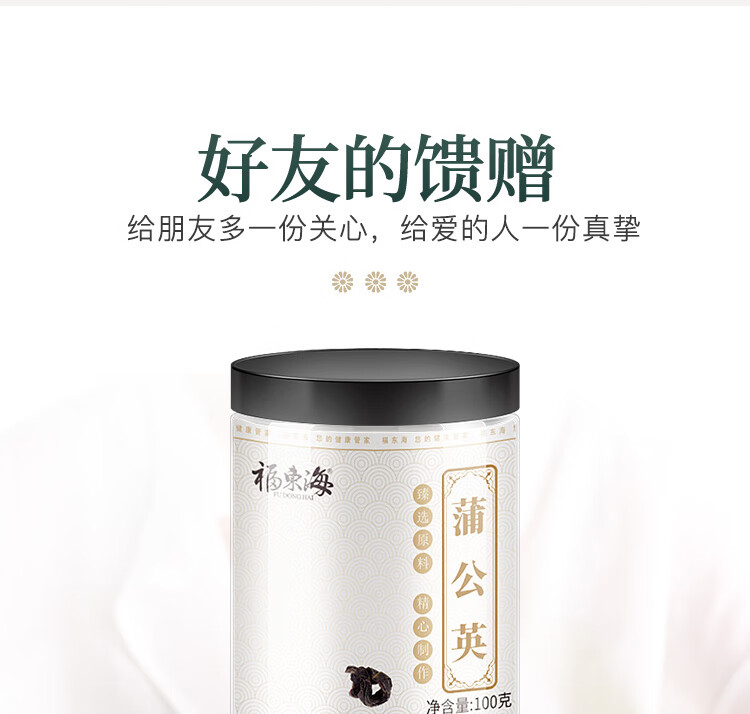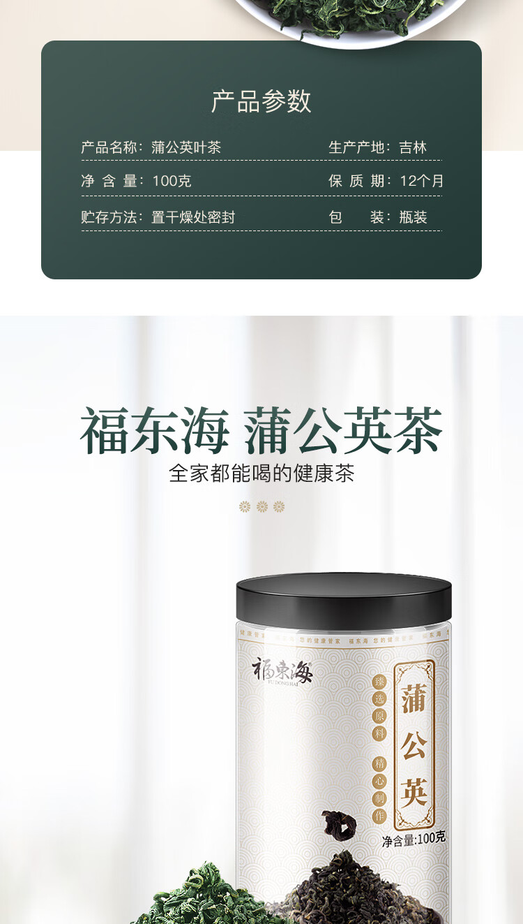 福东海 蒲公英叶茶100克 婆婆丁新鲜莆公英长白山泡水清纯花草茶