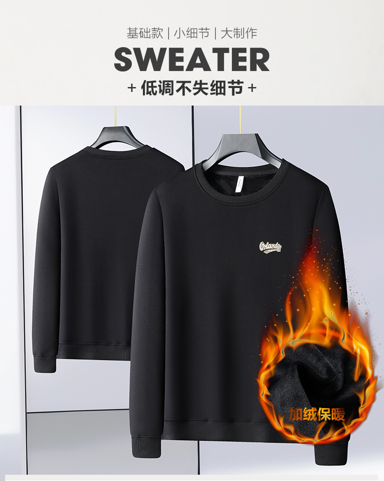 【新款DX】大依优型大码加绒卫衣圆领长袖加肥加大休闲运动上衣男打底衫胖子