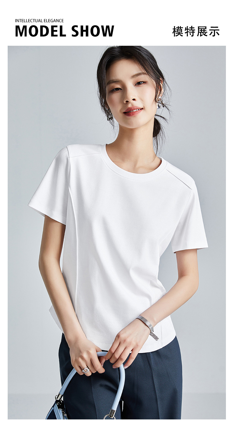 丁摩 液氨白色短袖正肩t恤女夏季丝光棉圆领打底衫体恤半袖5ZF-R6654