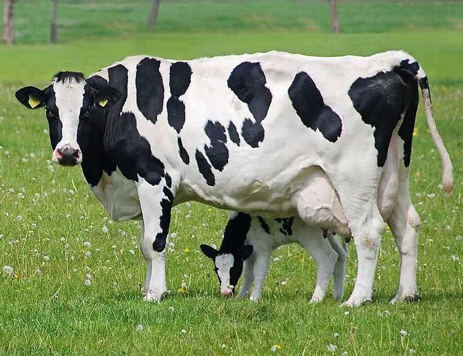 这款牛奶是来自荷斯坦牛,荷斯坦牛原产于荷兰,经过本土培养,目前已经是国内高品质牛奶的主力军。下图就是荷斯坦牛,也叫黑白花牛,这种牛产奶量高,但是对饲料要求也高,雪兰的牧场一天就给100多块钱的伙食费用。