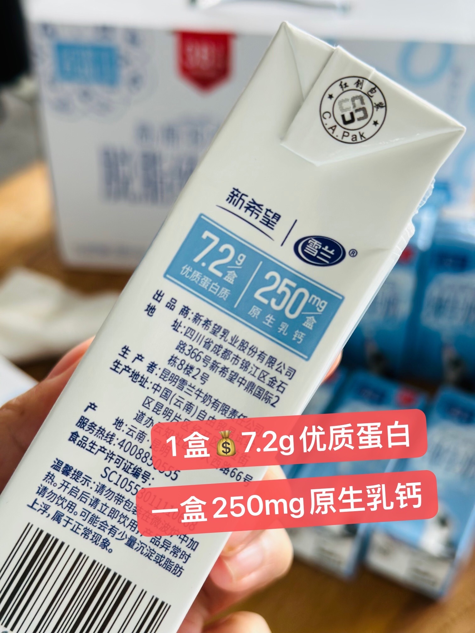 ✅脱脂每瓶含有7.2g高蛋白,250mg原生乳钙!