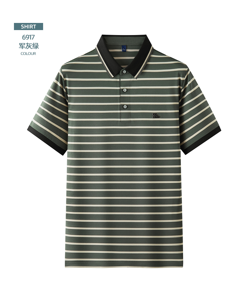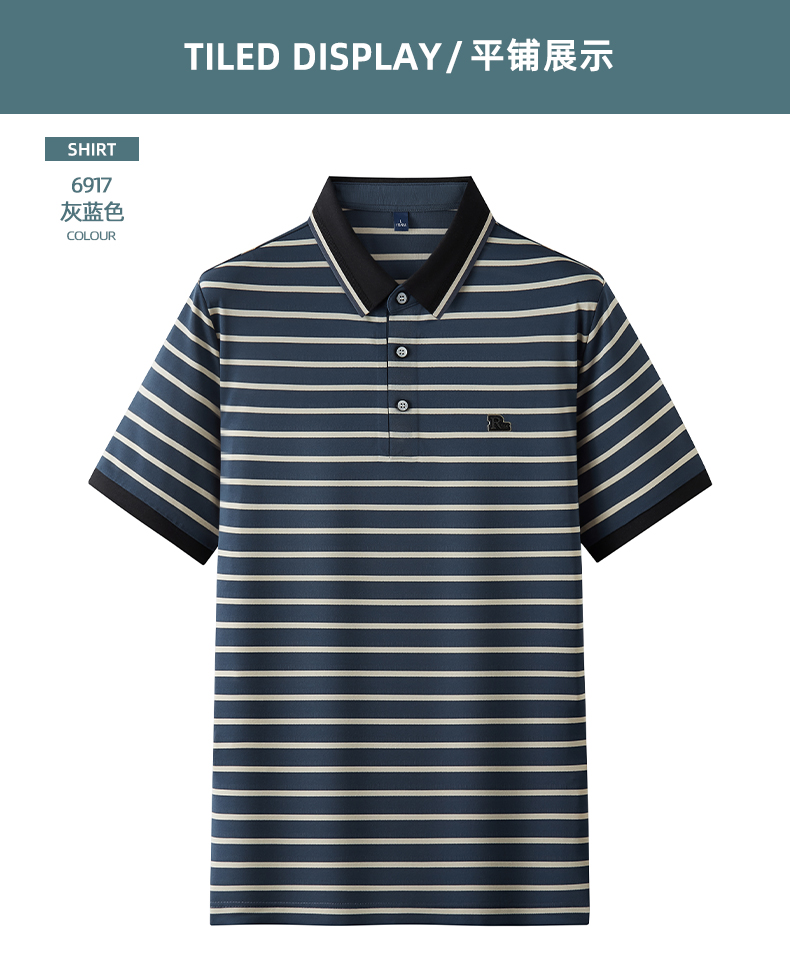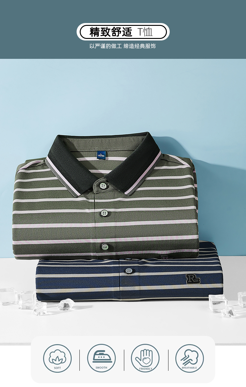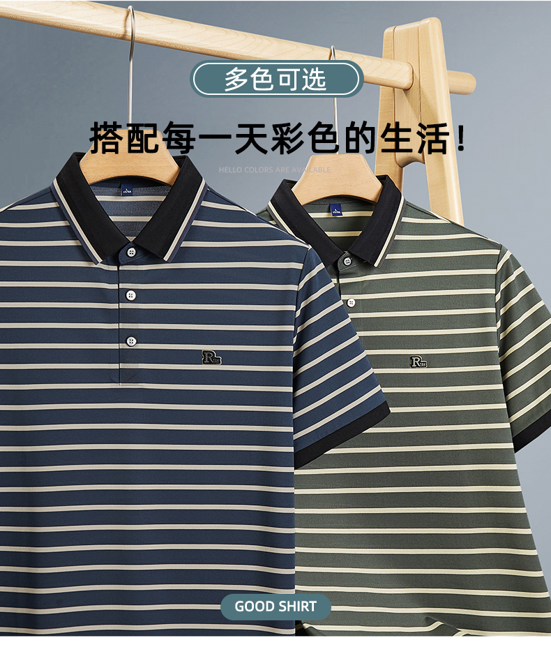 【凉感透气】【新款DDY】大依优型大码条纹短袖Polo衫翻领加肥加大男装大号大码衬衣上衣男士绅士商务休闲半袖夏季