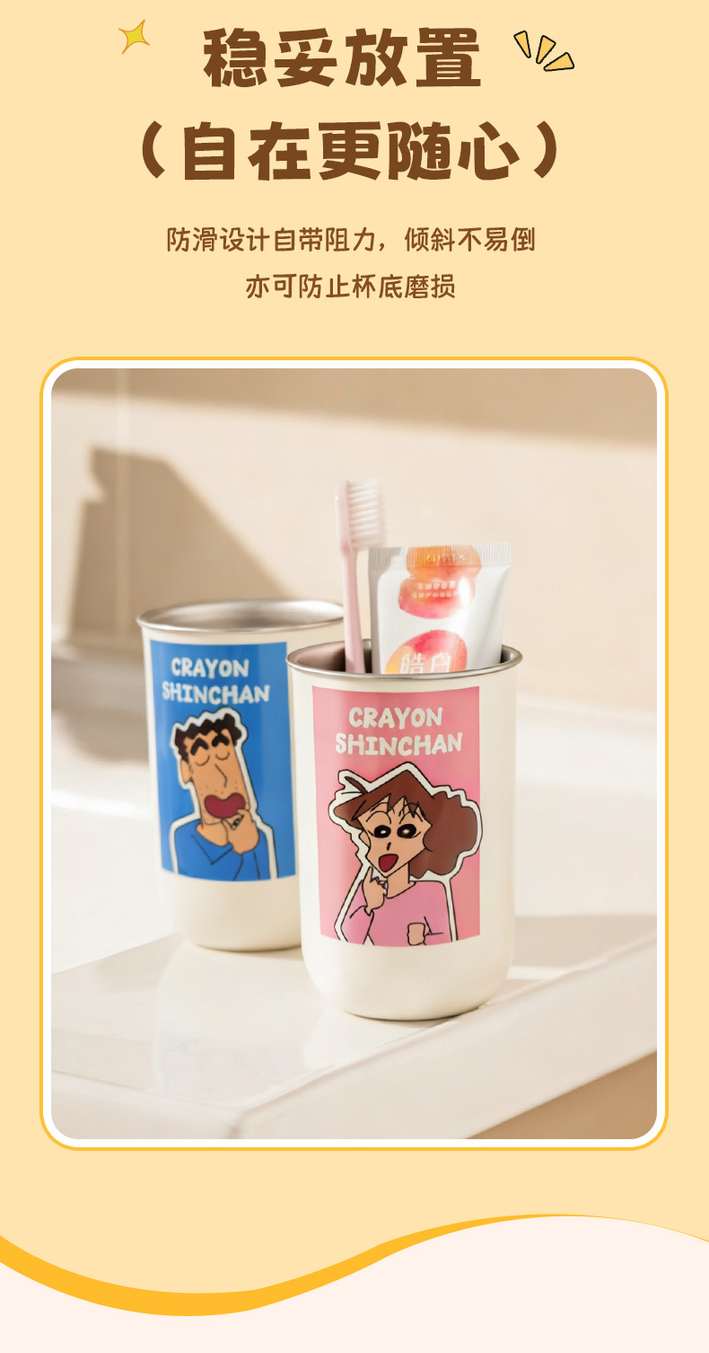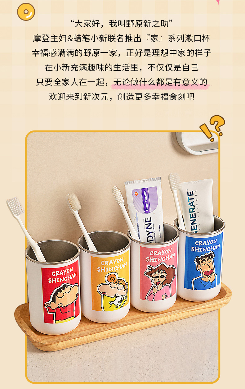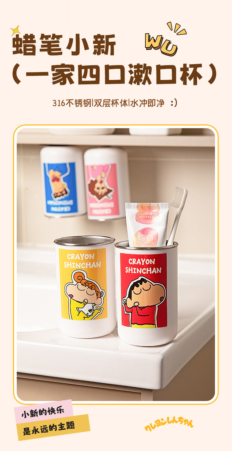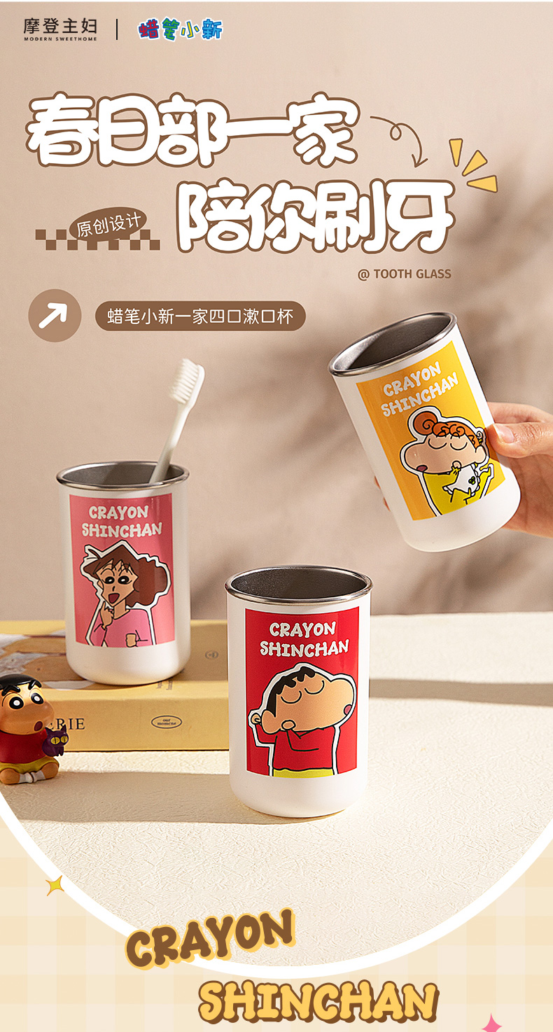 摩登主妇&蜡笔小新一家四口316不锈钢漱口杯儿童刷牙洗漱牙缸