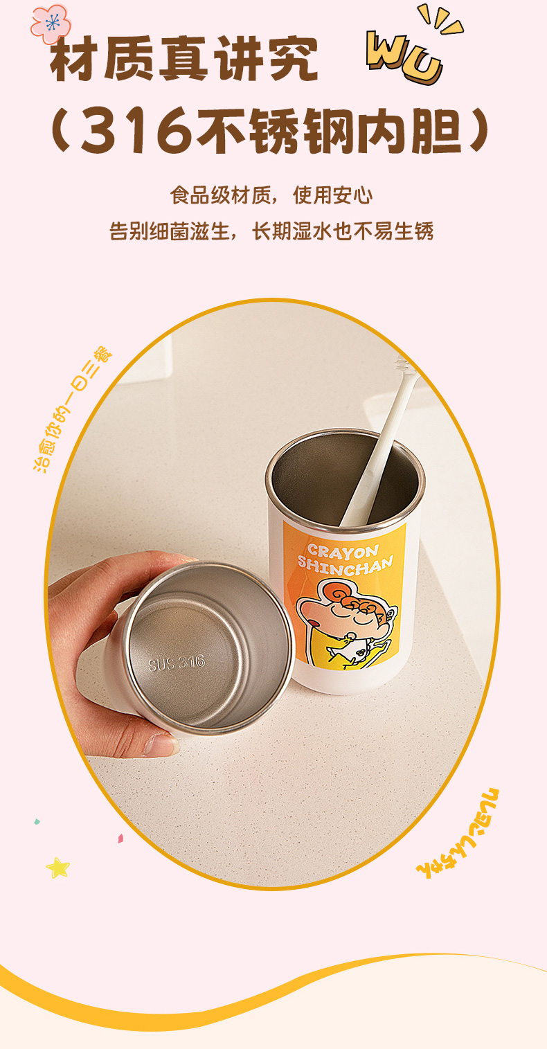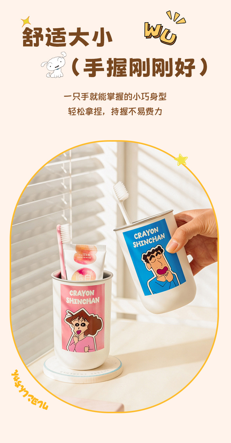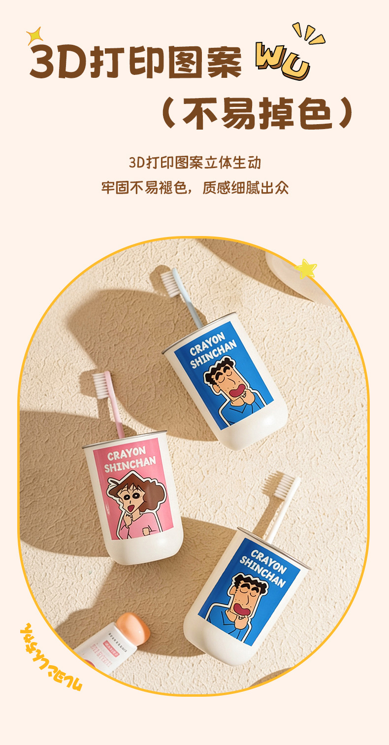 摩登主妇&蜡笔小新一家四口316不锈钢漱口杯儿童刷牙洗漱牙缸