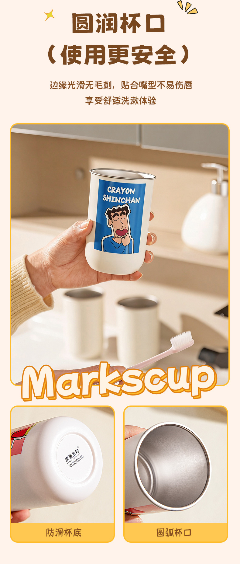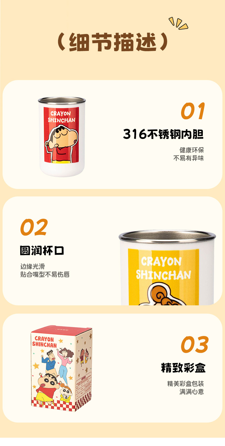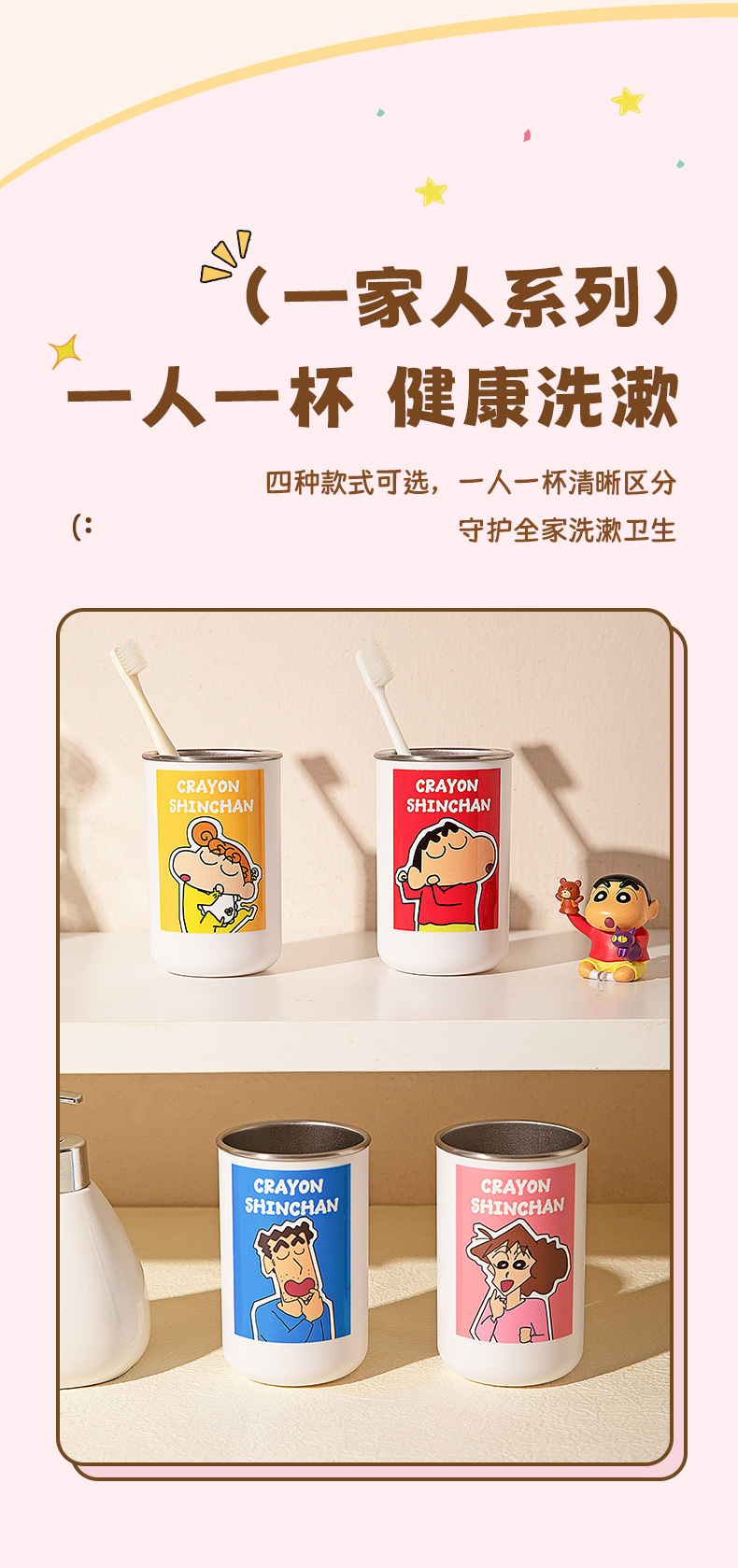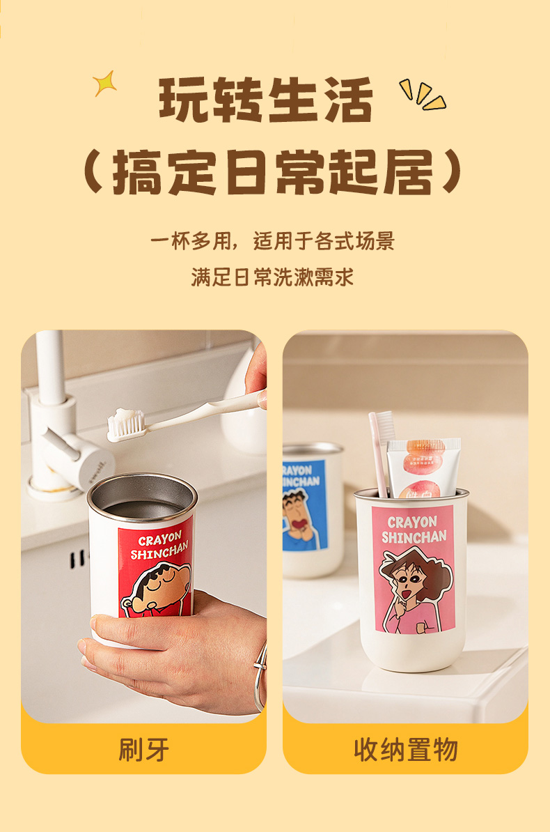 摩登主妇&蜡笔小新一家四口316不锈钢漱口杯儿童刷牙洗漱牙缸