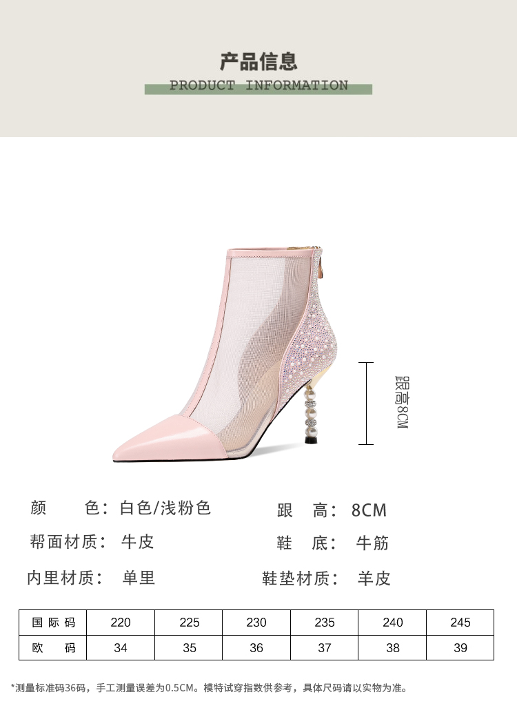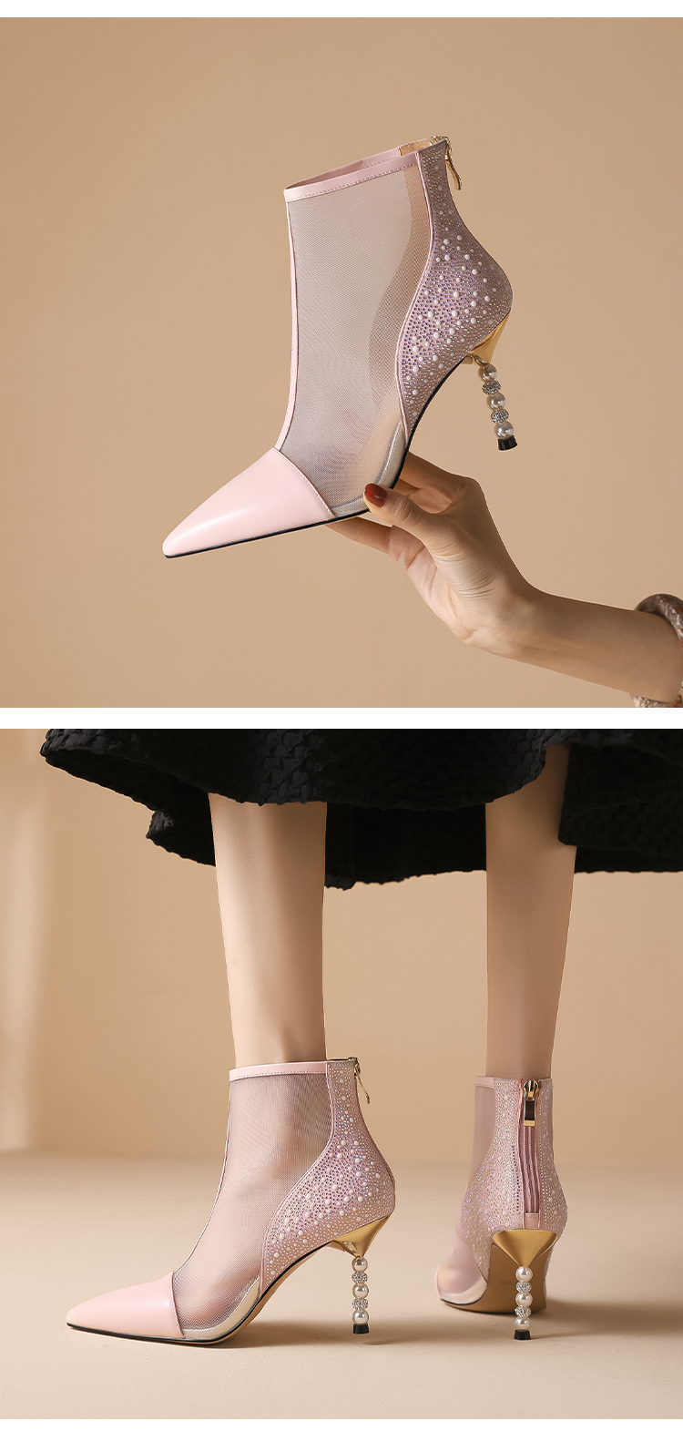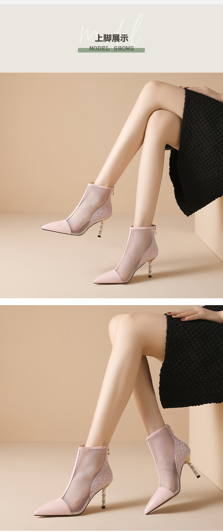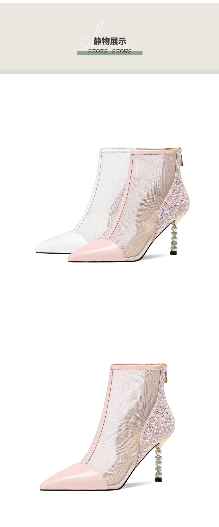 春夏新款,网纱水钻珍珠鞋跟真皮网靴YLY-1301