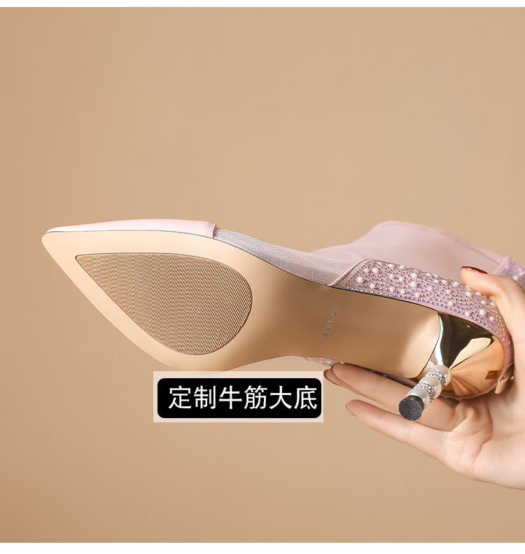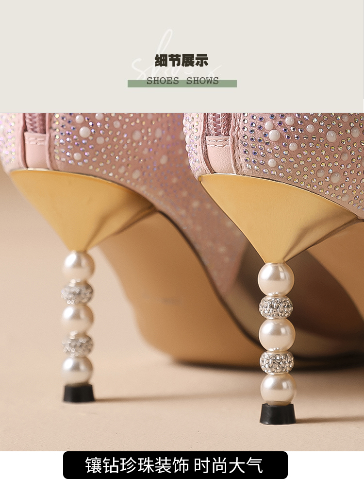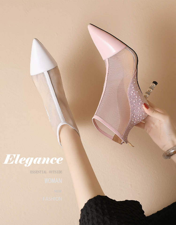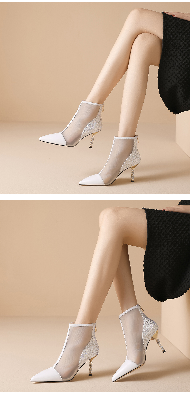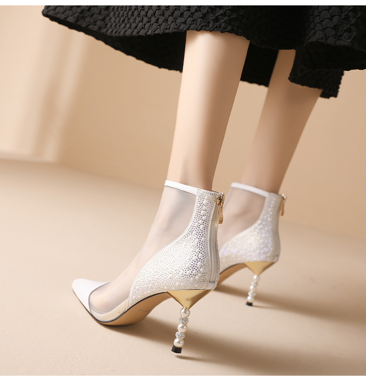 春夏新款,网纱水钻珍珠鞋跟真皮网靴YLY-1301