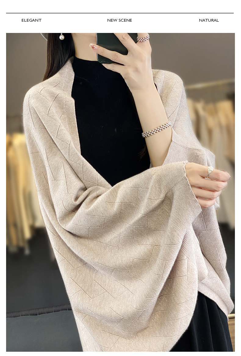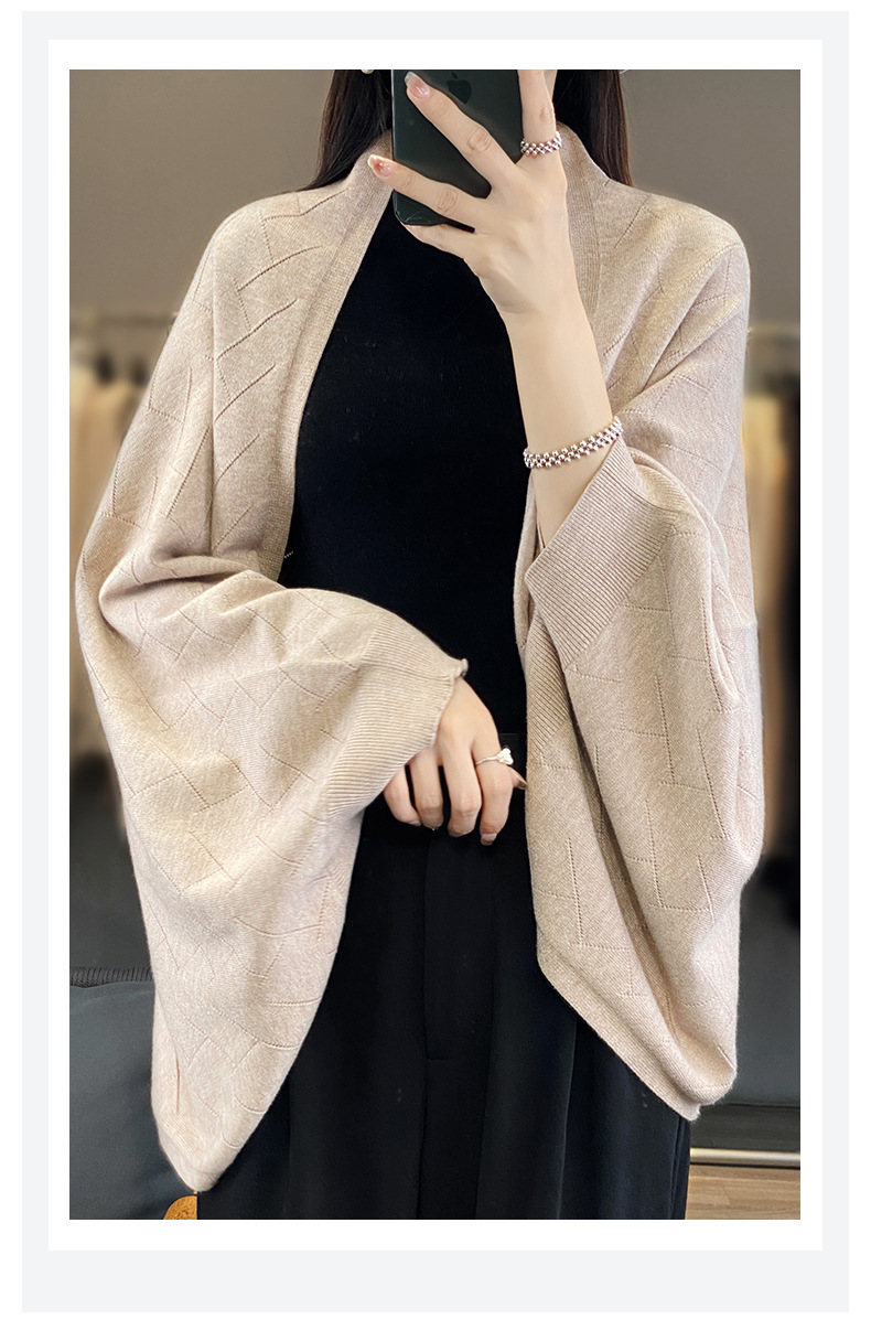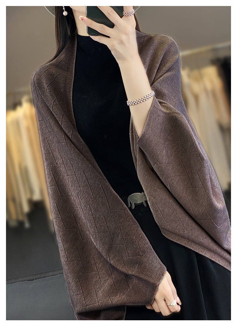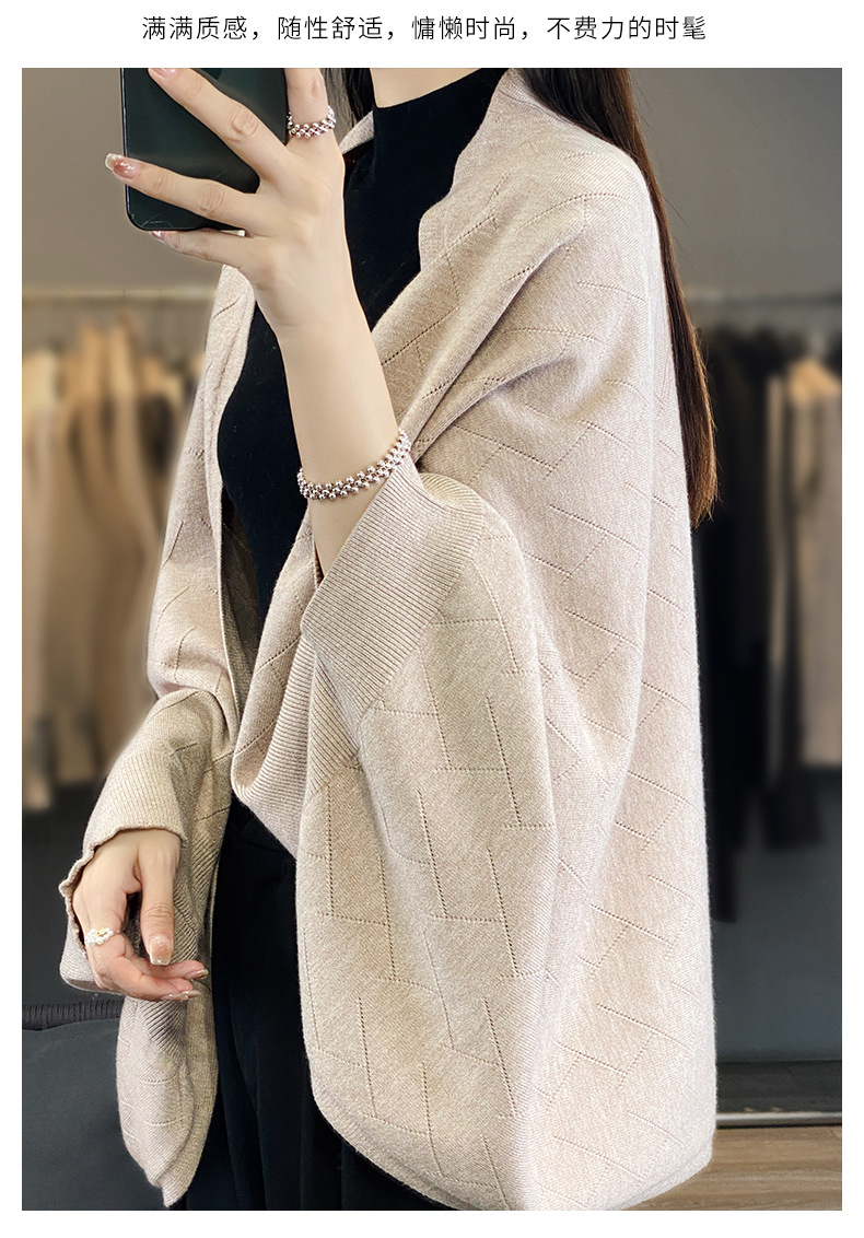 KQL B403N90075围巾外套镂空菱形格宽松外披斗篷上衣