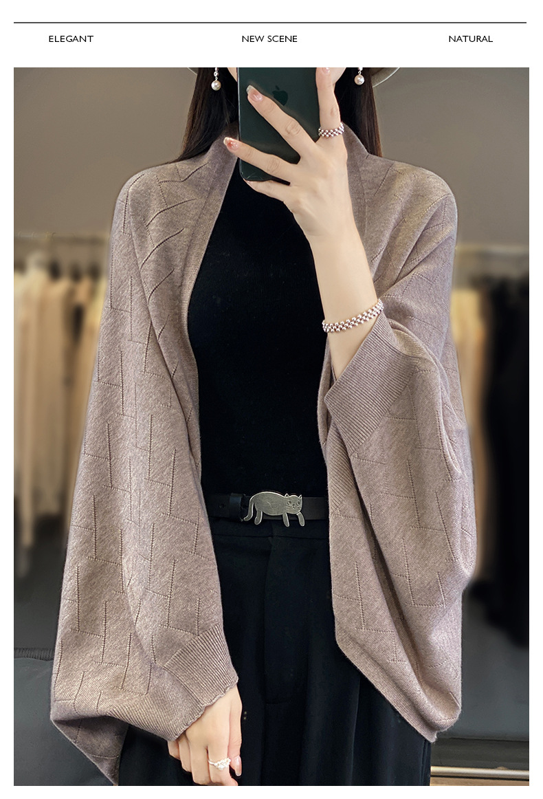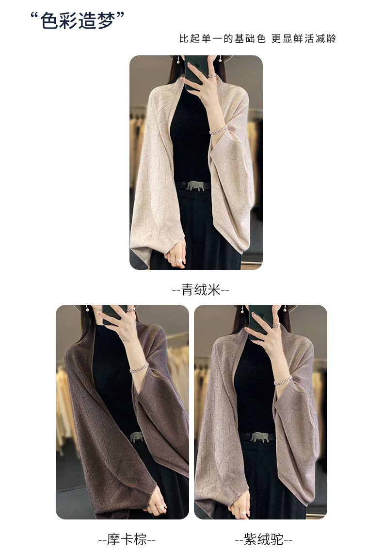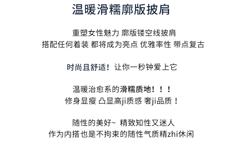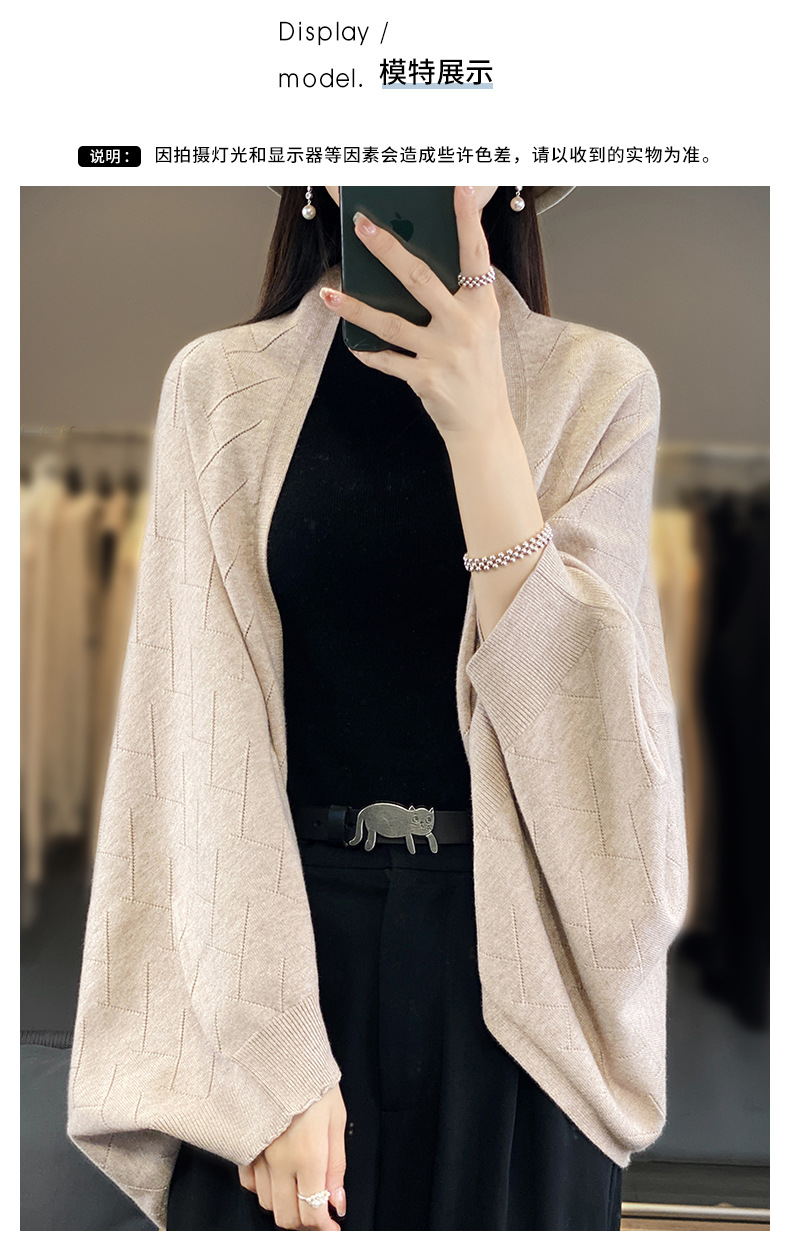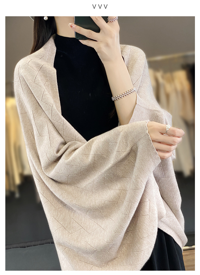 KQL B403N90075围巾外套镂空菱形格宽松外披斗篷上衣