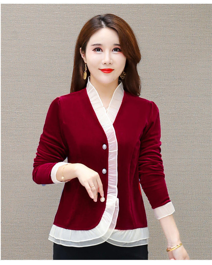 MQ1339-A04新款时尚时尚气质小香风V领长袖短款外套