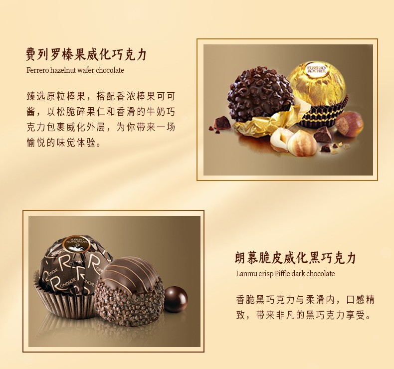 【情人节好礼!至臻心意,甜蜜相伴】费列罗巧克力礼盒装 婚庆喜糖伴手礼 生日情人节 新年礼物零食-QB