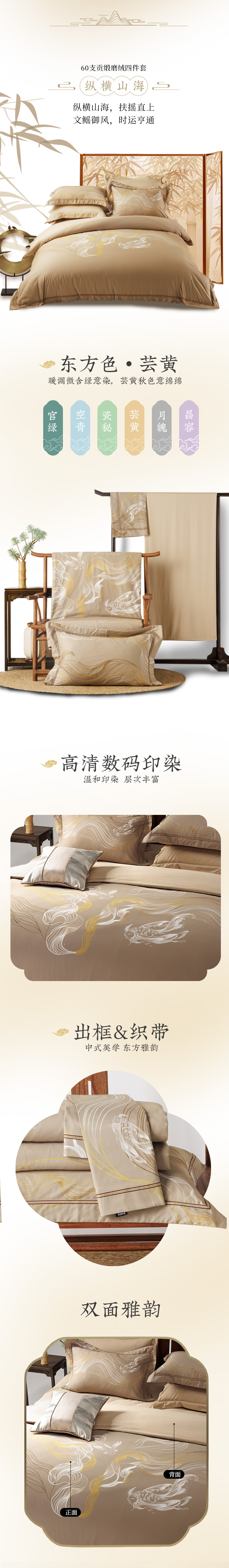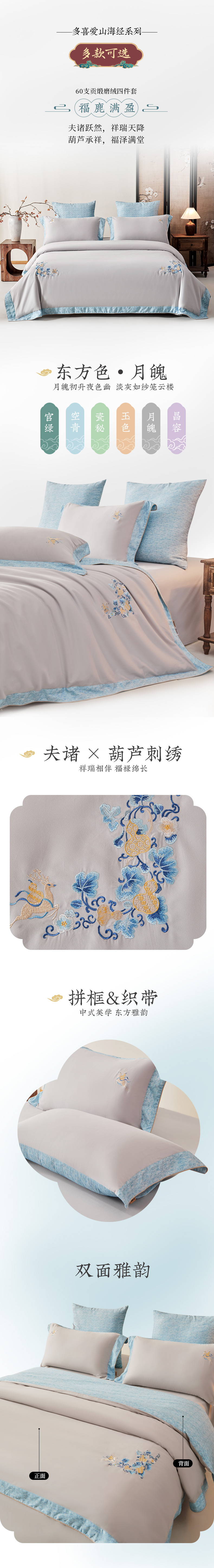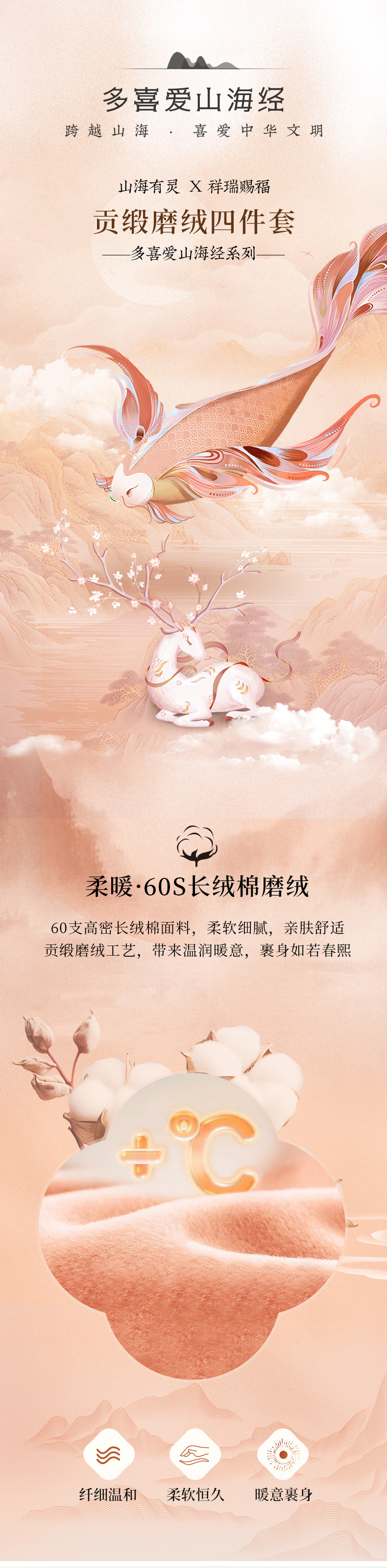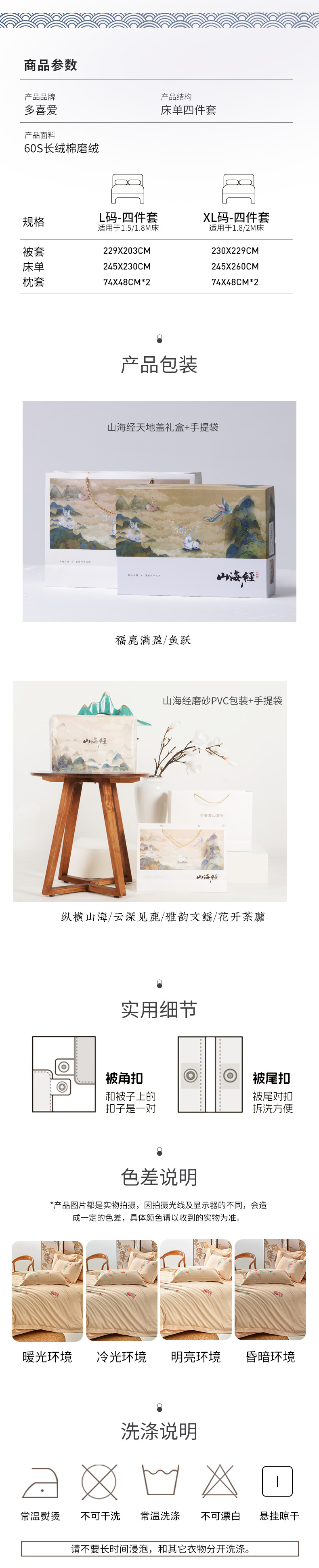 多喜爱山海经 60S贡缎磨绒四件套 花开荼蘼/纵横山海/雅韵文鳐/福鹿满盈/鱼跃hlcs