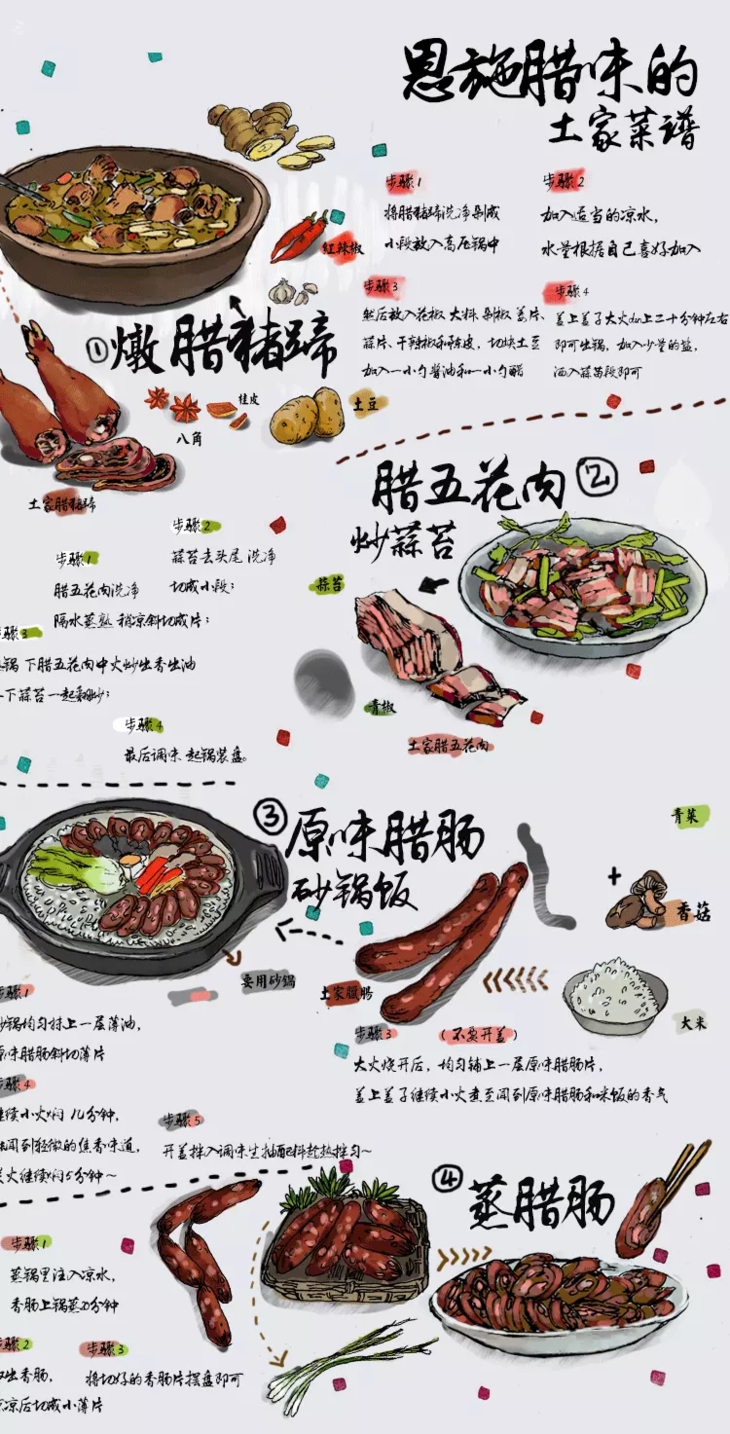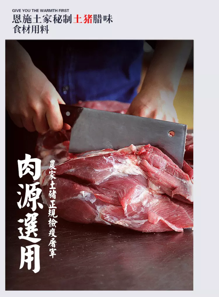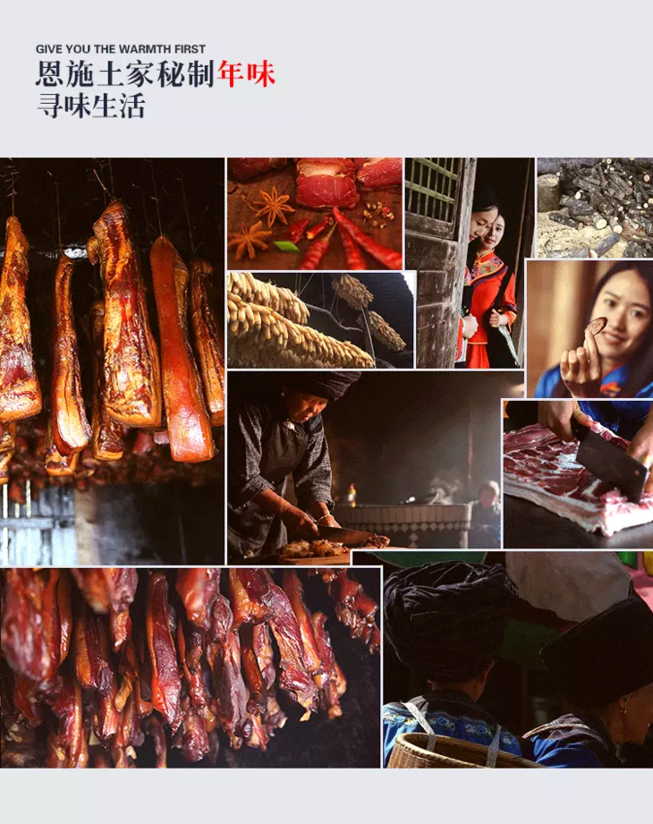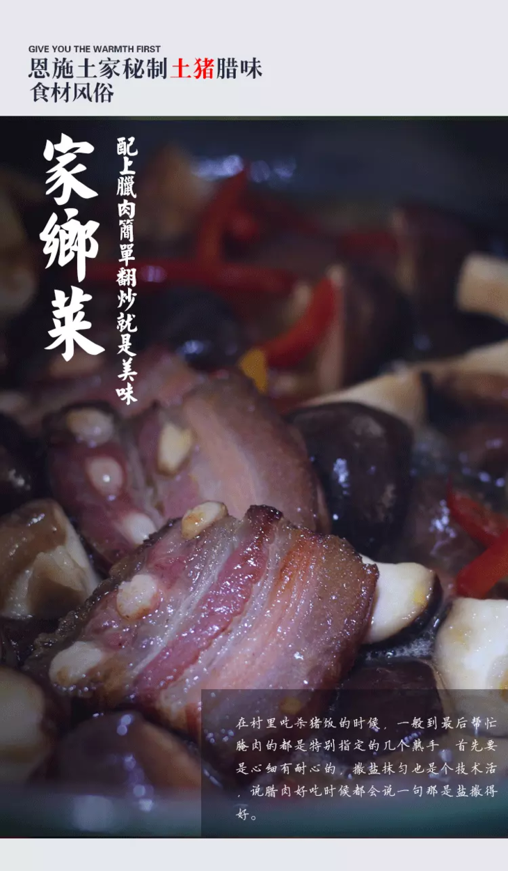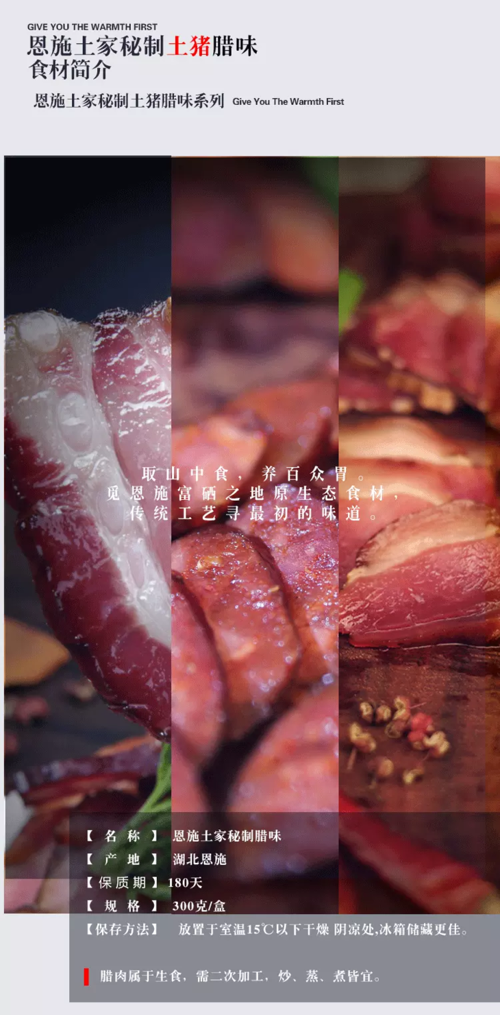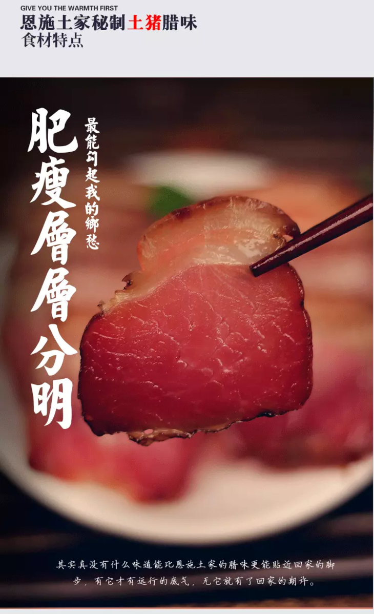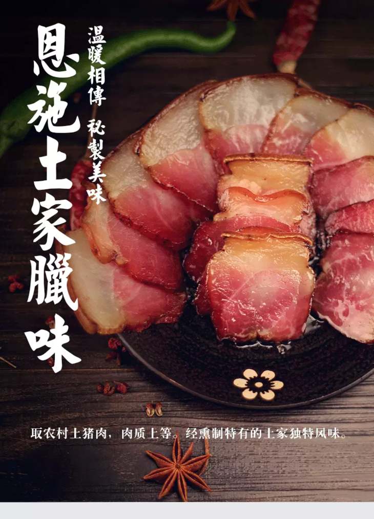 l 品牌恩施土家古法秘制腊味 -品种:五花腊肉,后腿腊肉,麻辣香肠原味香肠随机发