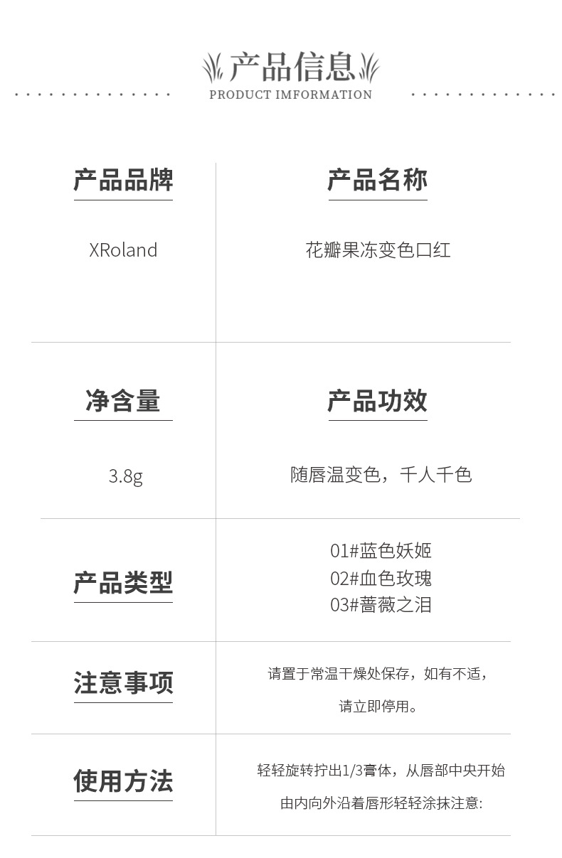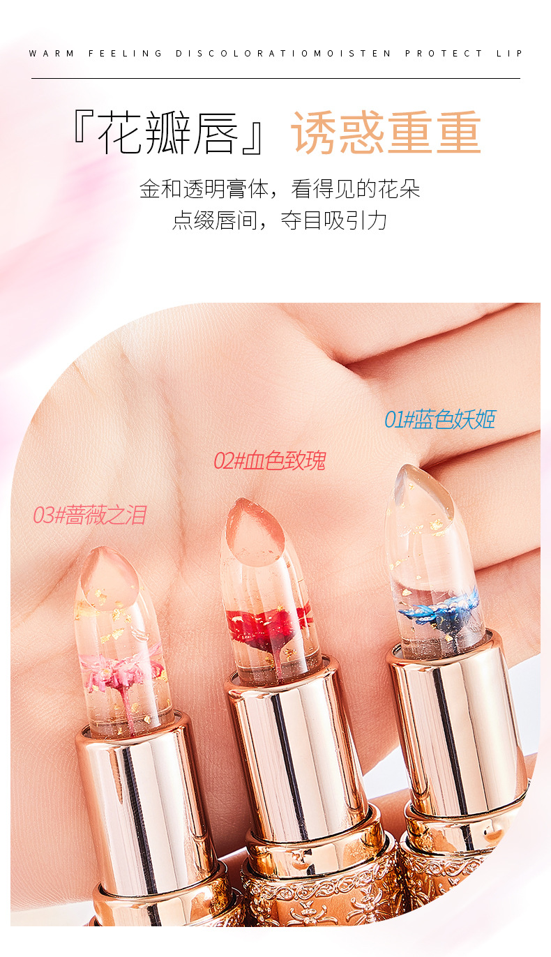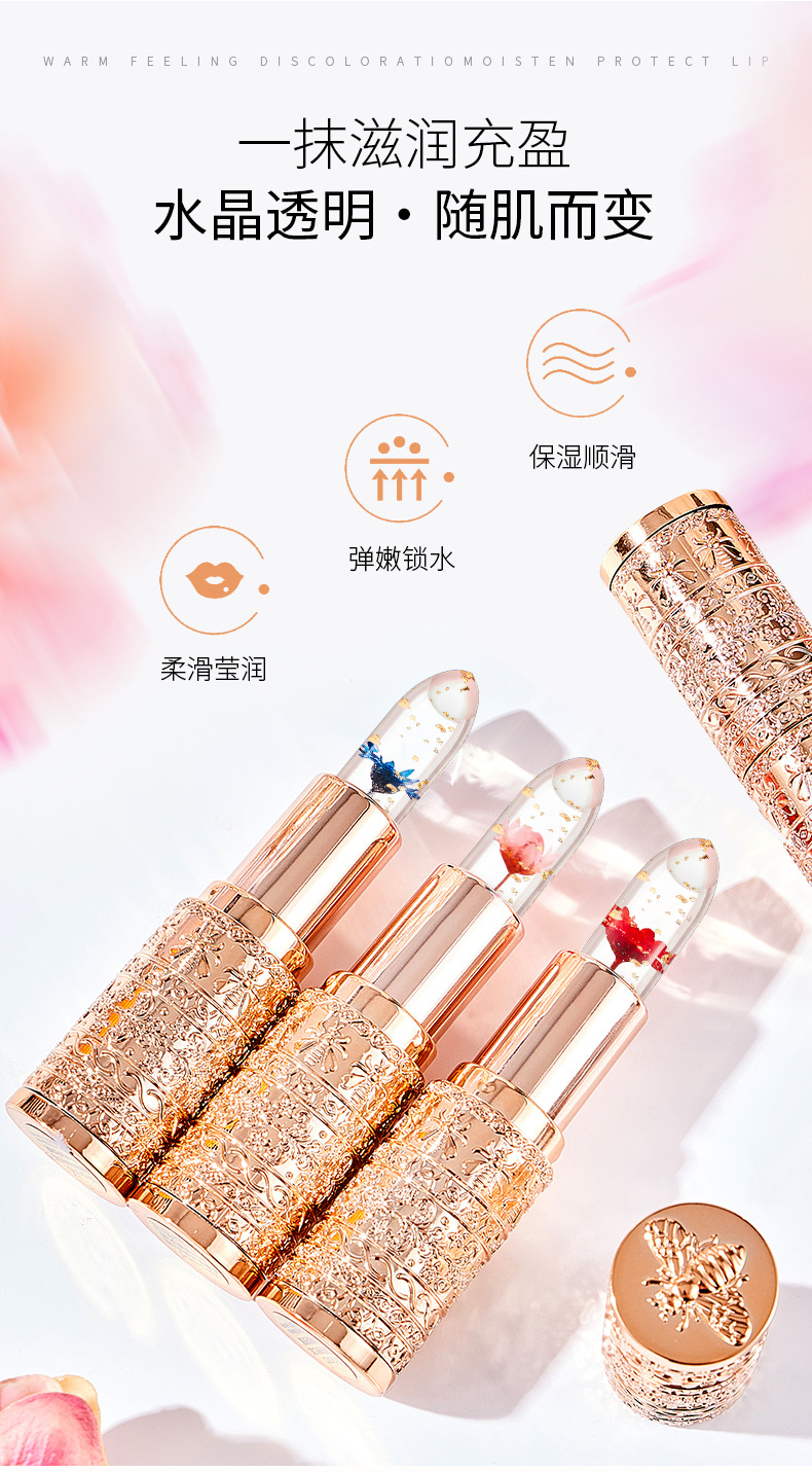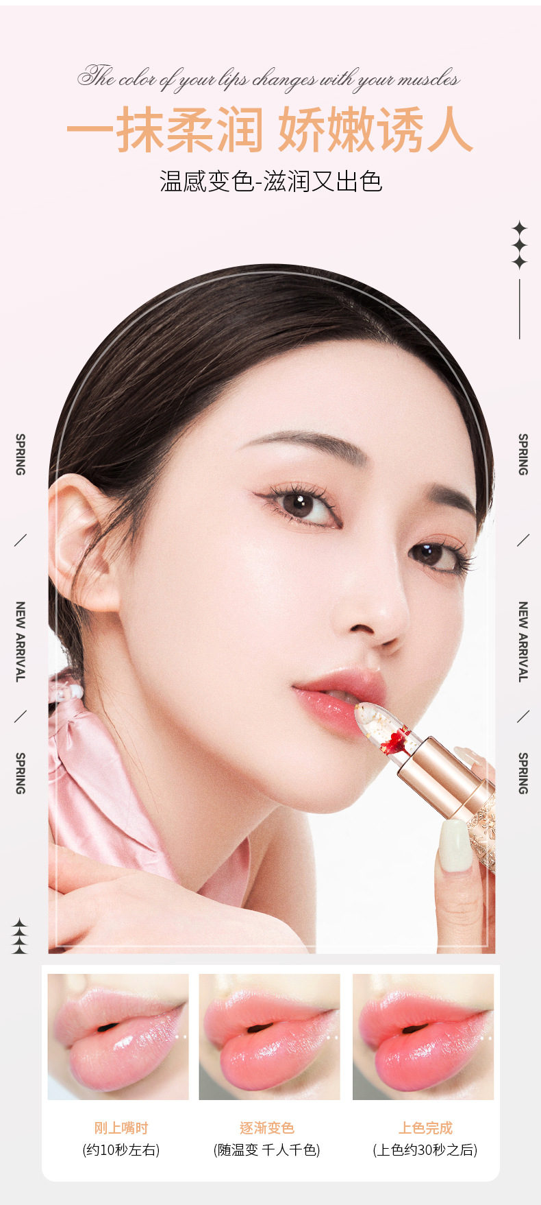 【温感变色 滋润护唇】花瓣果冻变色口红 不掉色不沾杯持久 变色润唇膏口红 软萌少女色系 一抹晶莹剔透唇-QQ