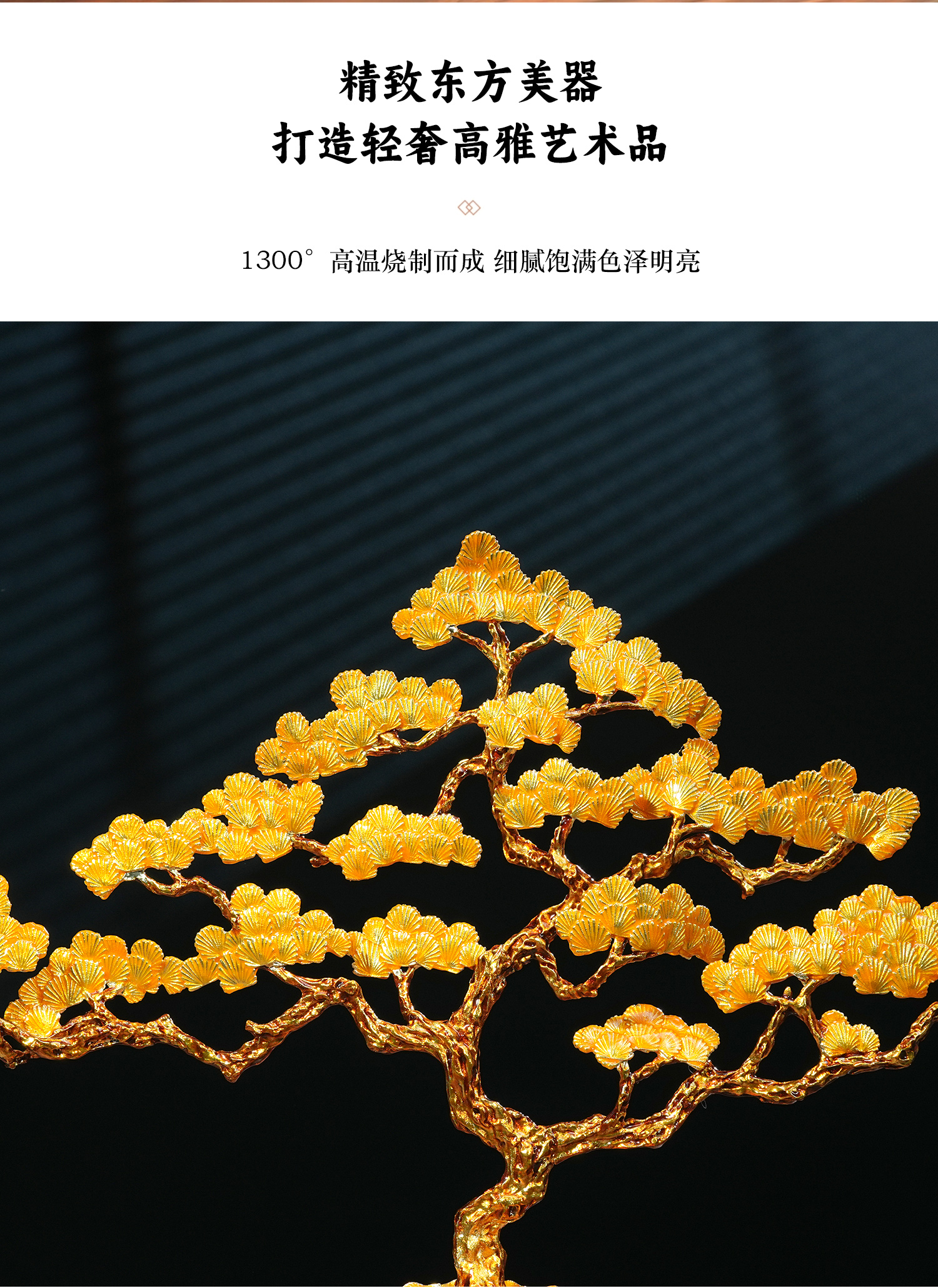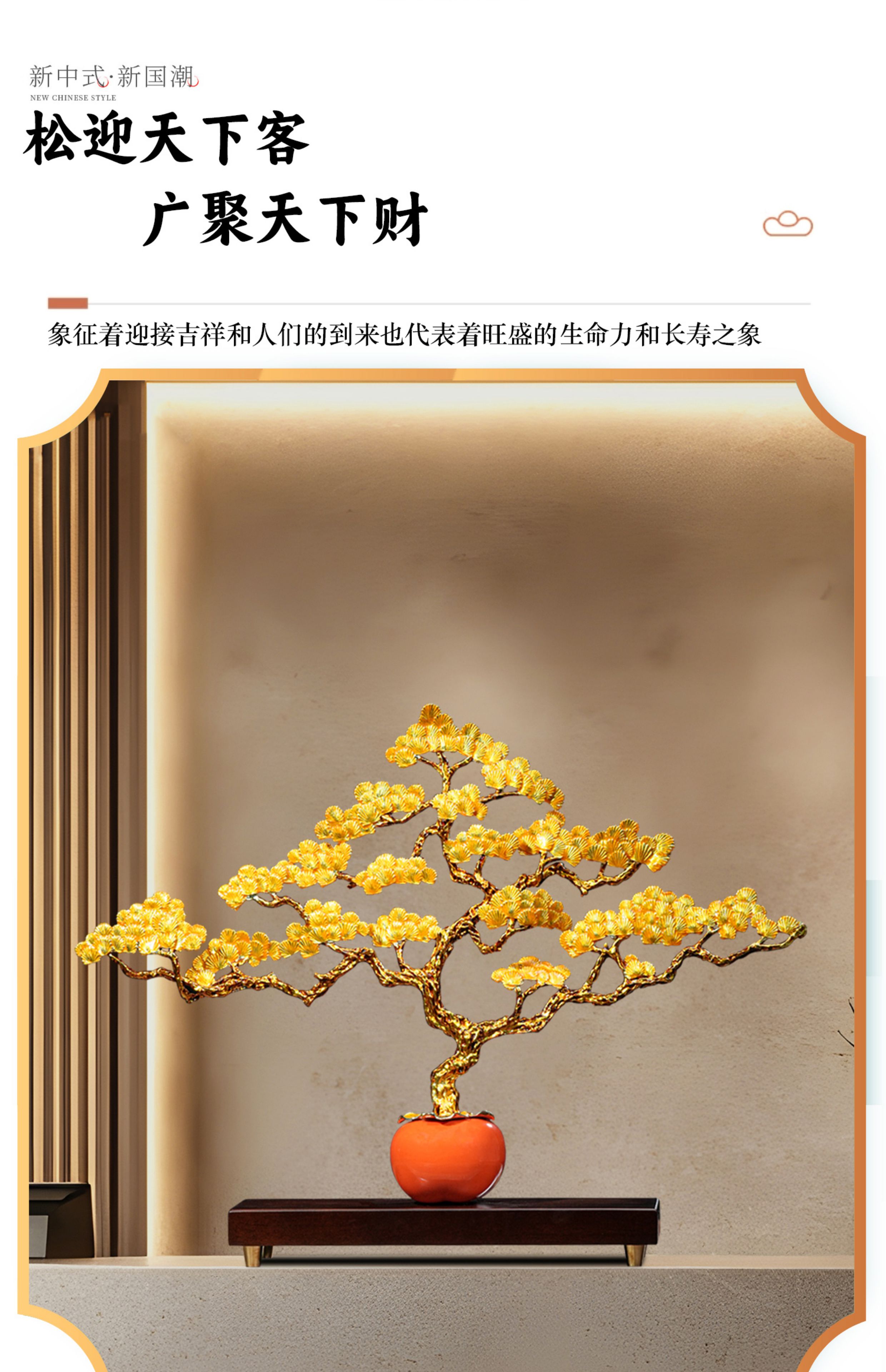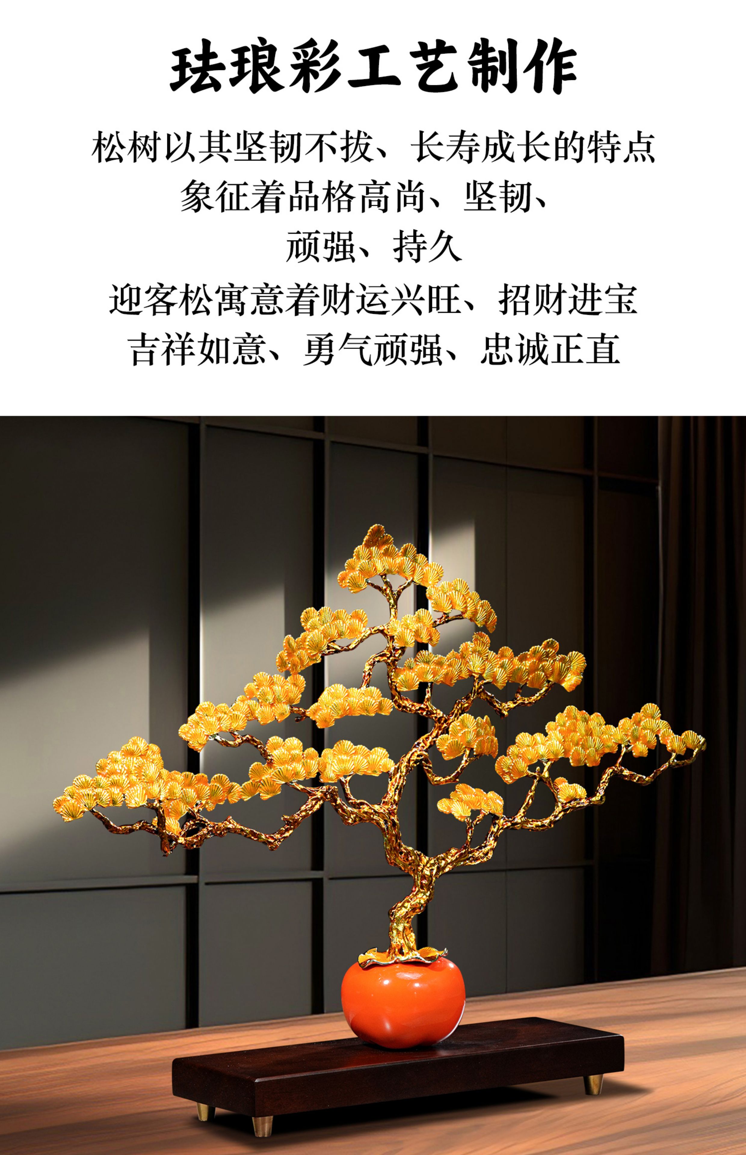 意柿珐琅彩迎客松摆件新中式柿如办公室摆件客厅书房迁乔开业