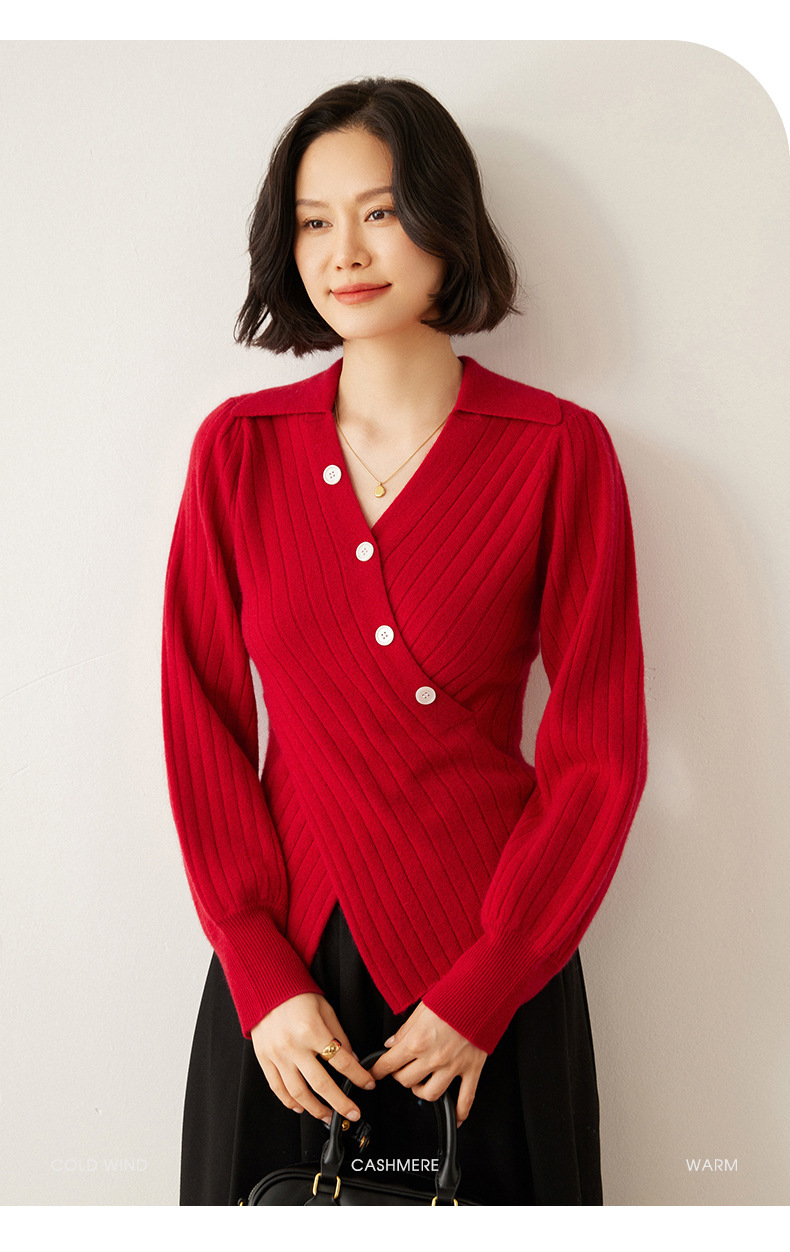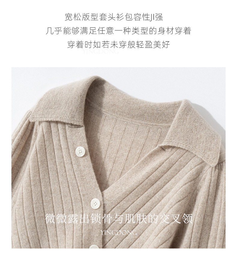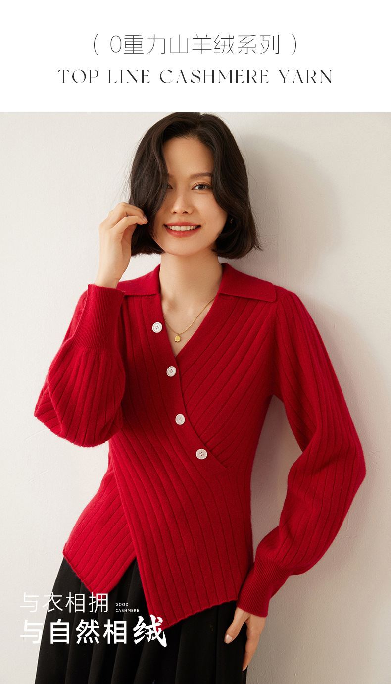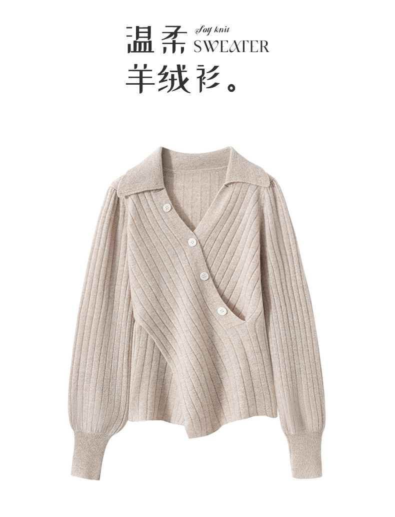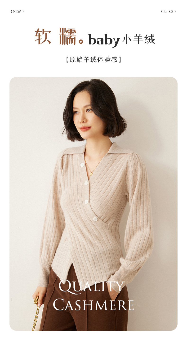 【高货QJ】全新升级【铂金会员395/天猫529/差价134】(10753) 洛诗琳设计感交叉裹身POLO领毛衣修身收腰显瘦针织羊绒衫