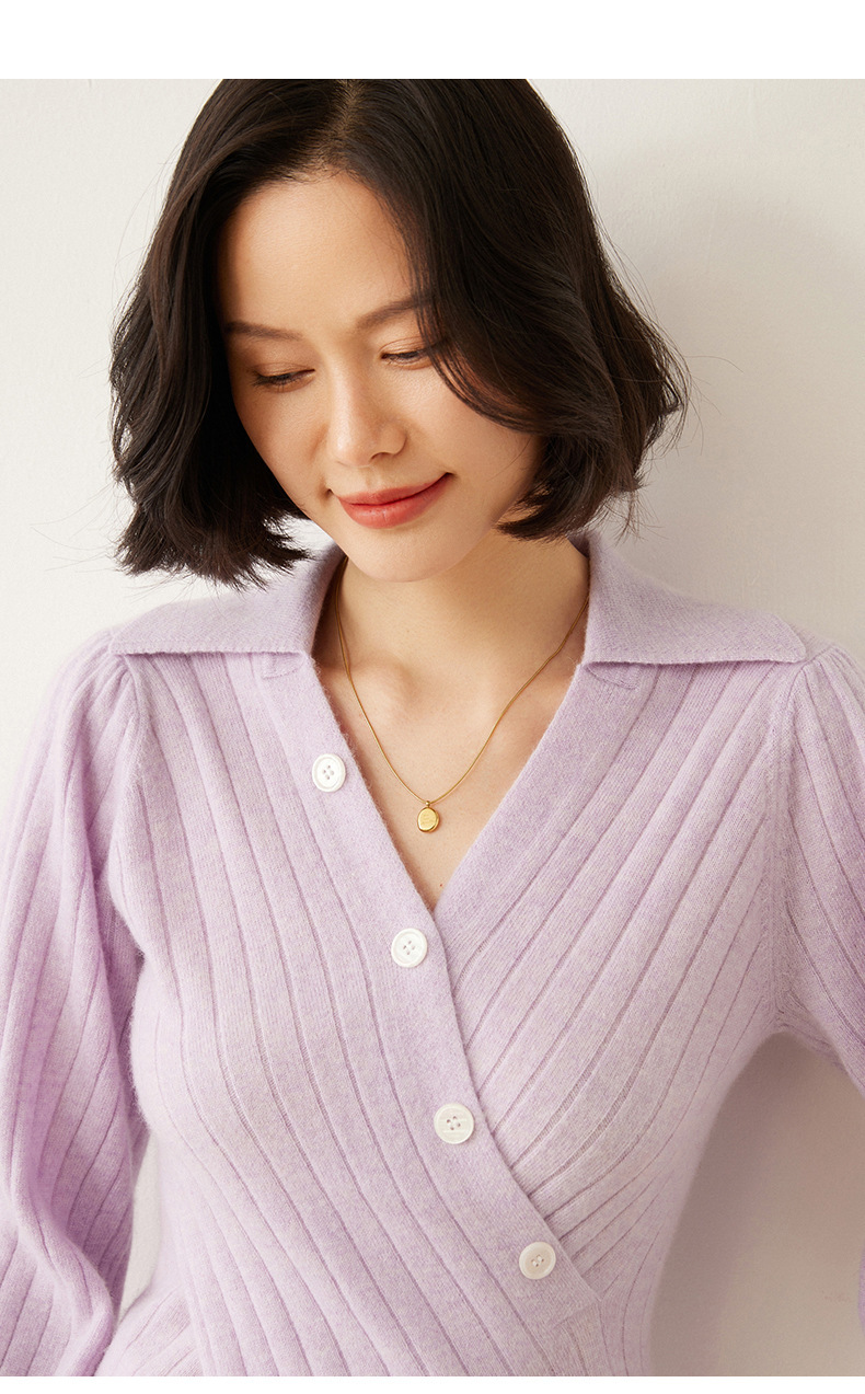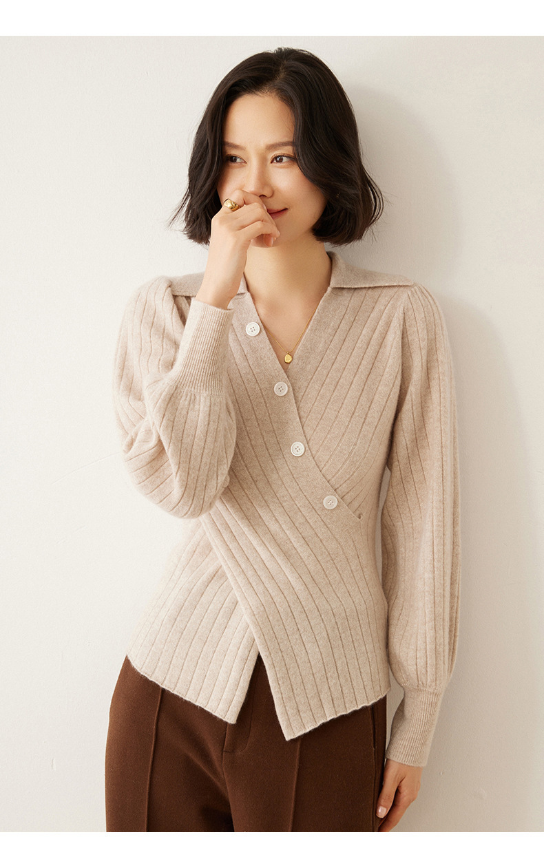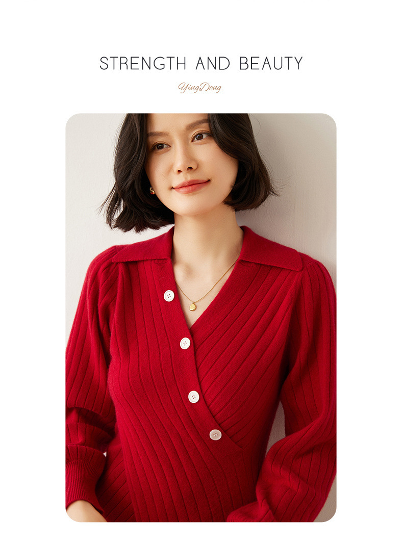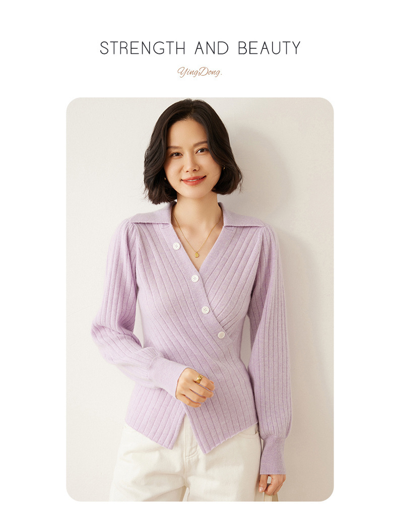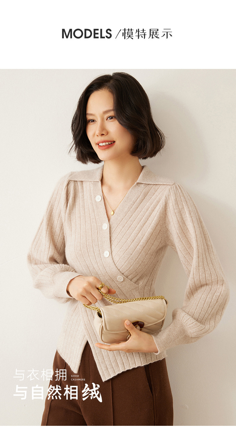 【高货QJ】全新升级【铂金会员395/天猫529/差价134】(10753) 洛诗琳设计感交叉裹身POLO领毛衣修身收腰显瘦针织羊绒衫