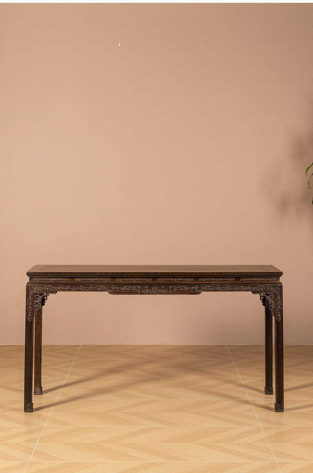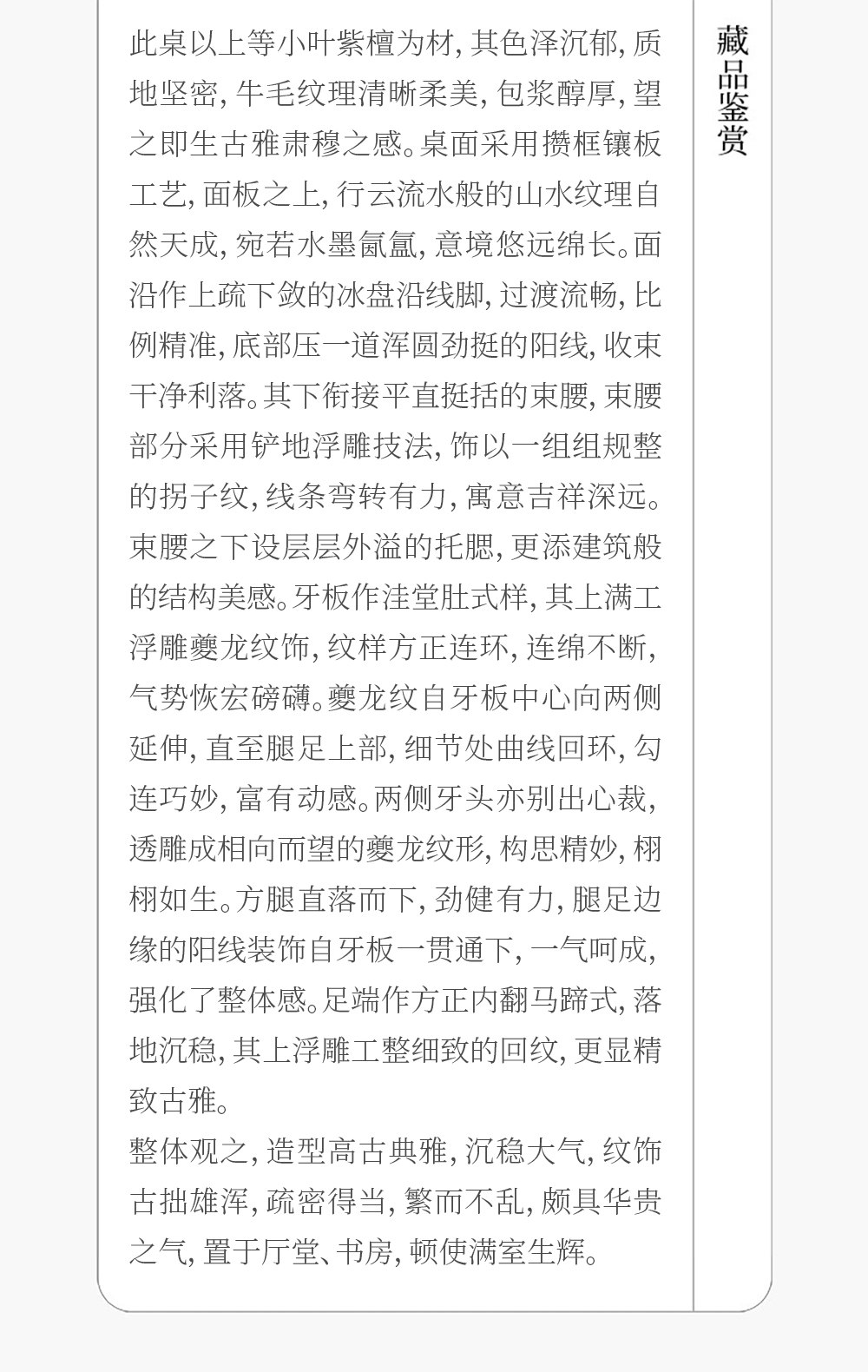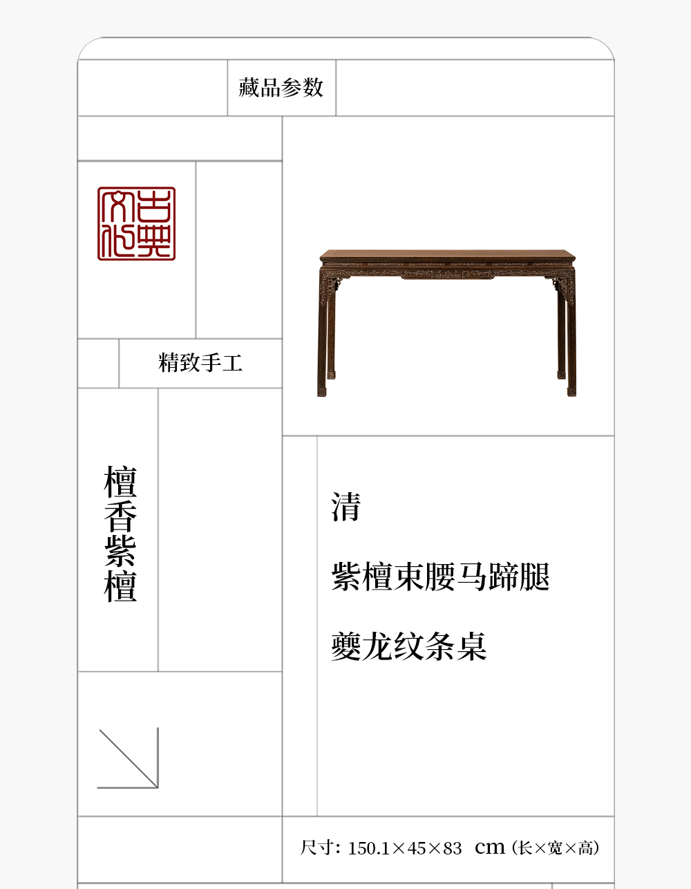 清 紫檀束腰马蹄腿夔龙纹条桌