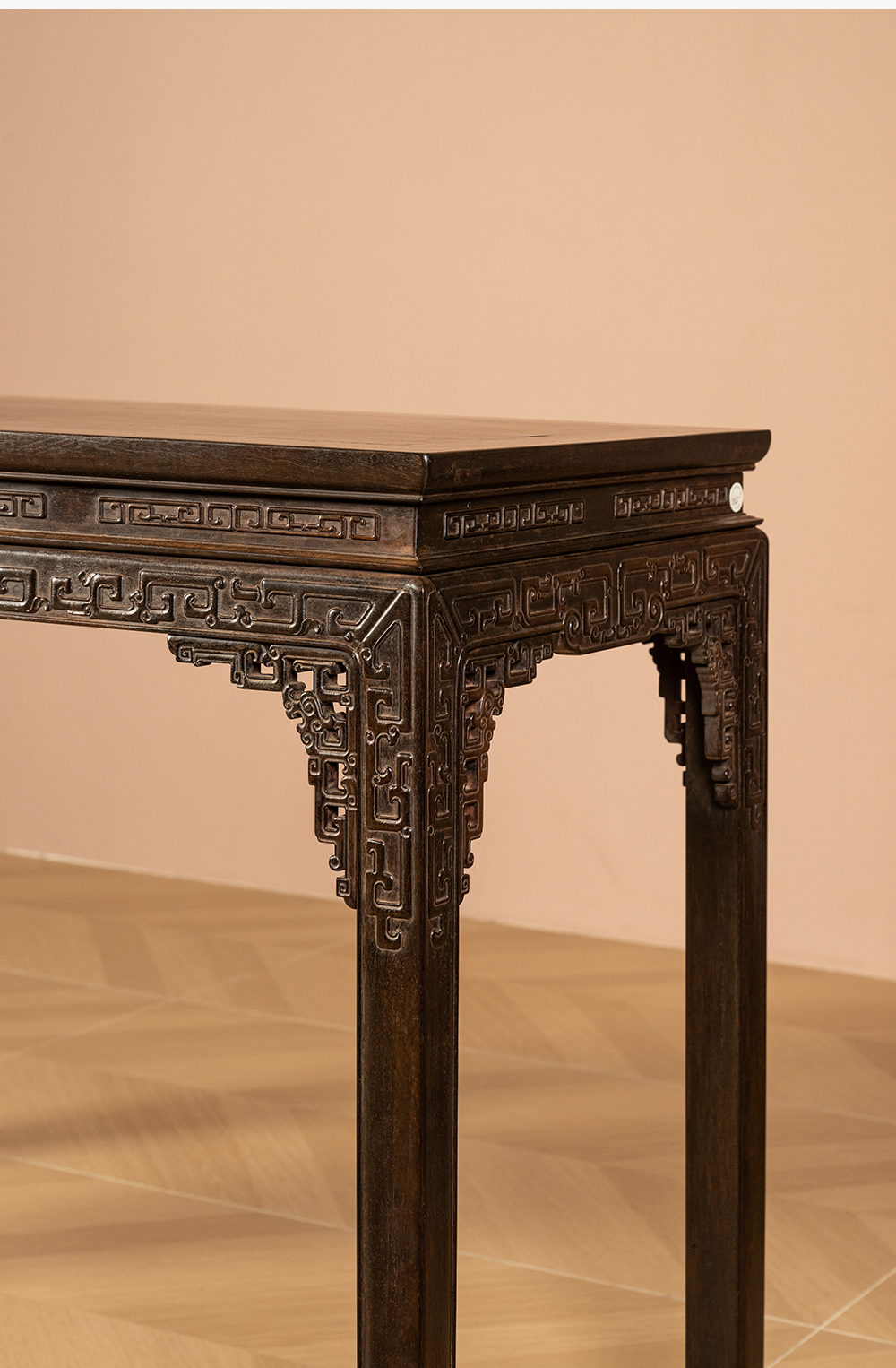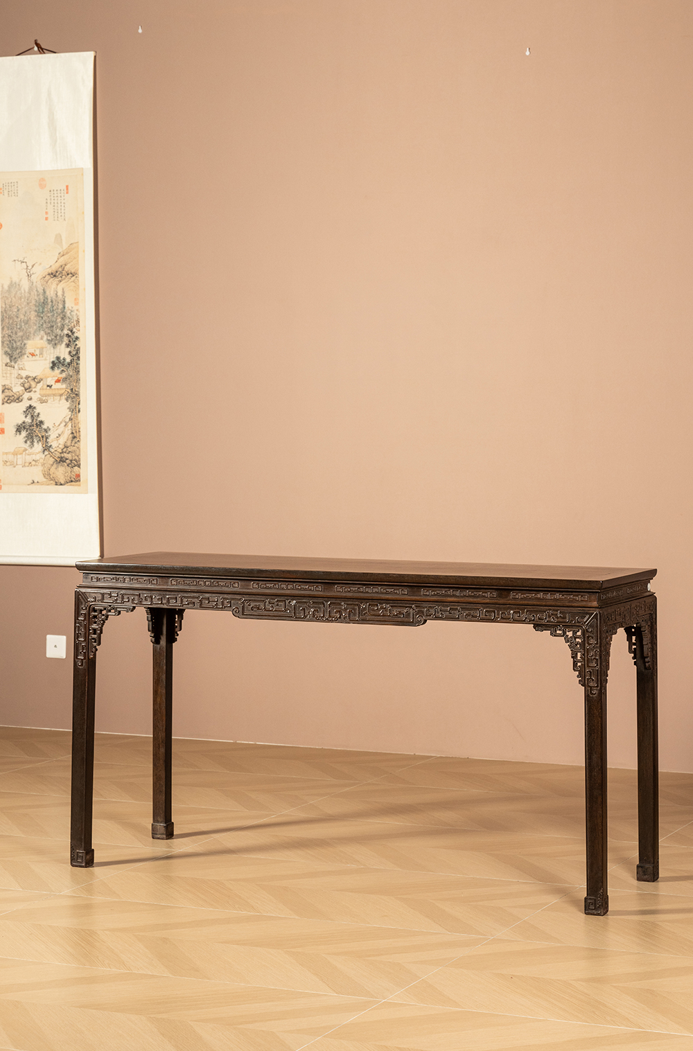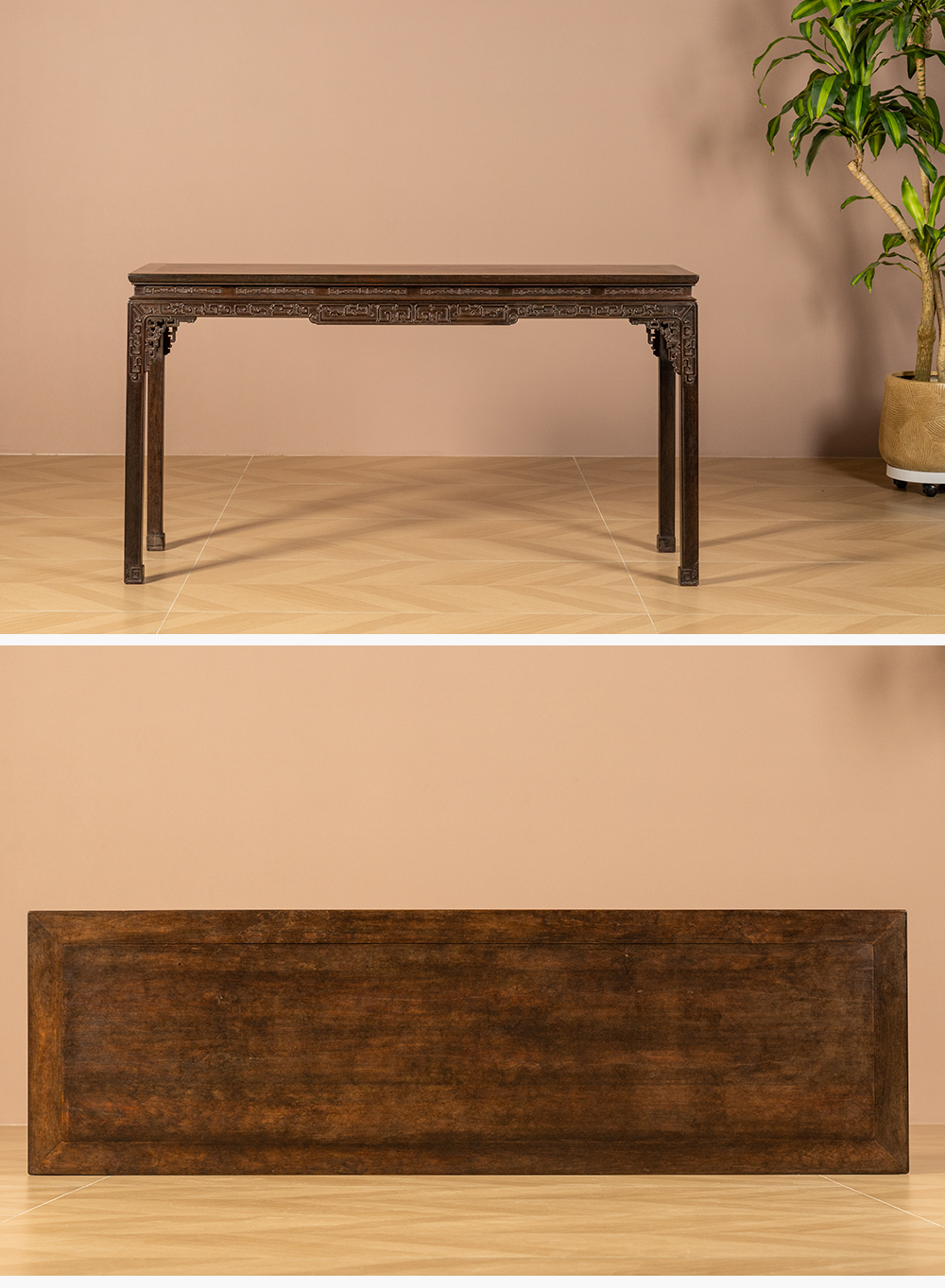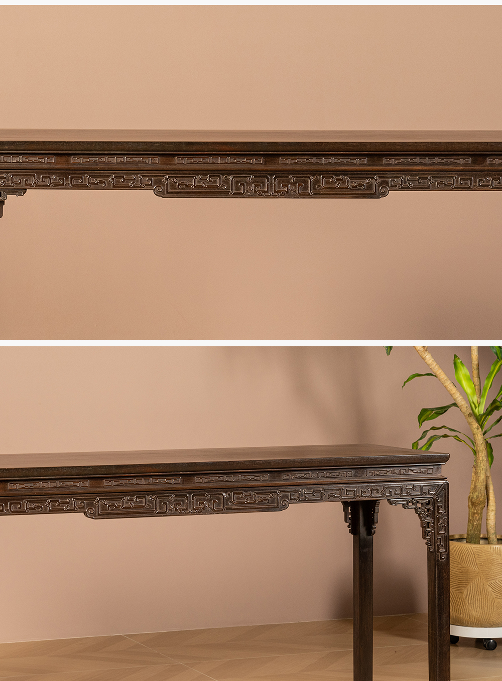 清 紫檀束腰马蹄腿夔龙纹条桌