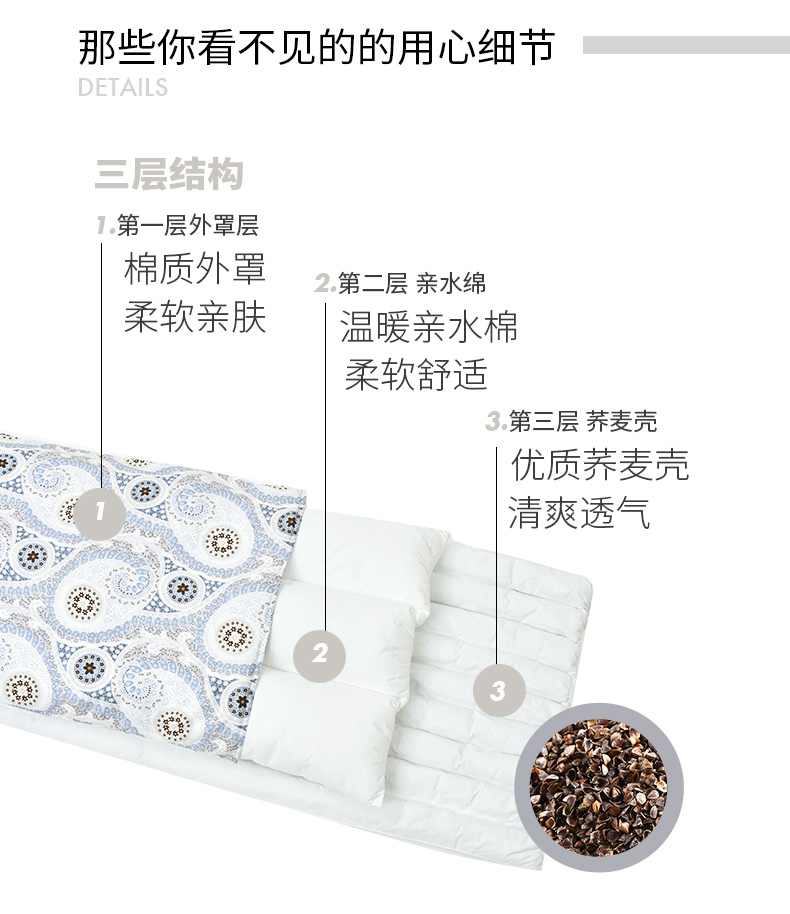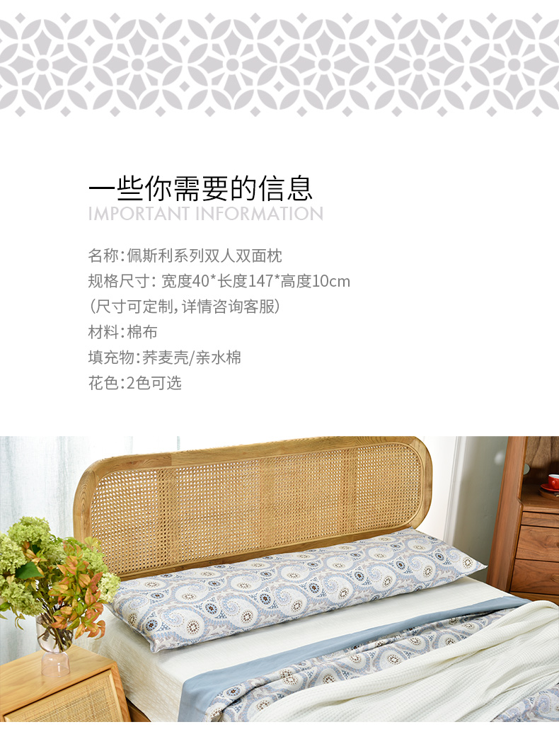 佩斯利系列荞麦壳长枕头夫妻双人一体枕