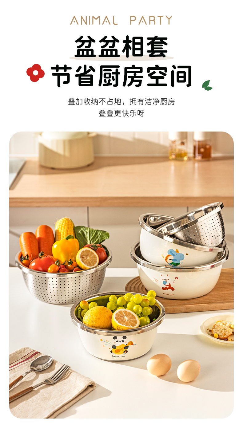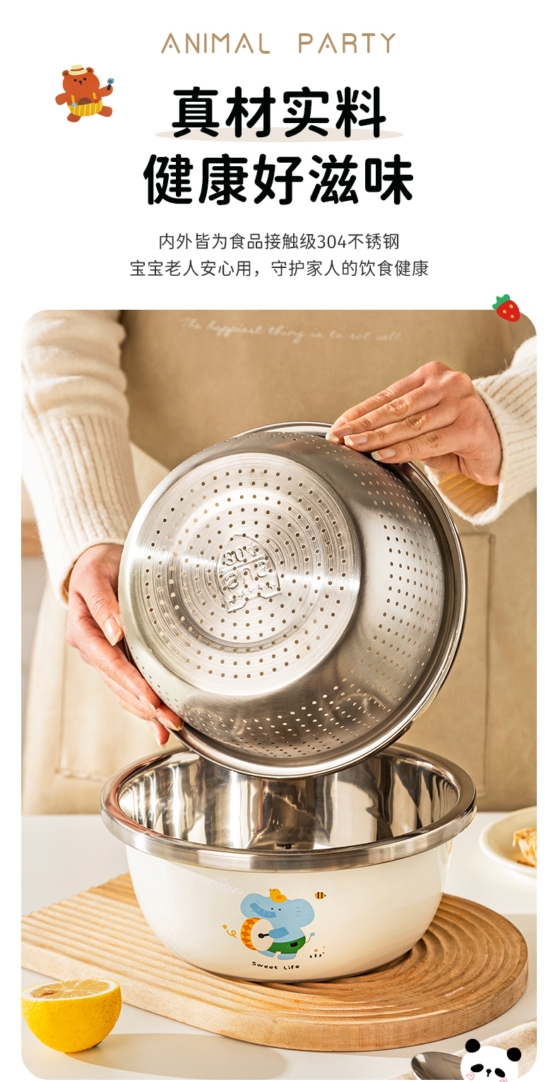 摩登主妇不锈钢盆和面盆洗菜盆沥水篮揉面盆子家用厨房料理打蛋盆
