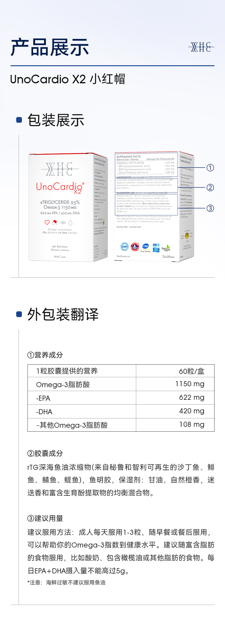 【2件-20】WHCWHC比利时 小红帽深海鱼油胶囊rTG结构95%高纯度Omega3呵护眼脑成人60粒