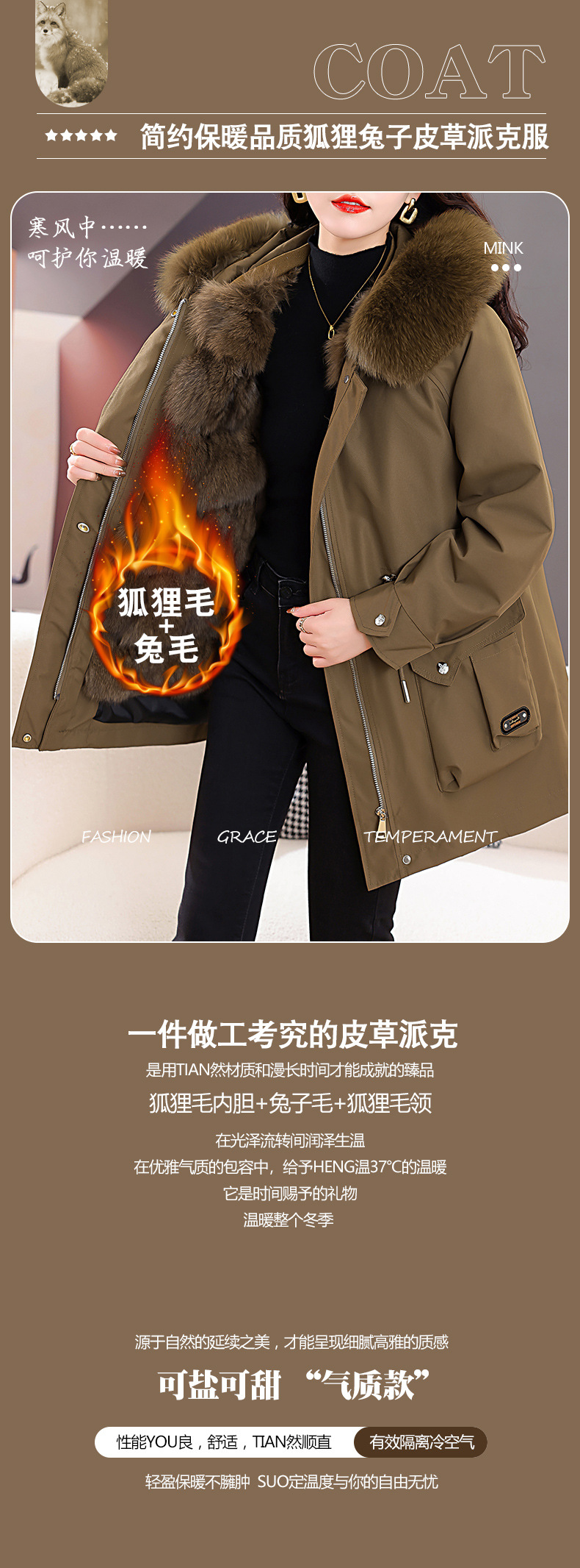 派克服爆款年轻款小个子兔毛内胆可拆卸狐狸毛领外套KQ-254188