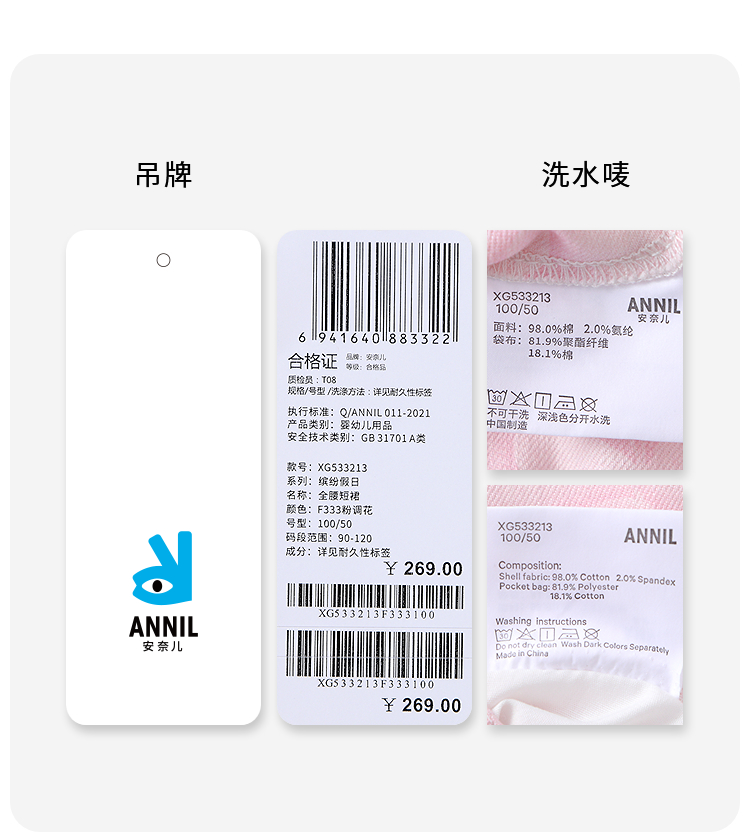 【实体店同款】女童全腰短裙秋季新款安奈儿童装XG533213