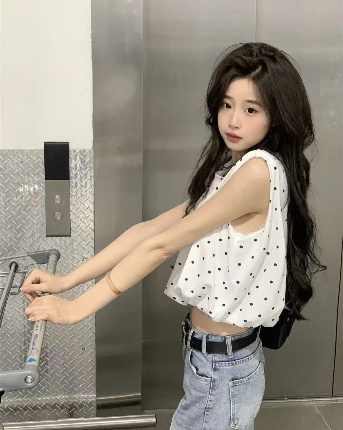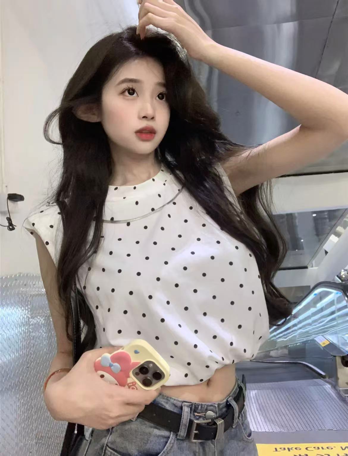 设计师品牌-5590设计感波点无袖坎肩T恤女韩系气质短款上衣-喜出