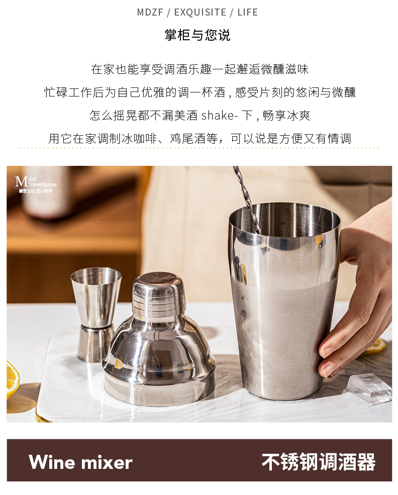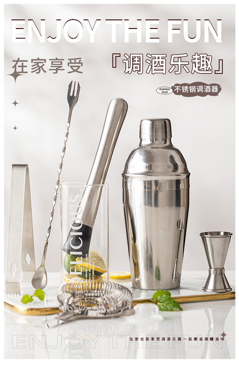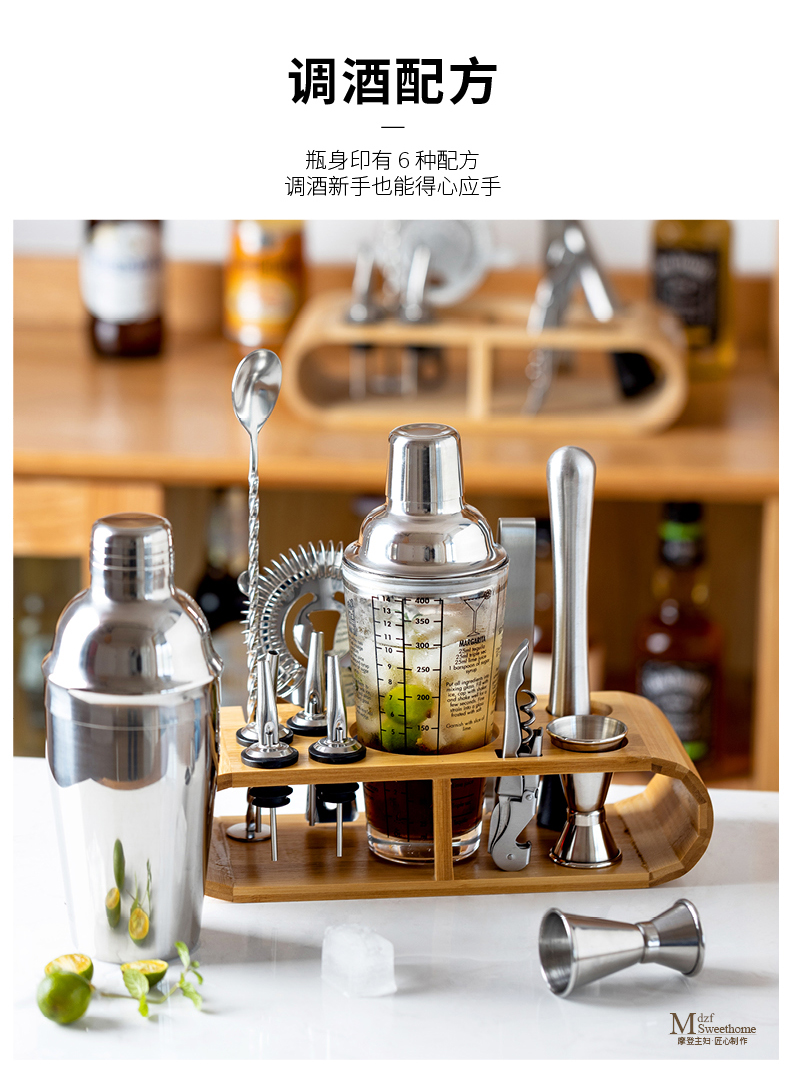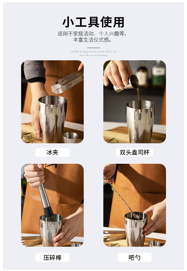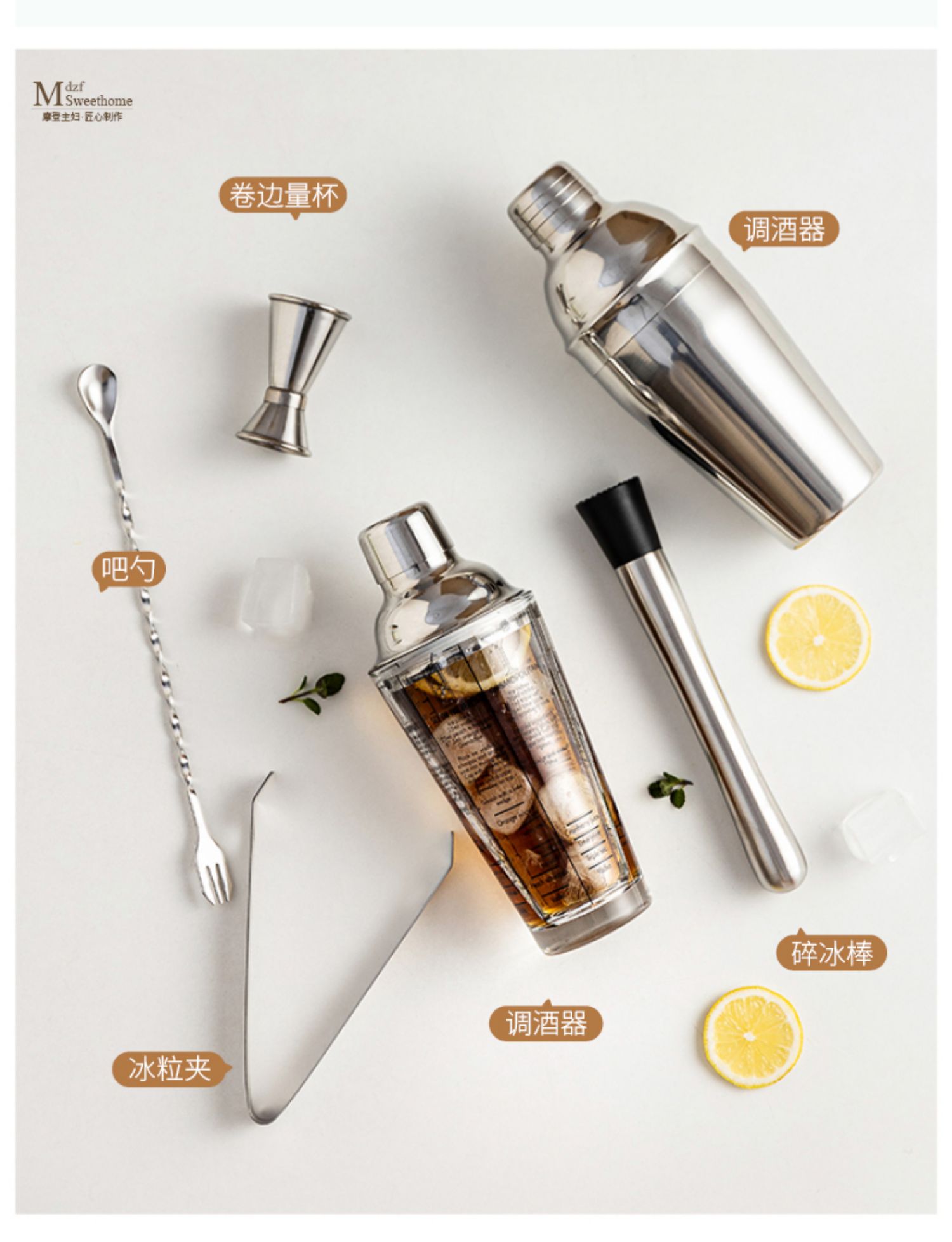 摩登主妇不锈钢雪克杯手摇鸡尾酒调酒器套装捣汁棒手打柠檬茶工具