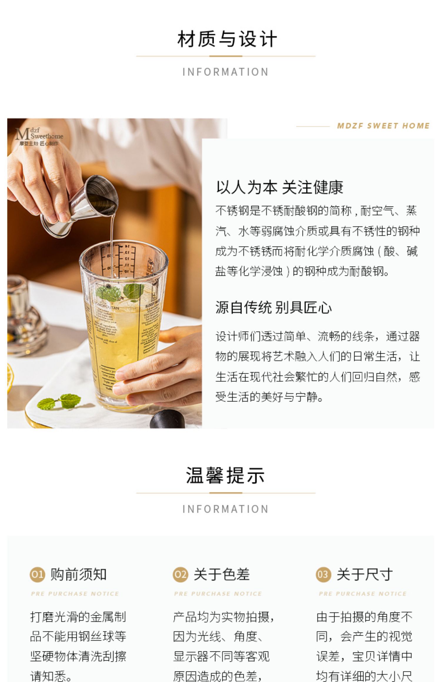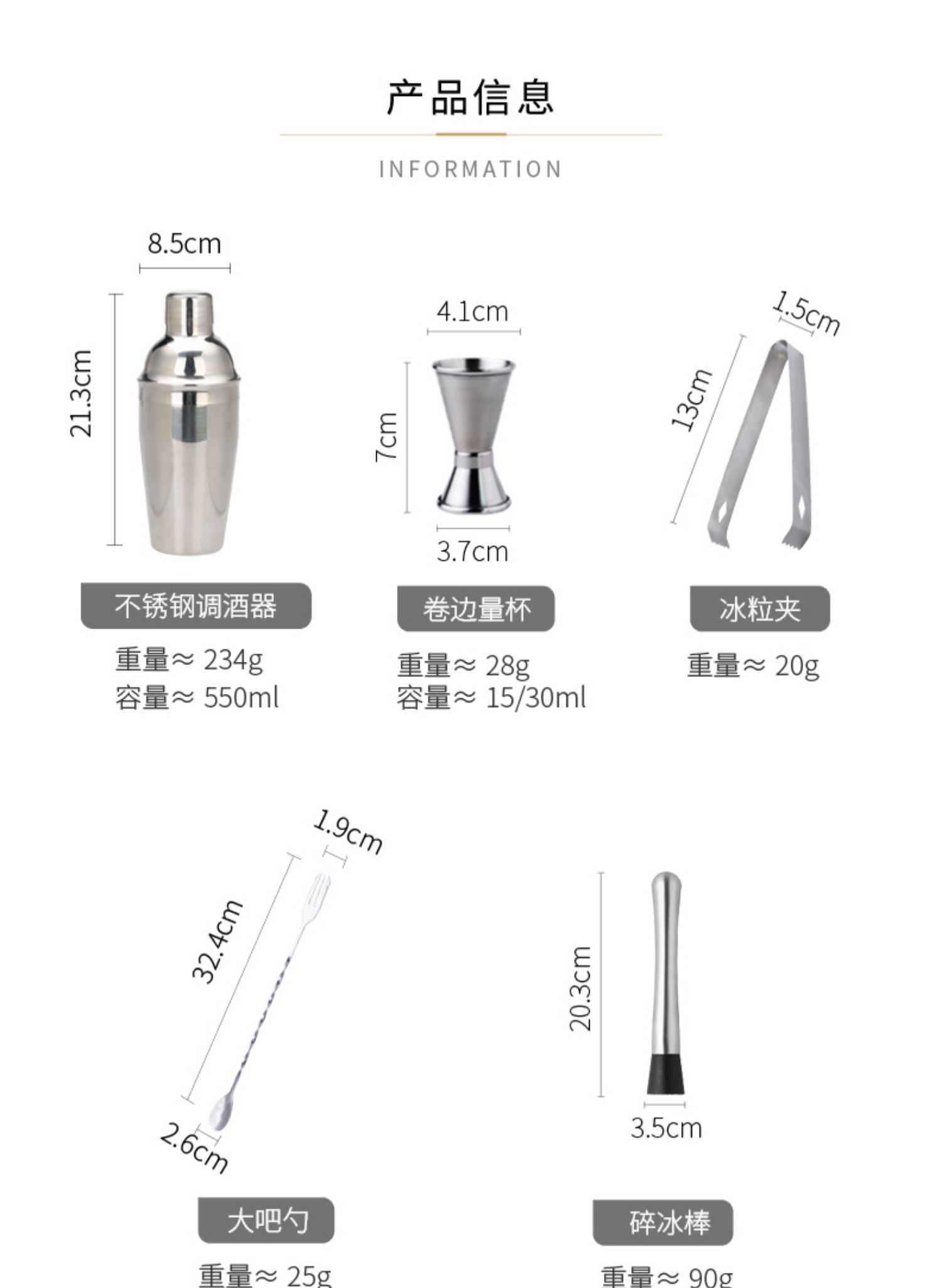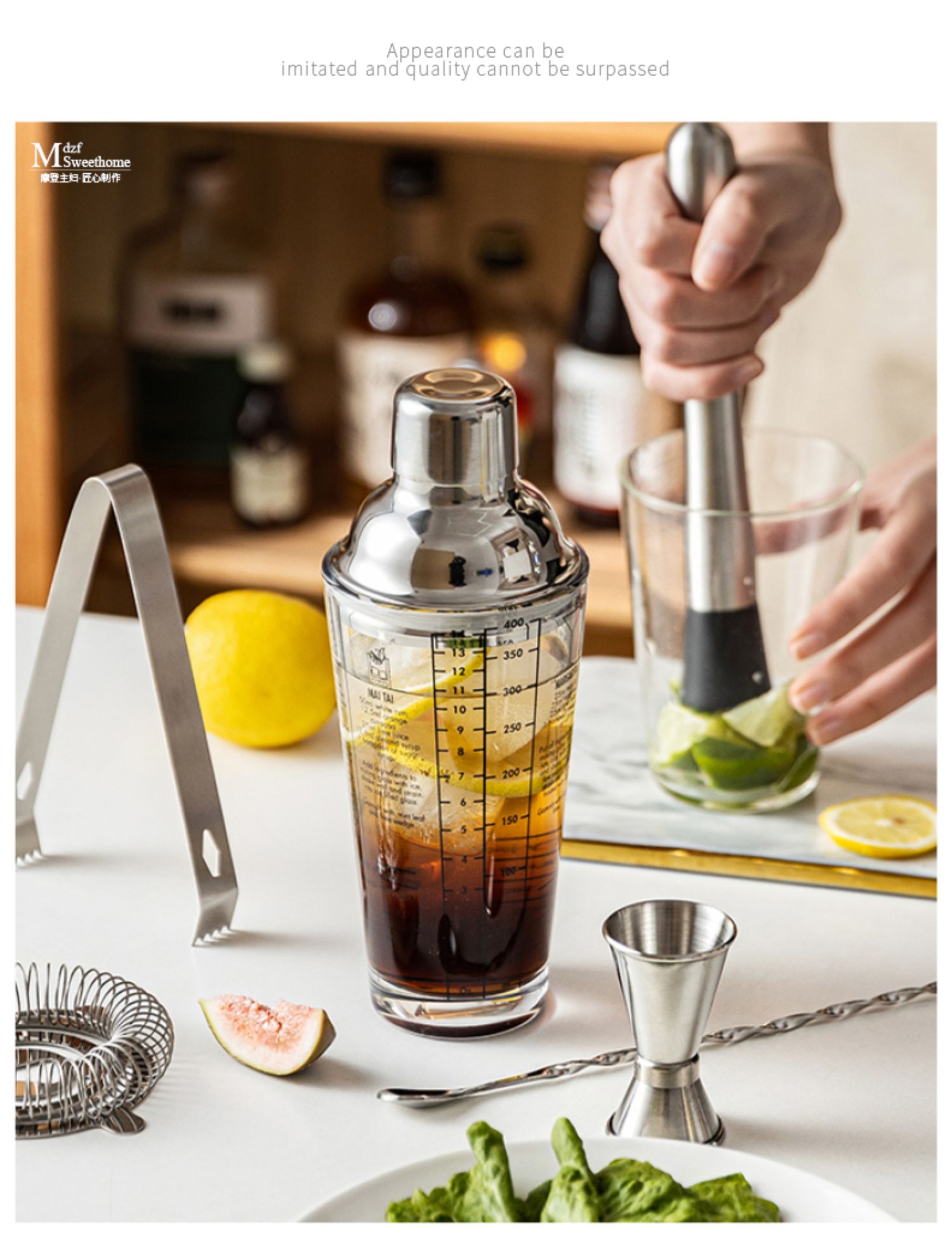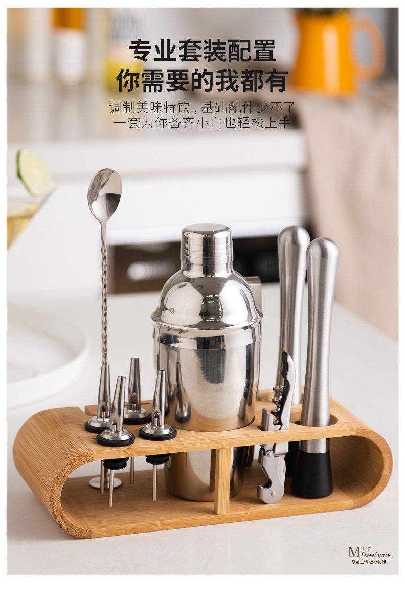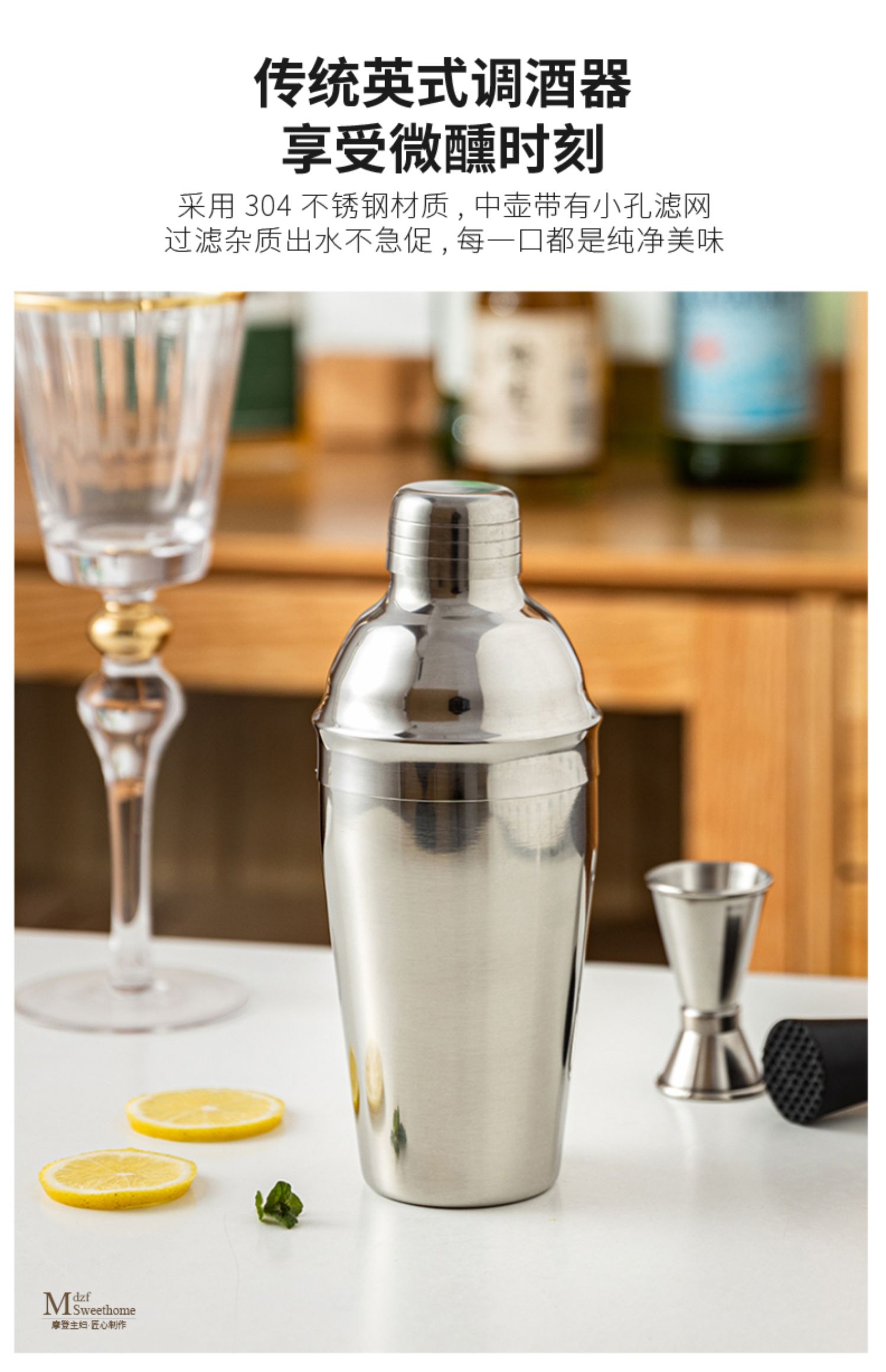 摩登主妇不锈钢雪克杯手摇鸡尾酒调酒器套装捣汁棒手打柠檬茶工具