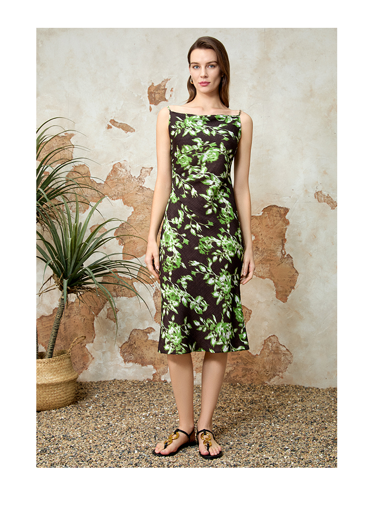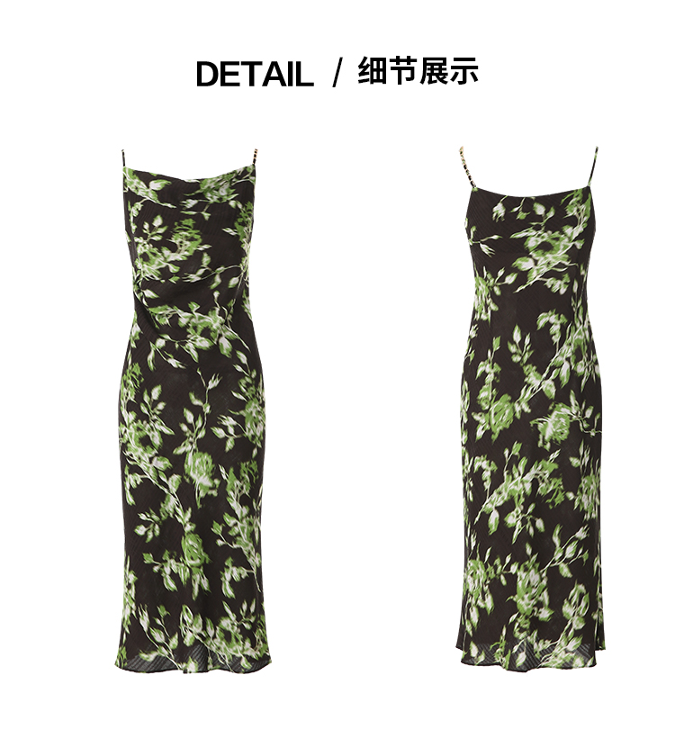 EITIE爱特爱法式气质印花垂坠显瘦吊带连衣裙春新款8107825