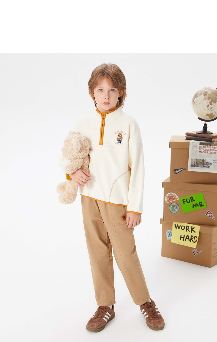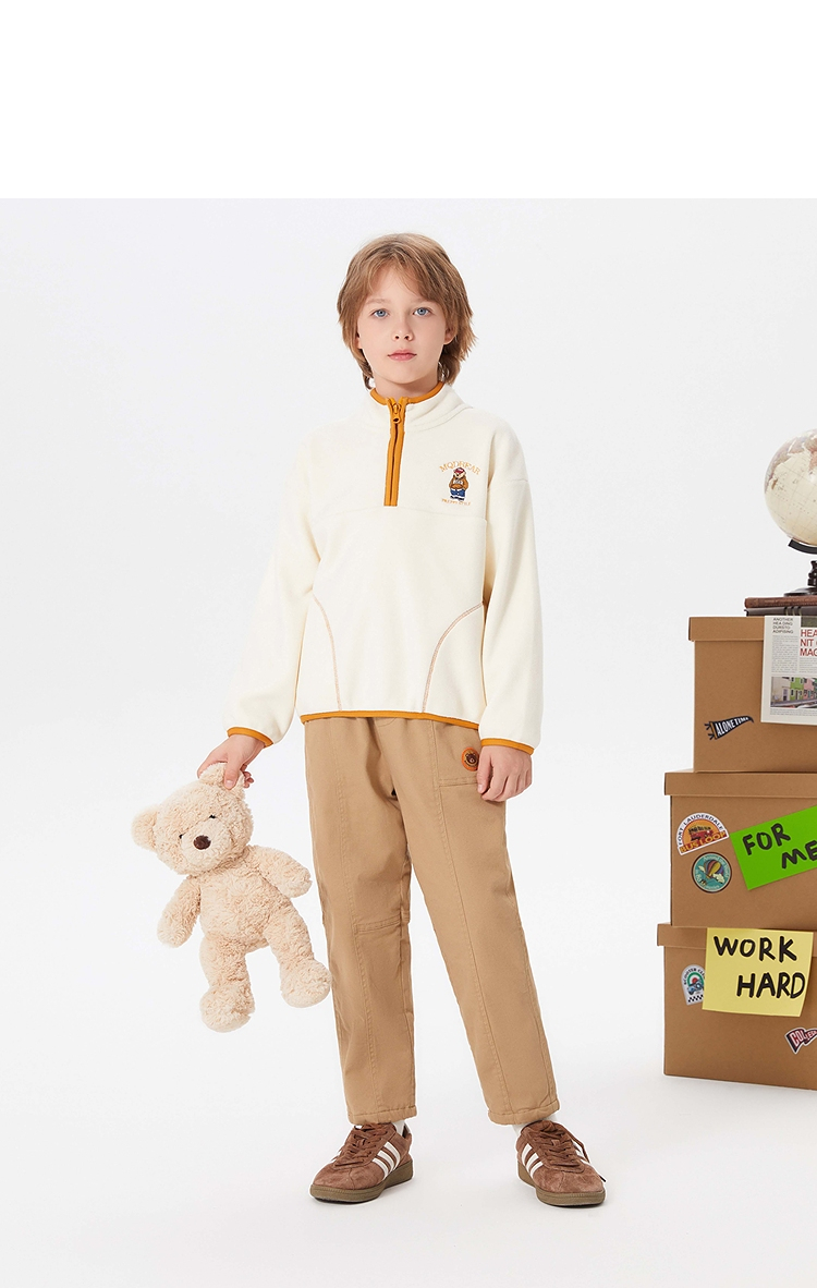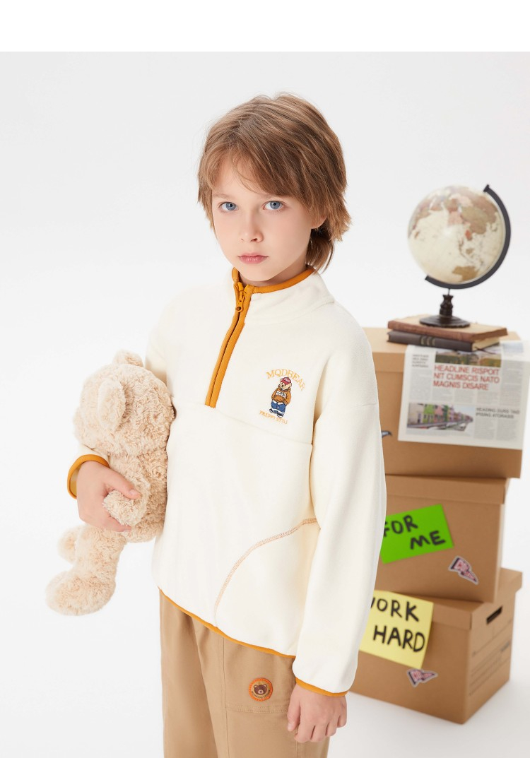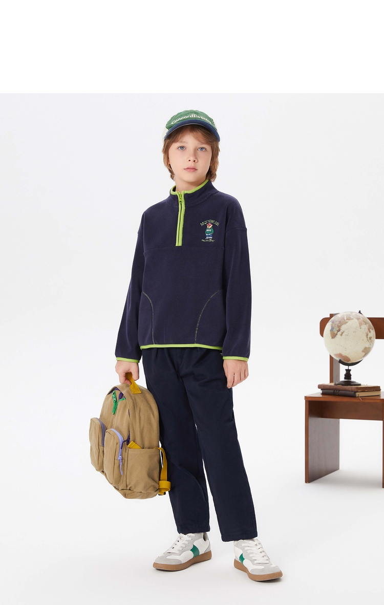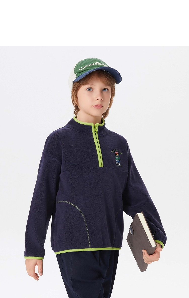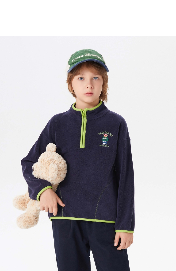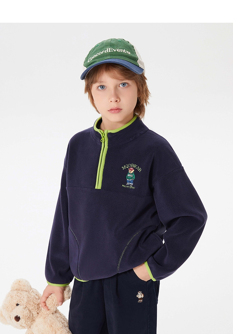【MQD】童装男大童冬新款学院风保暖摇粒绒半开襟卫衣