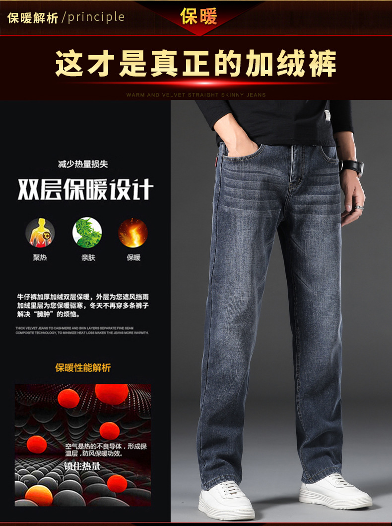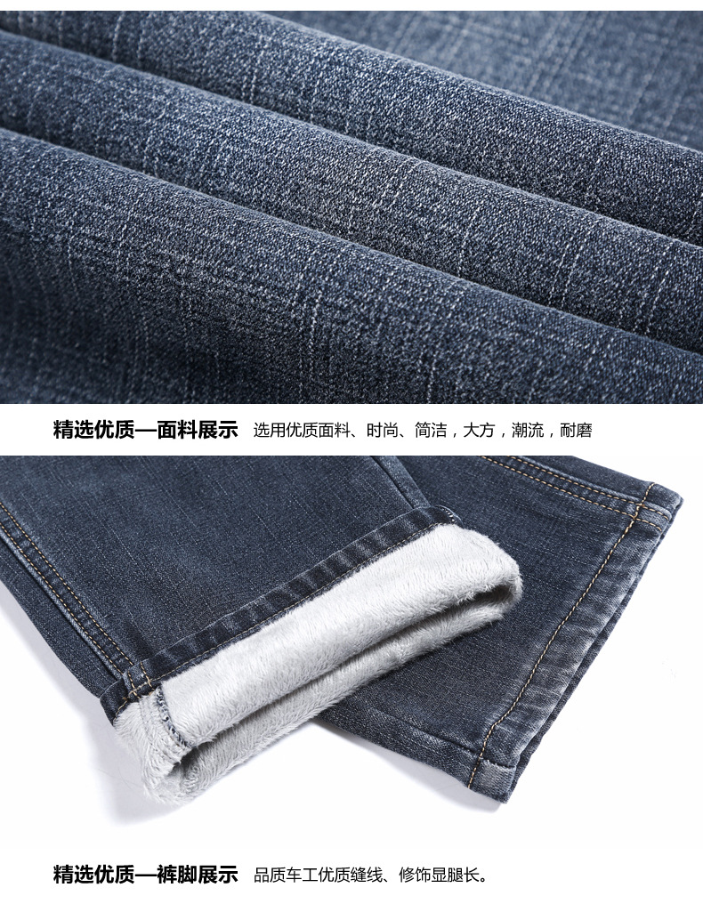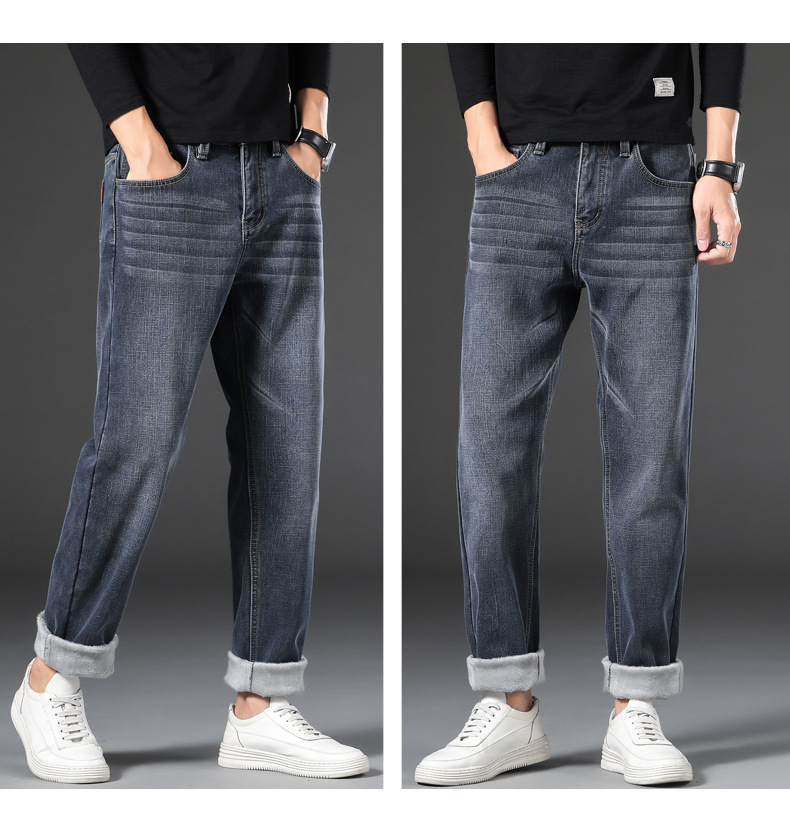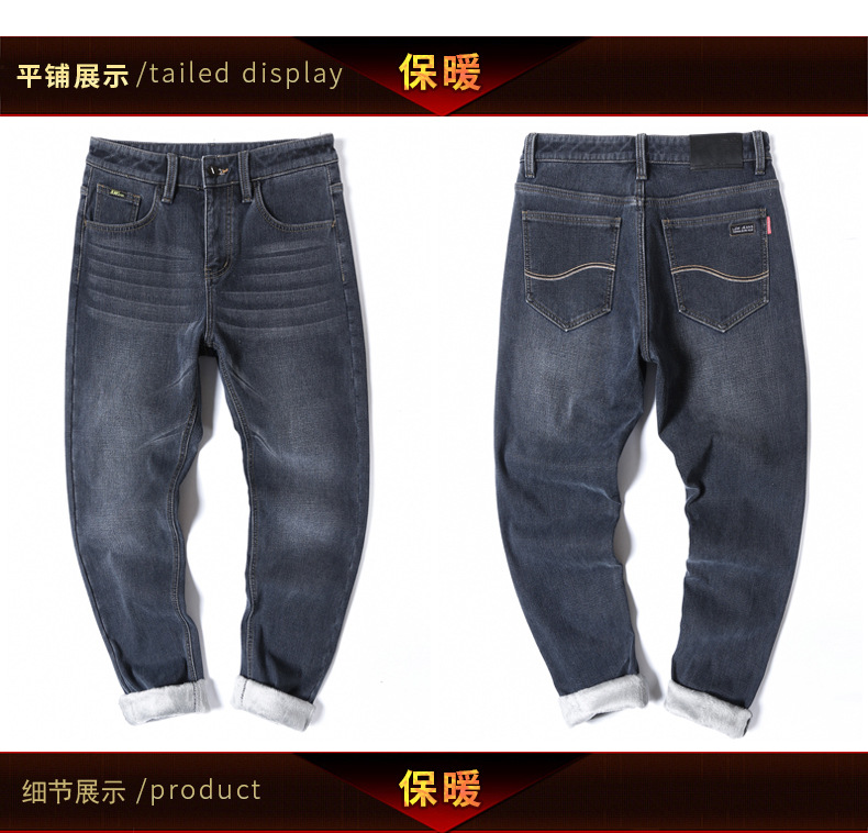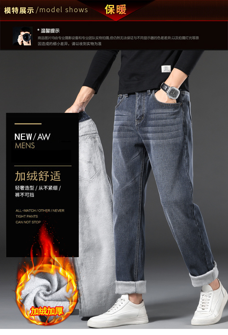 【新款DQ】大码男装冬季新款加绒加厚牛仔裤男宽松弹力简约百塔牛仔长裤