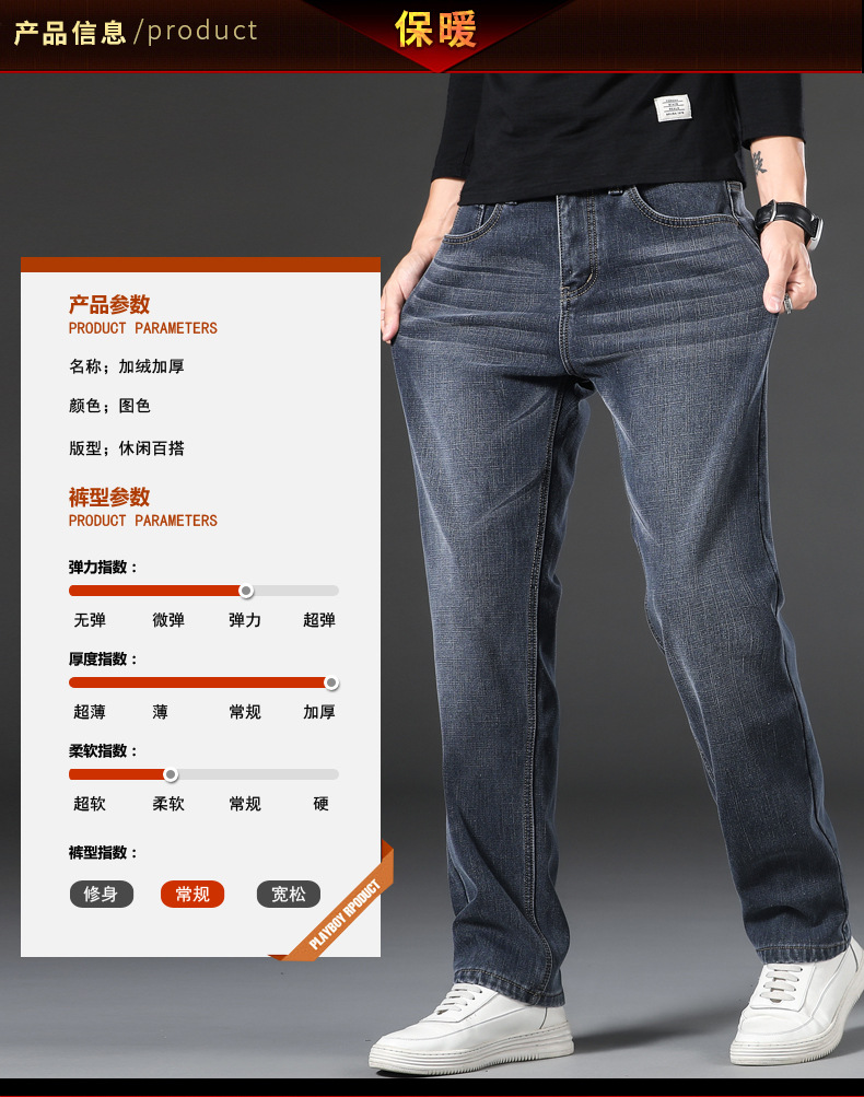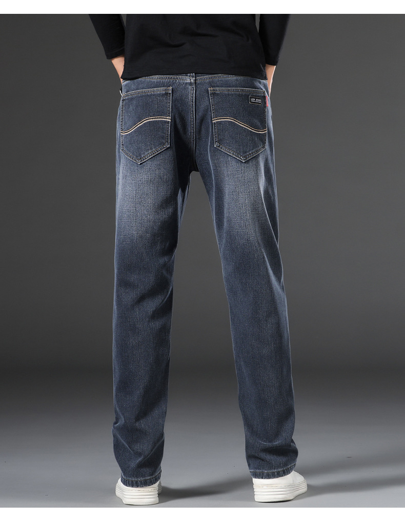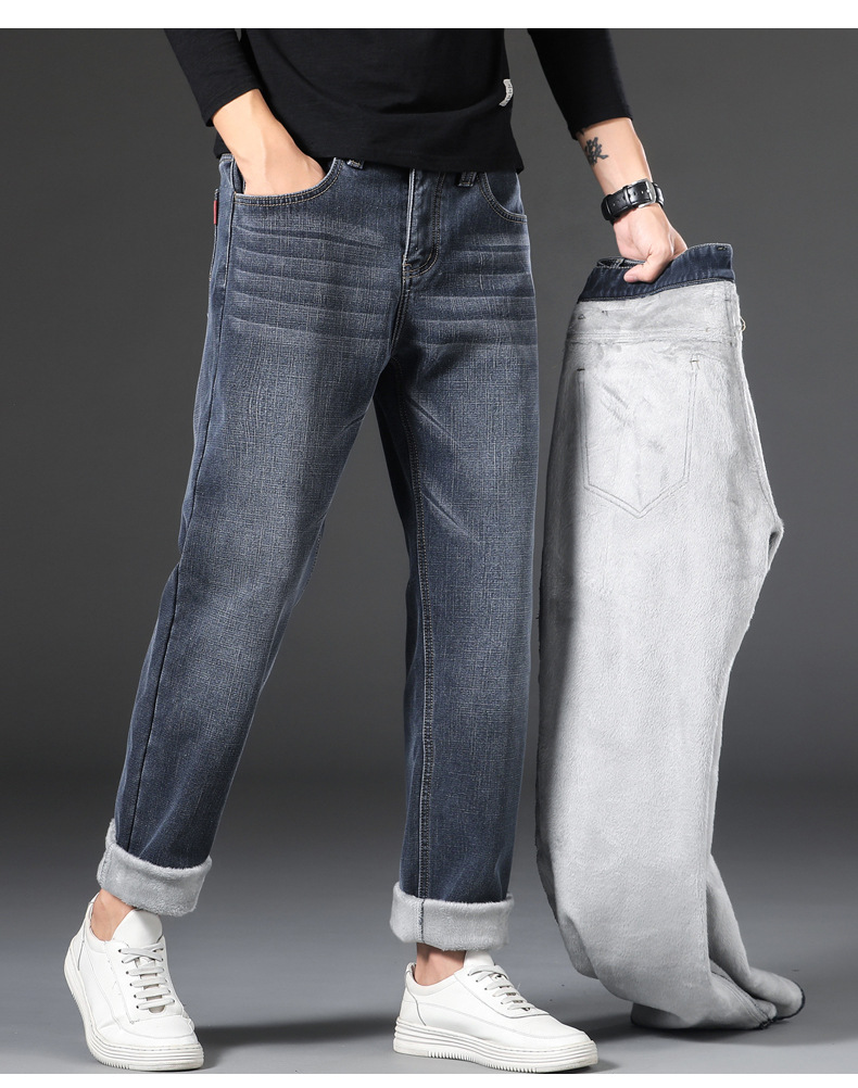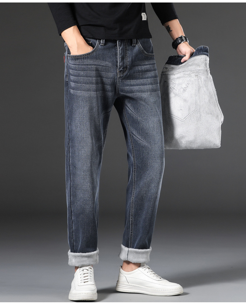 【新款DQ】大码男装冬季新款加绒加厚牛仔裤男宽松弹力简约百塔牛仔长裤