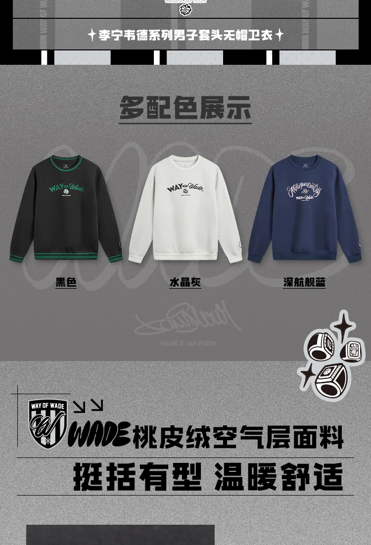 李宁韦德 x Jay Flow联名系列男子保暖宽松套头卫衣AWDVF49