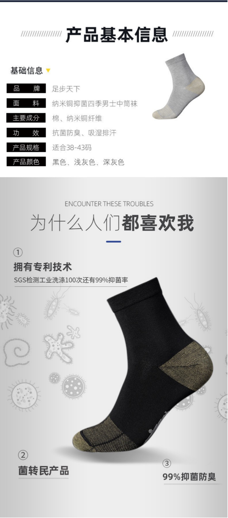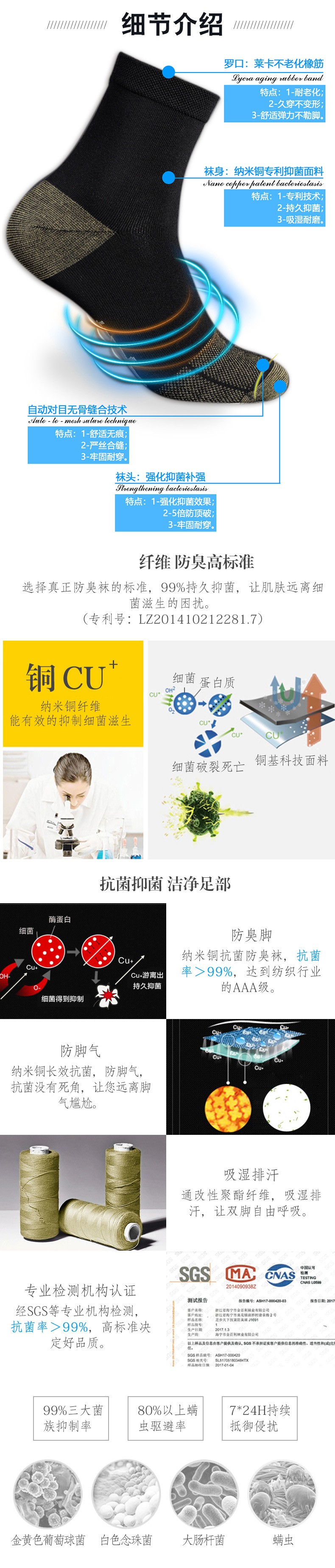 【7A抑菌 吸湿快干 纳米铜专利技术】四季款纳米铜抑菌防臭袜 ds(bl)专利号:ZL201410212281.7
