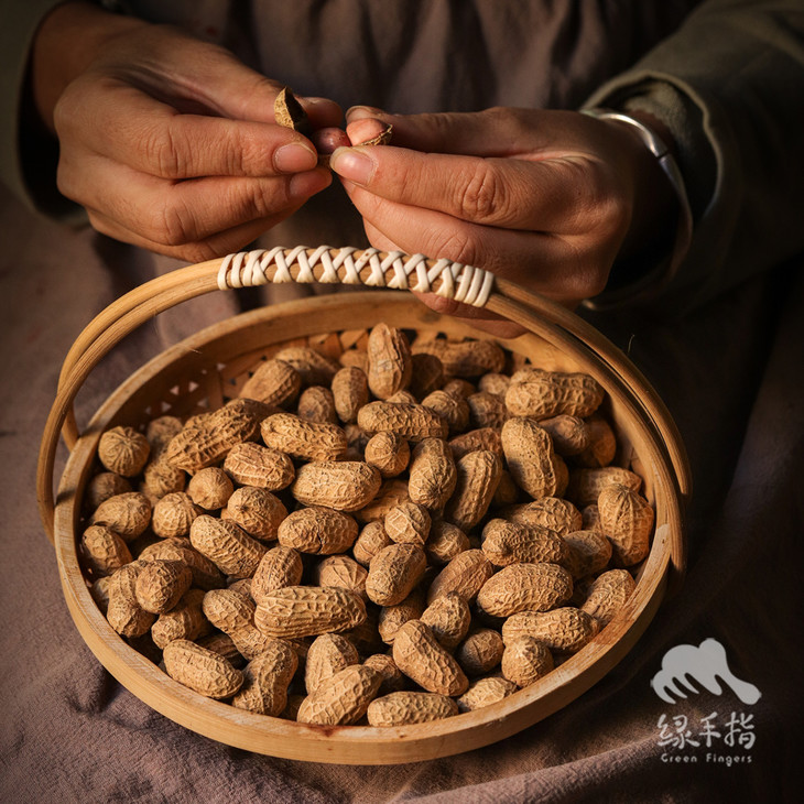唐山是我国花生的优质产区之一,优选花生品种,含油量适中、红衣薄软,炒熟后清香不油腻。2021年开始生态种植,只是用了发酵的牛粪和可降解地膜。花生收获后,会种植小麦,等到来春天种植花生时,将小麦苗翻耕到地里,做为绿肥。