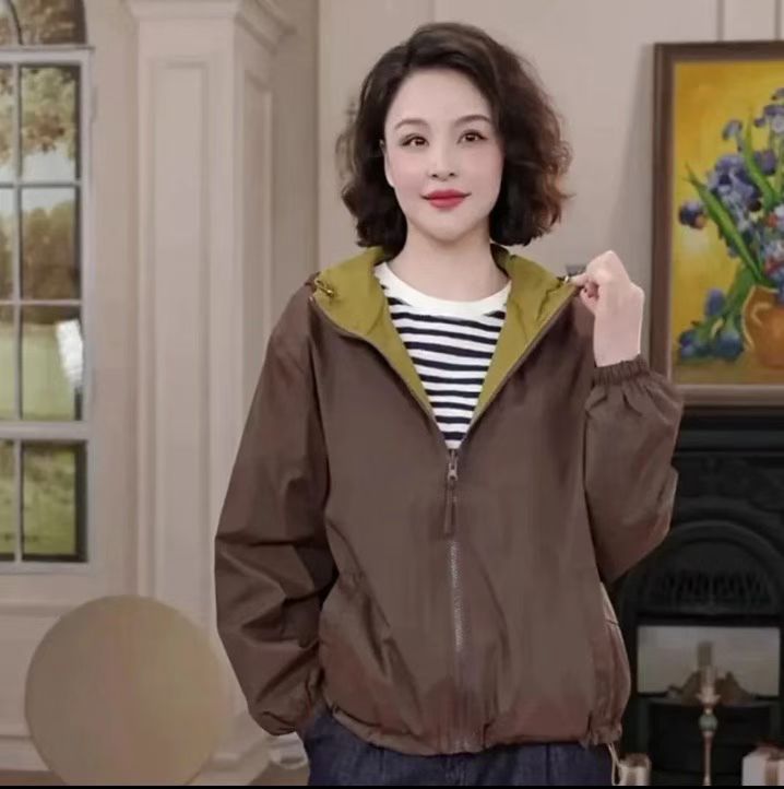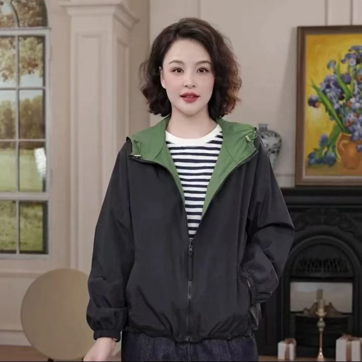 时尚休闲百搭防晒外套女2025夏季新款韩版两面穿宽松撞色连帽上衣